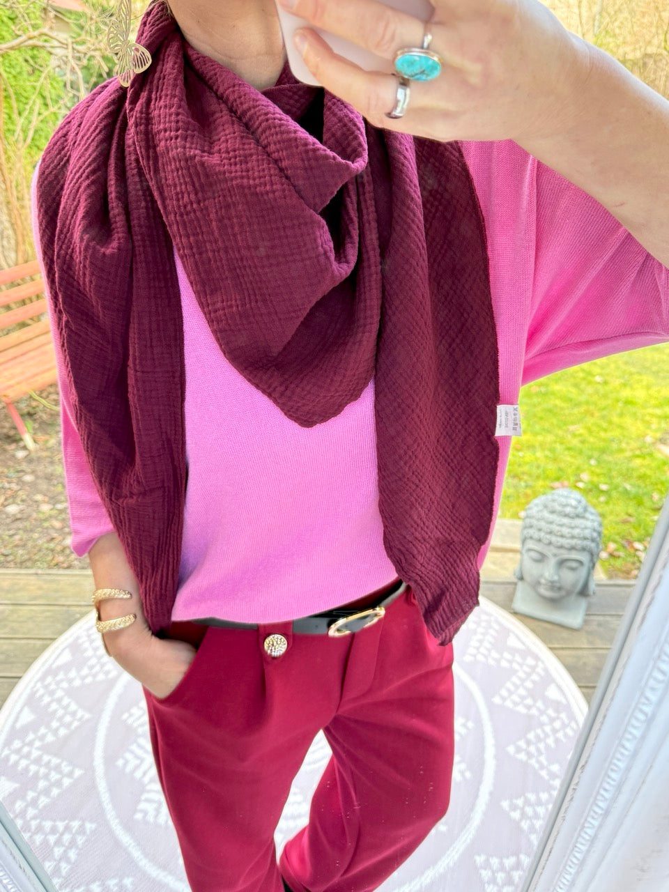 • Wunderschönes, großes Dreiecks - Musselin Baumwolltuch in dunklem Cherry