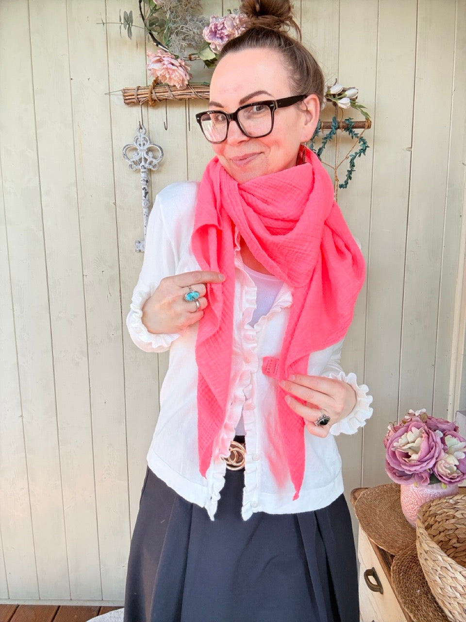 Tuch Gross Mariela Musselin Koralle