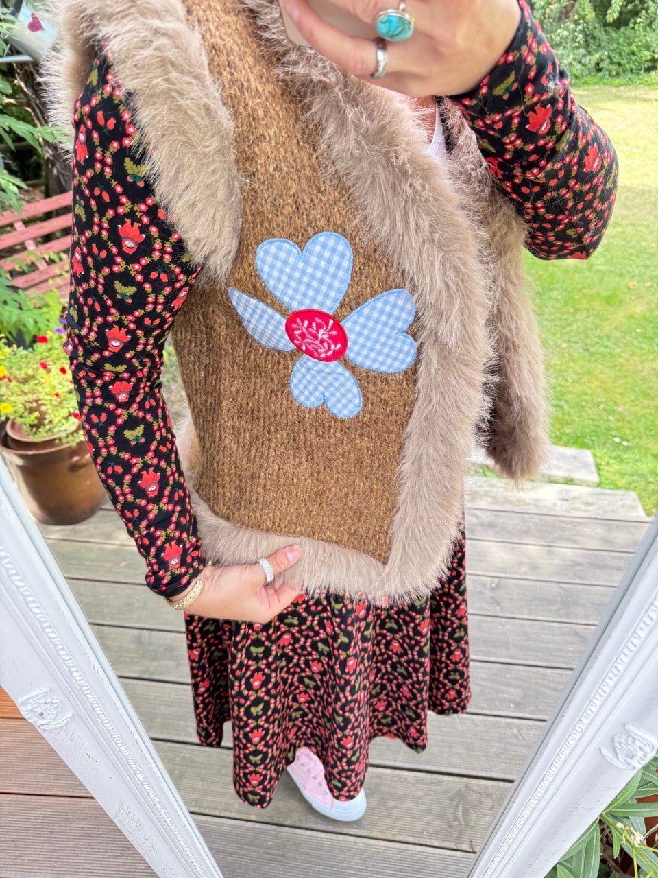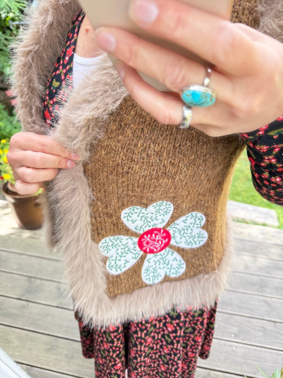 • Hol dir diese zauberhafte, handbestickte Strick-Boho Weste in Cream / Beige Note