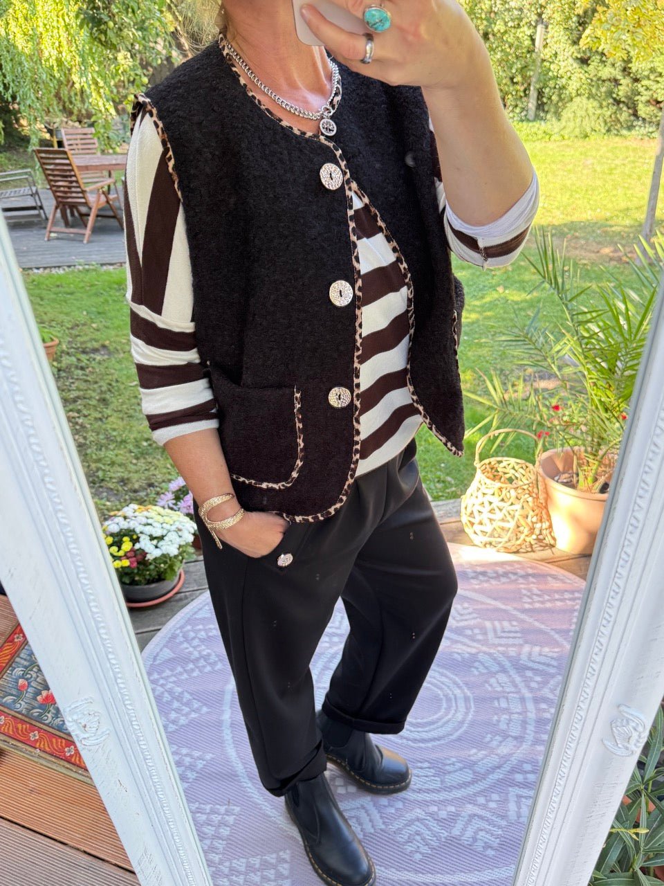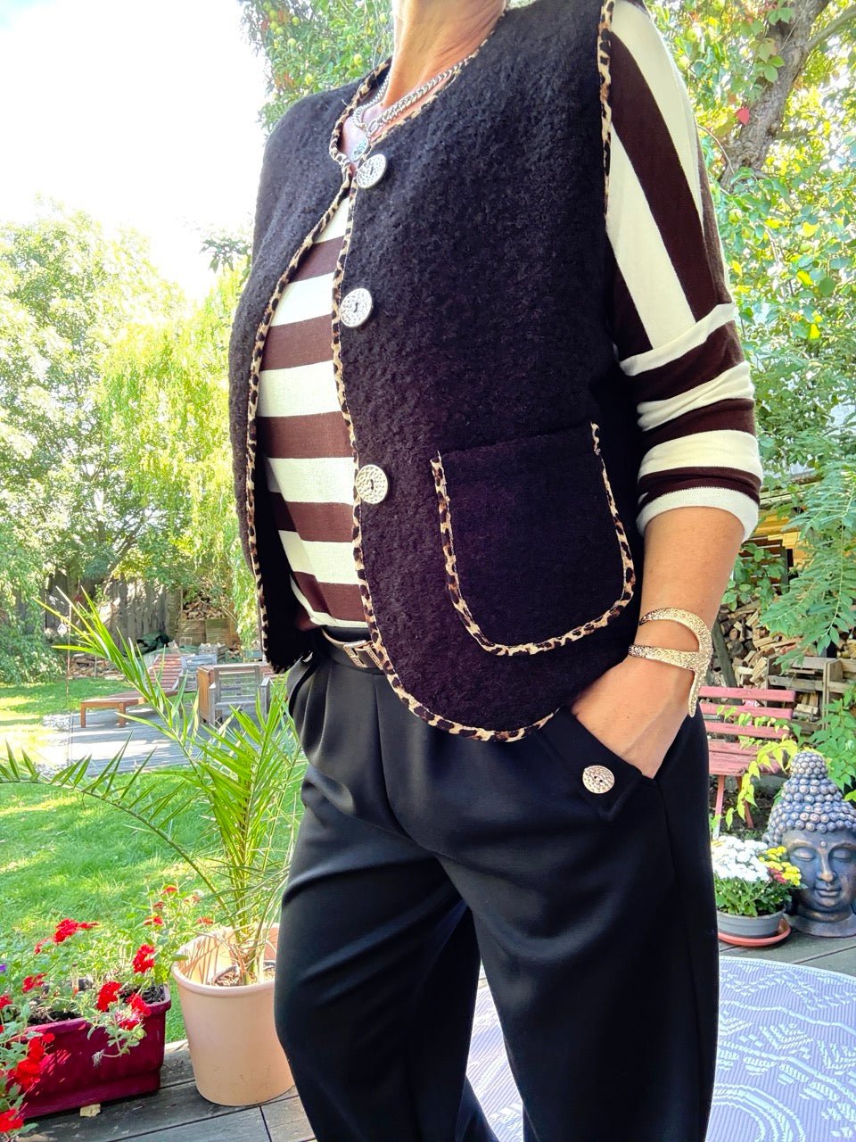 • Besondere Details: silberfarbene Knöpfe & Leo-Zierband