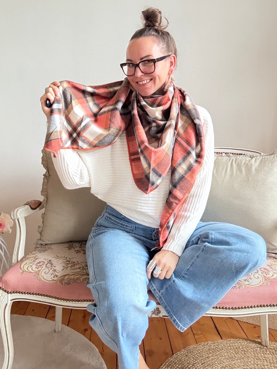 Schal Karo Karo Orange Weiß - FROLLEIN KÄTHE Shop