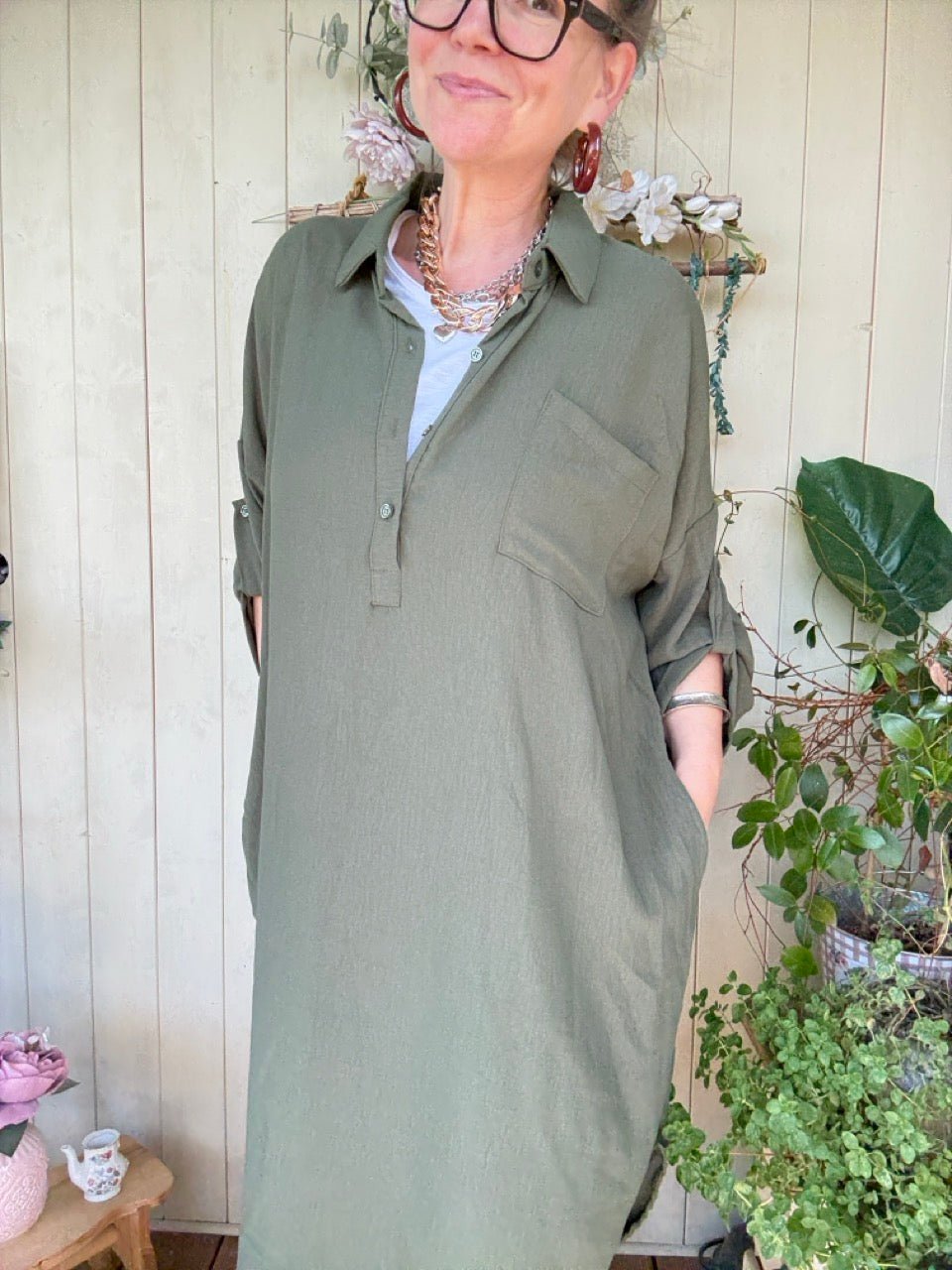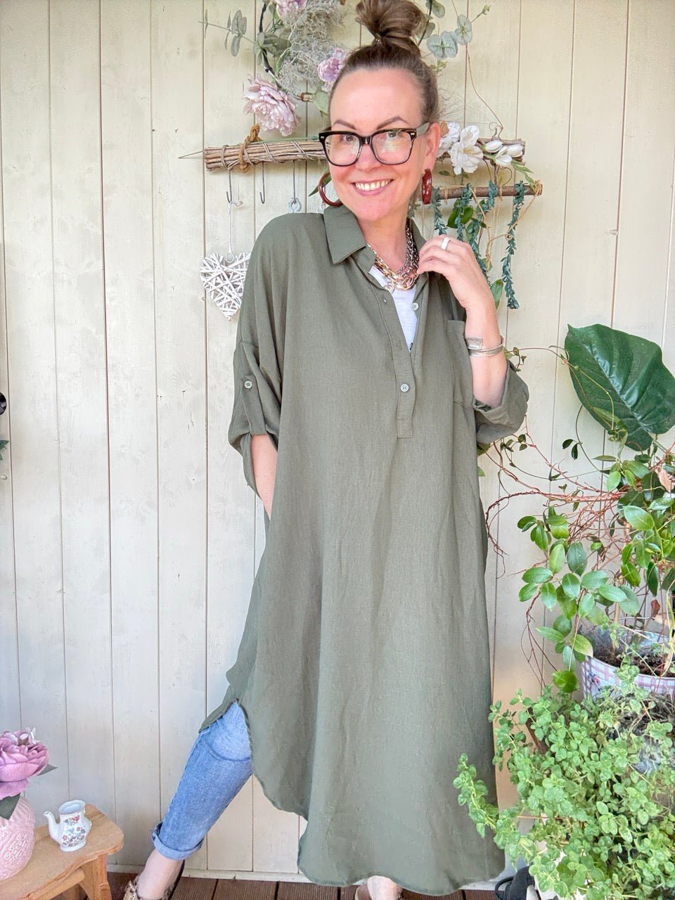 • Tolles Long Blusen in Olive