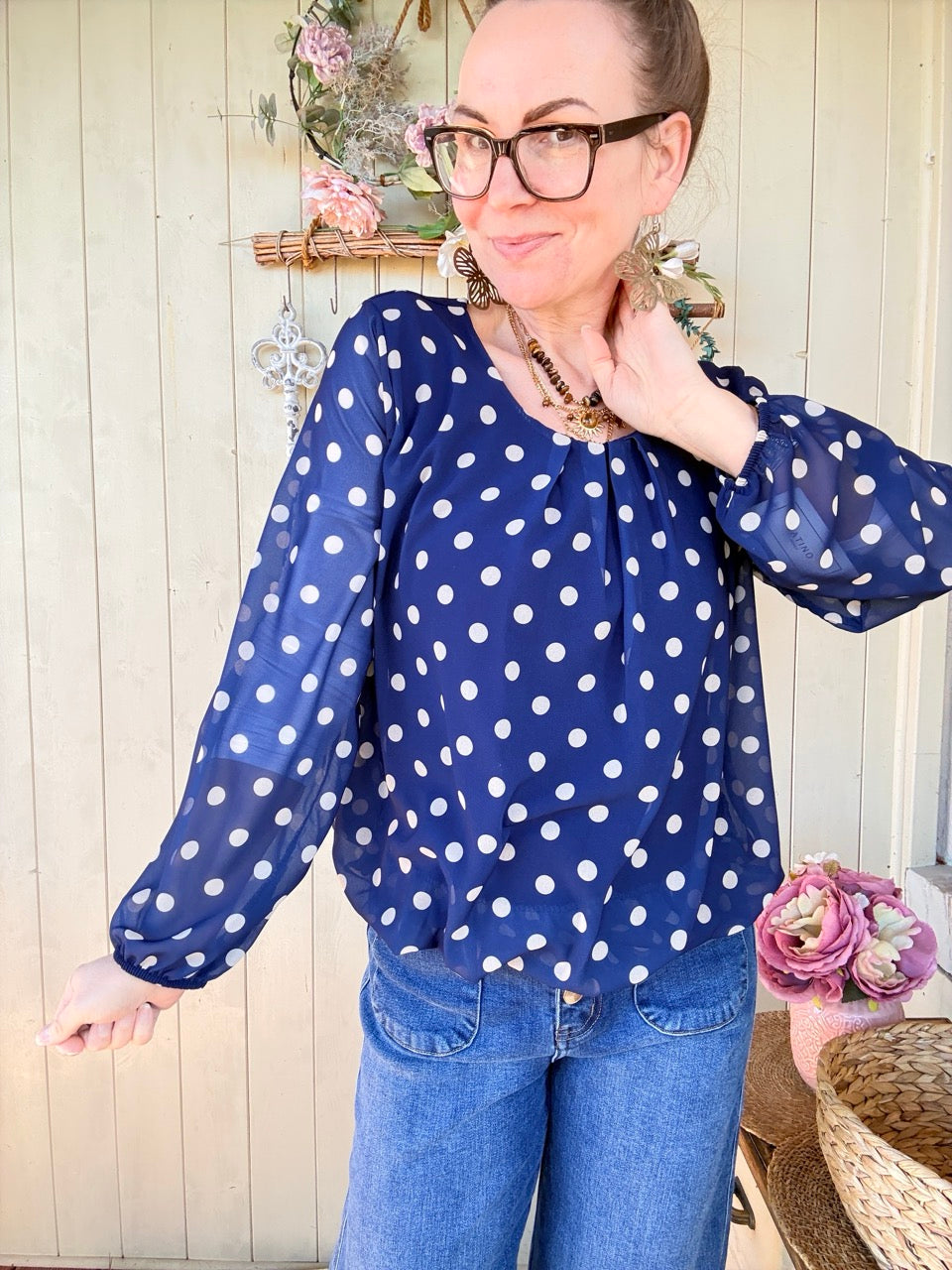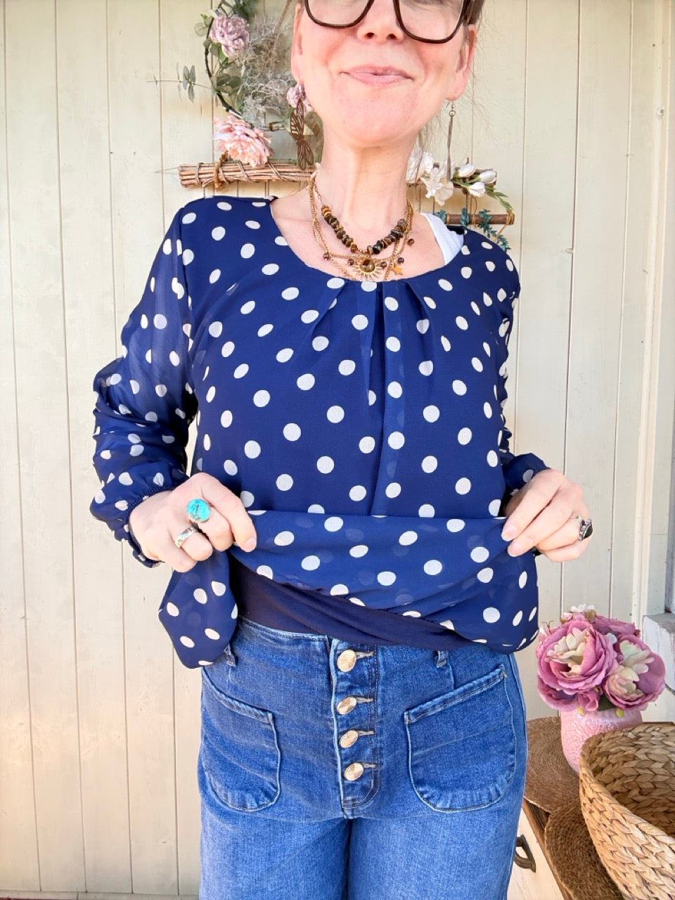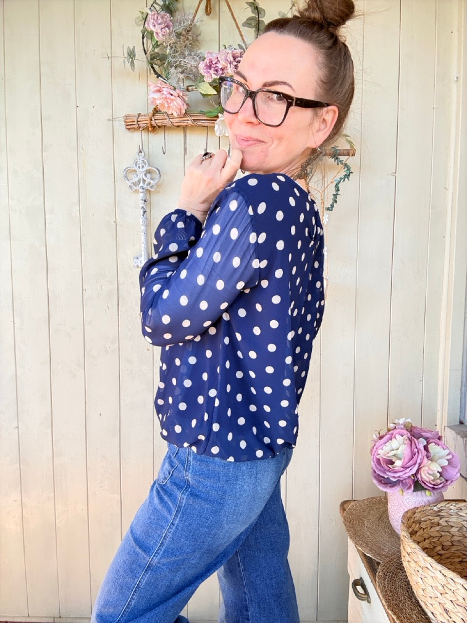 • Elegantes Blusen Shirt in tollem Blau mit großen Punkten