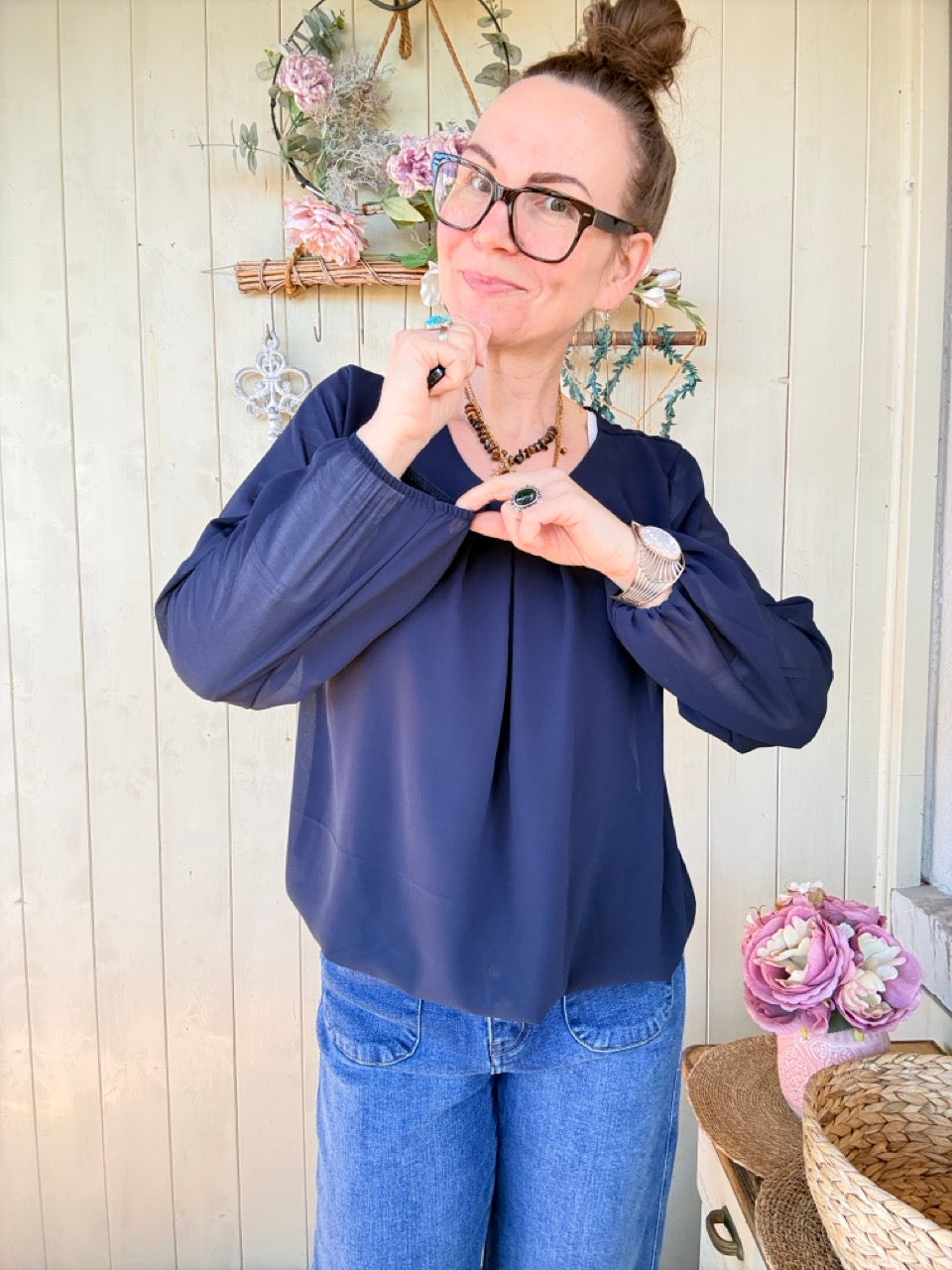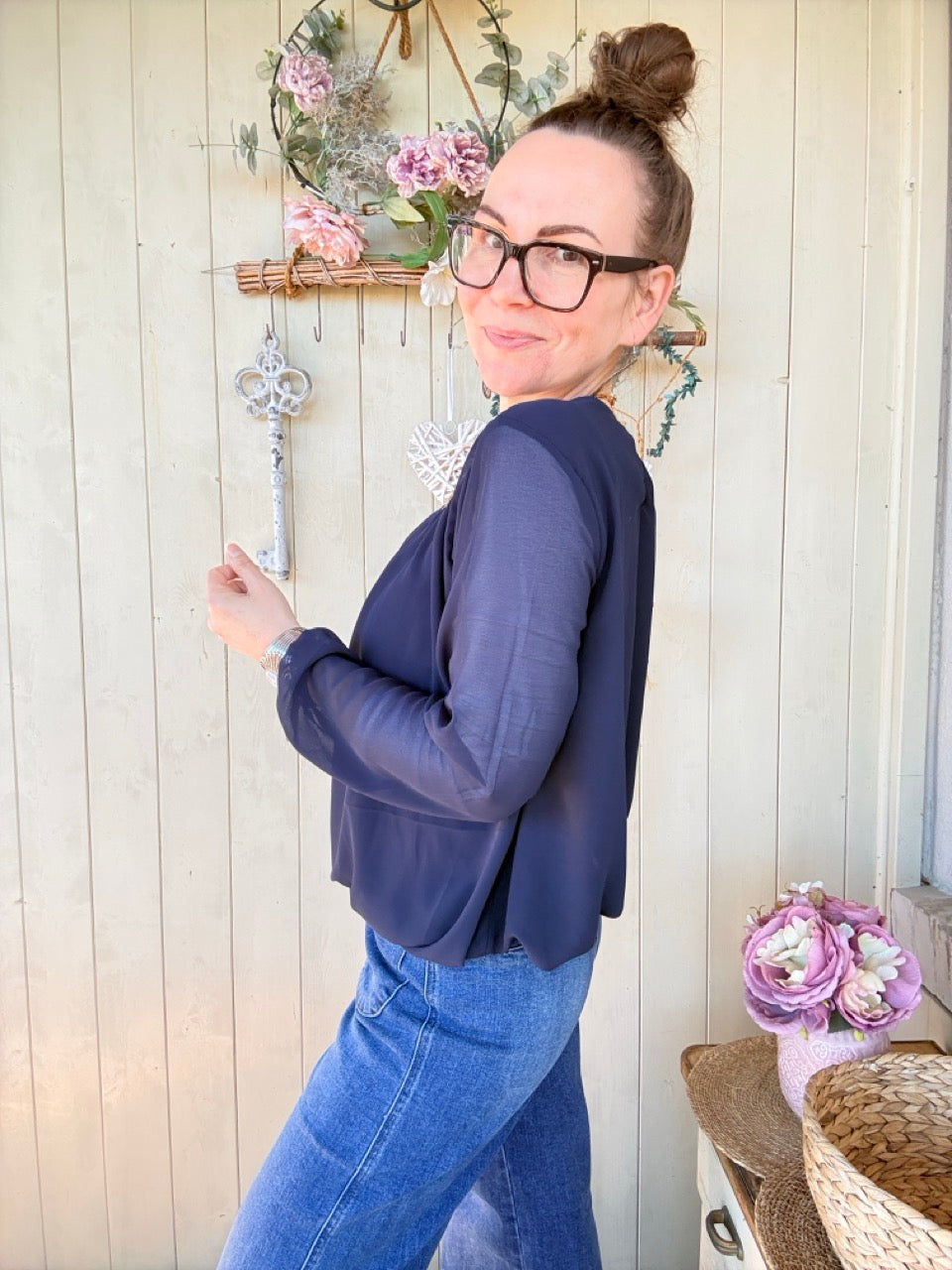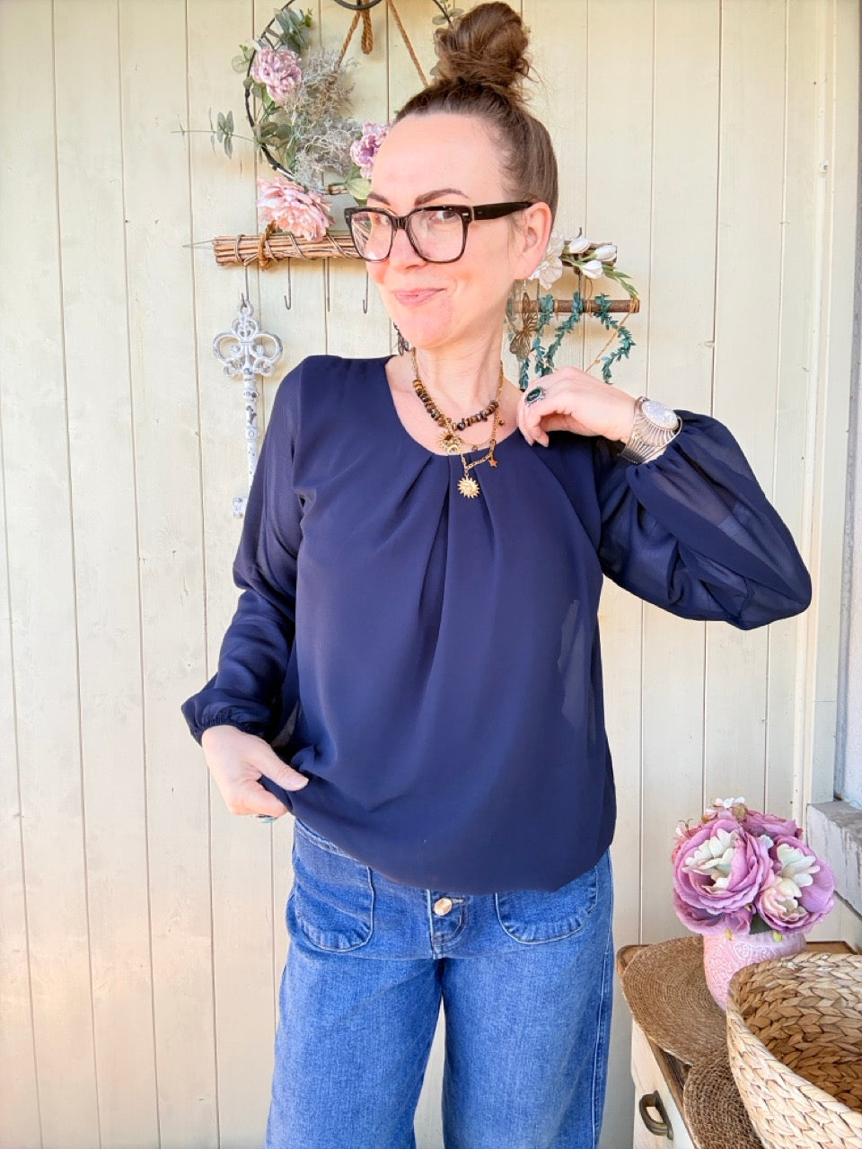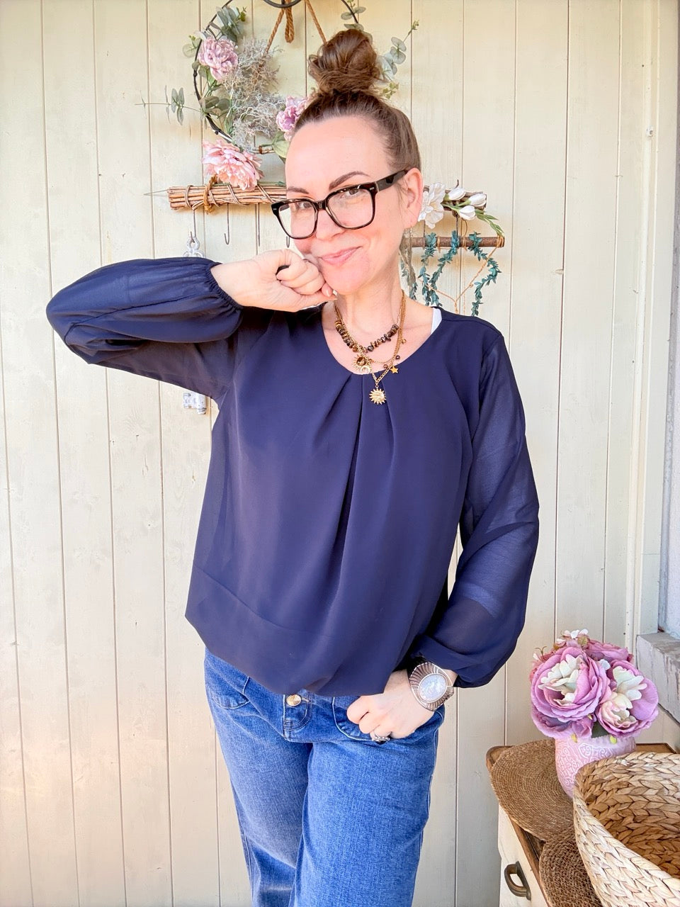 • Elegantes, leicht fliessendes Blusen Shirt in Dunkelblau