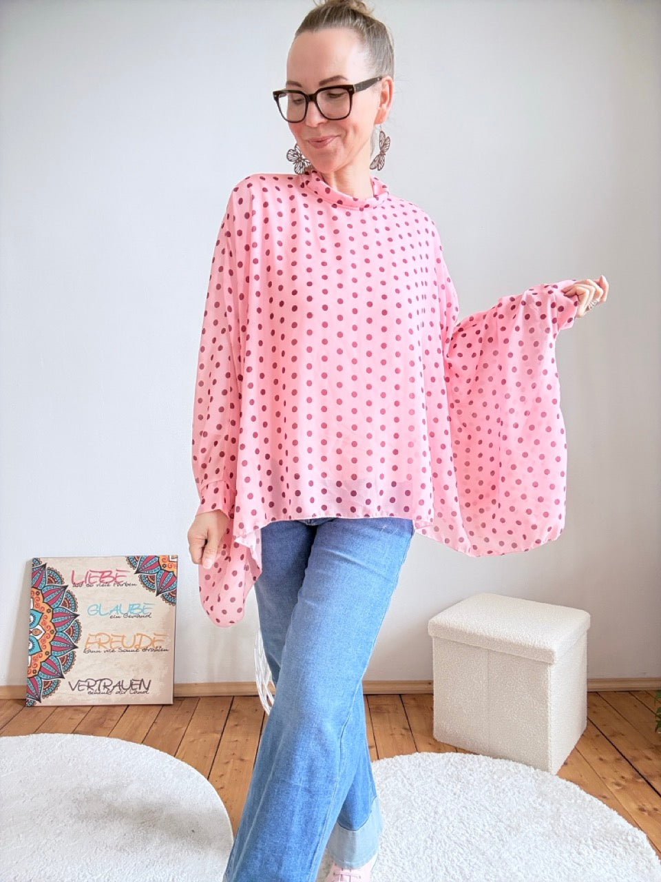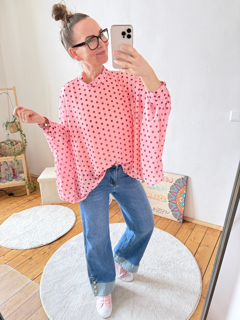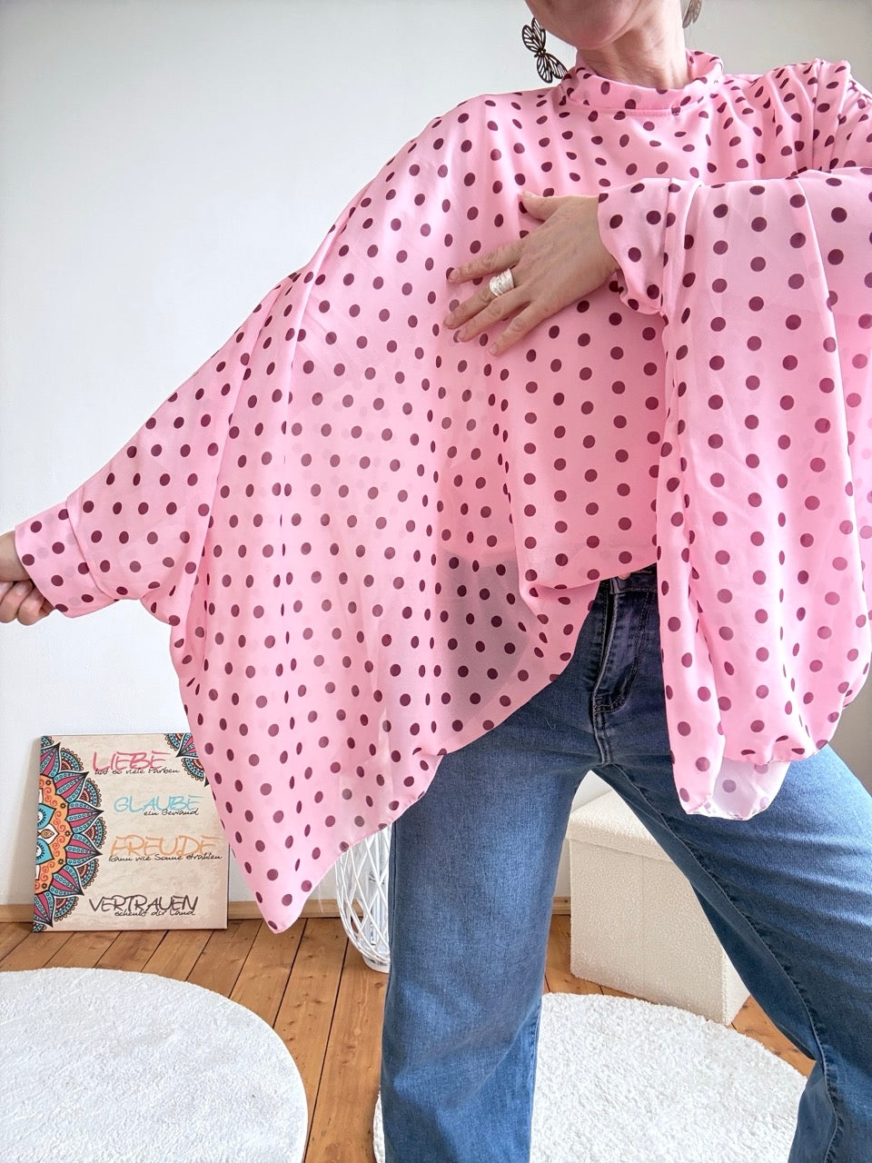 - Wunderschöne, leichte, weite Blusen - in Rose mit zarten Punkten