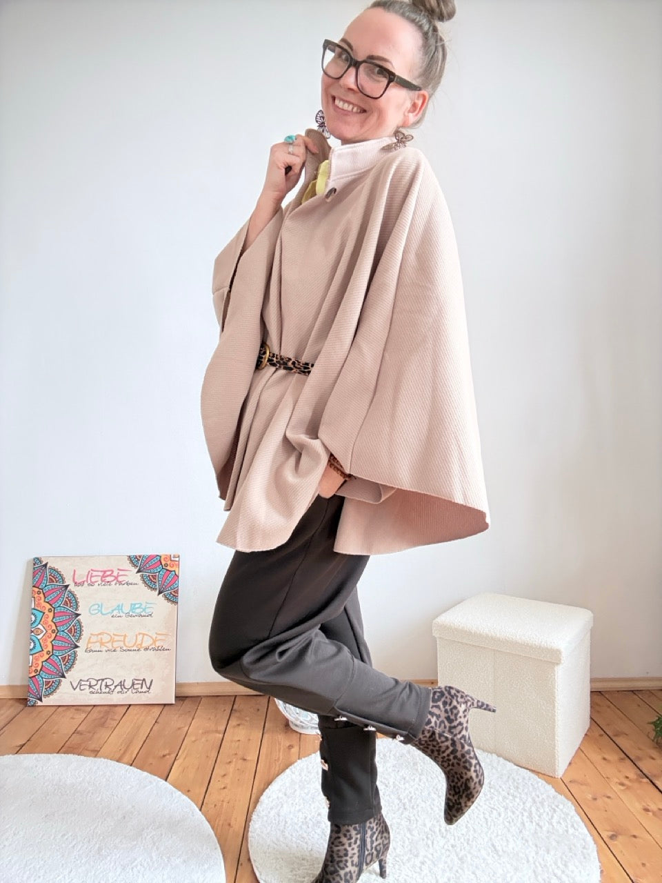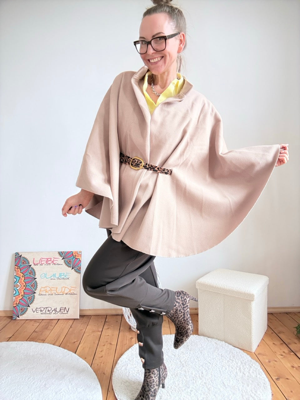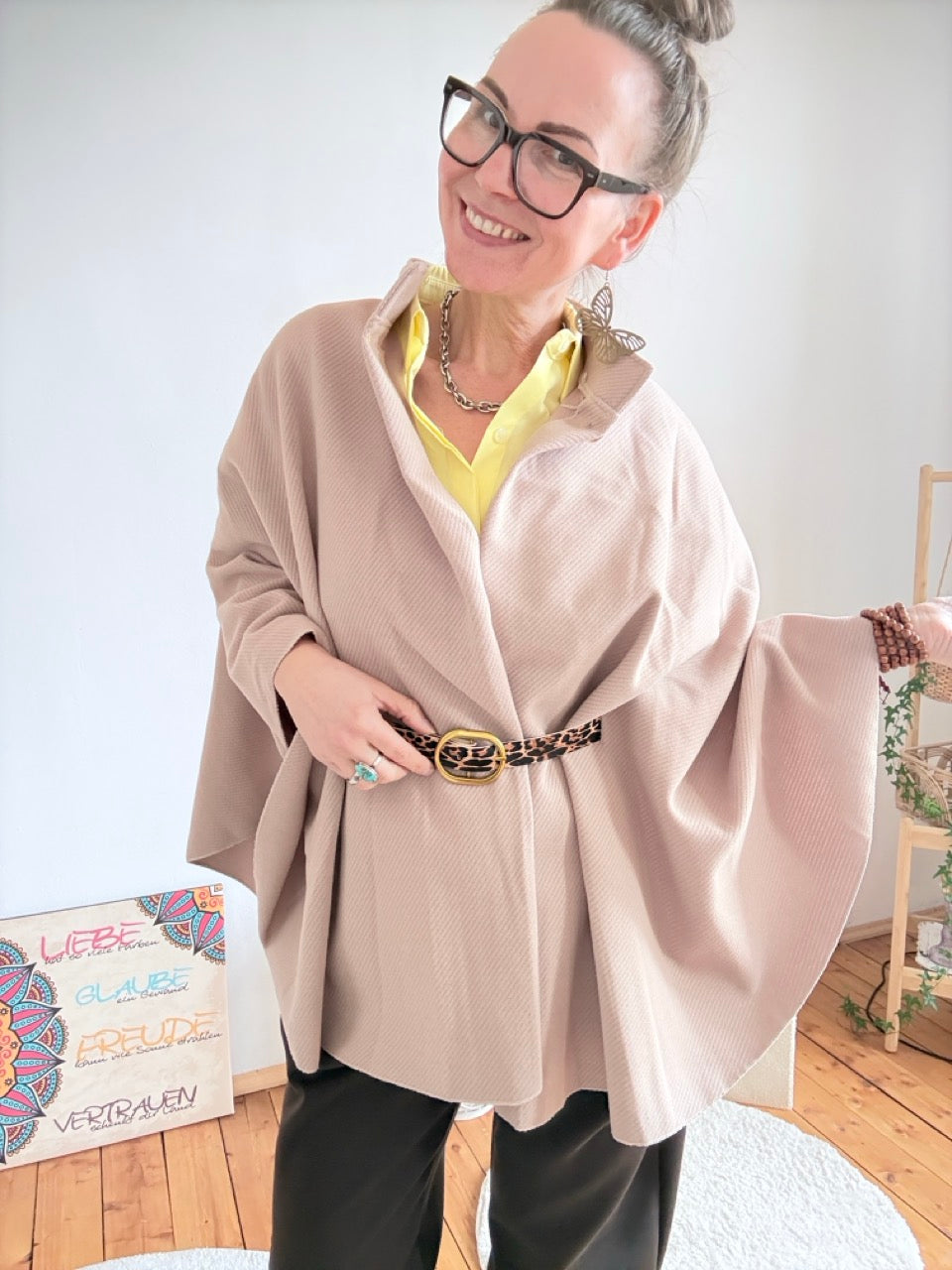 • Tolle Cape Jacke zum leichten Überziehen, in Cream, mit Gürtel
