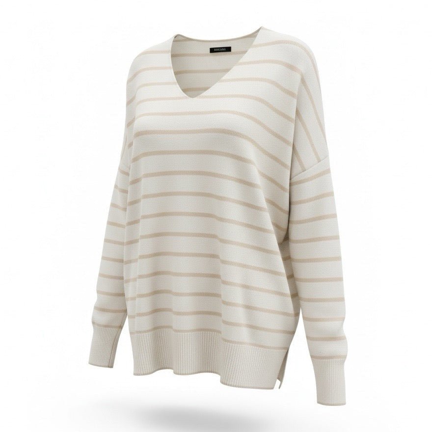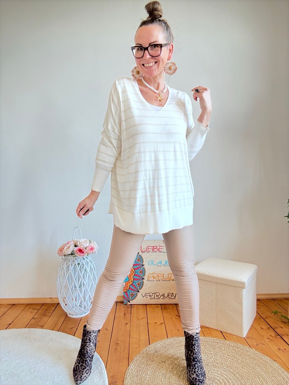 • Dünner, entspannt geschnittener Oversize Pulli in Weiß/ Cream gestreift