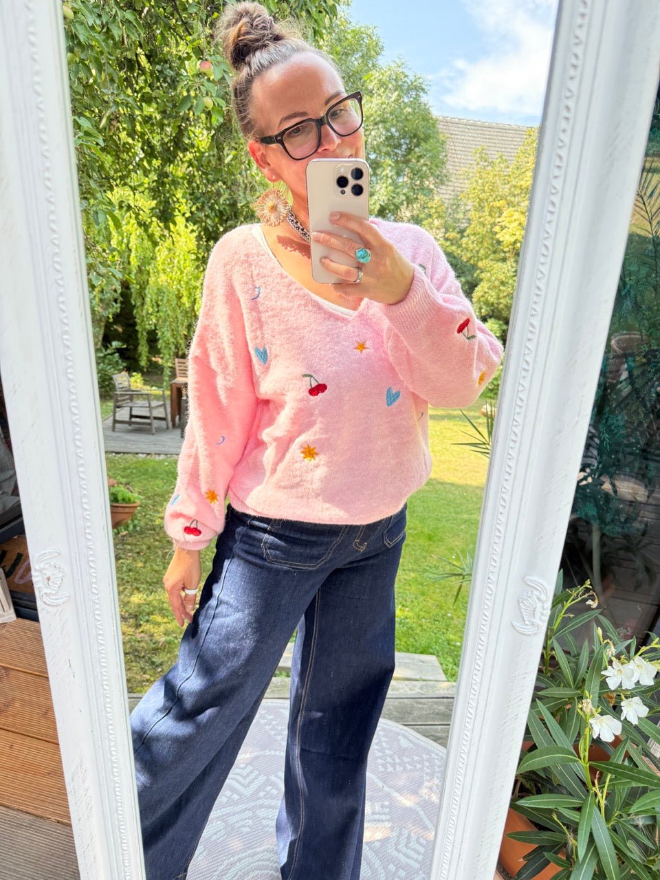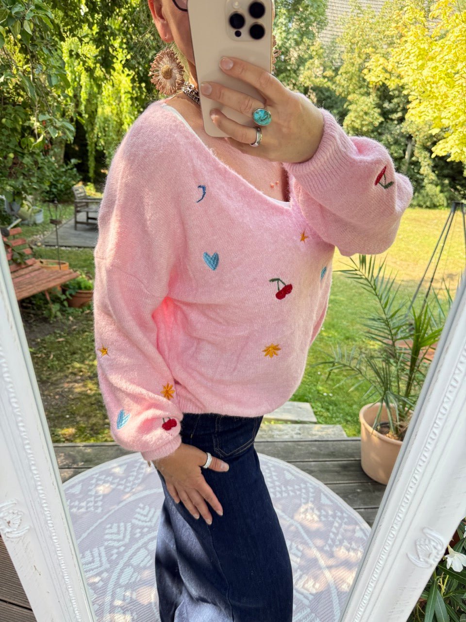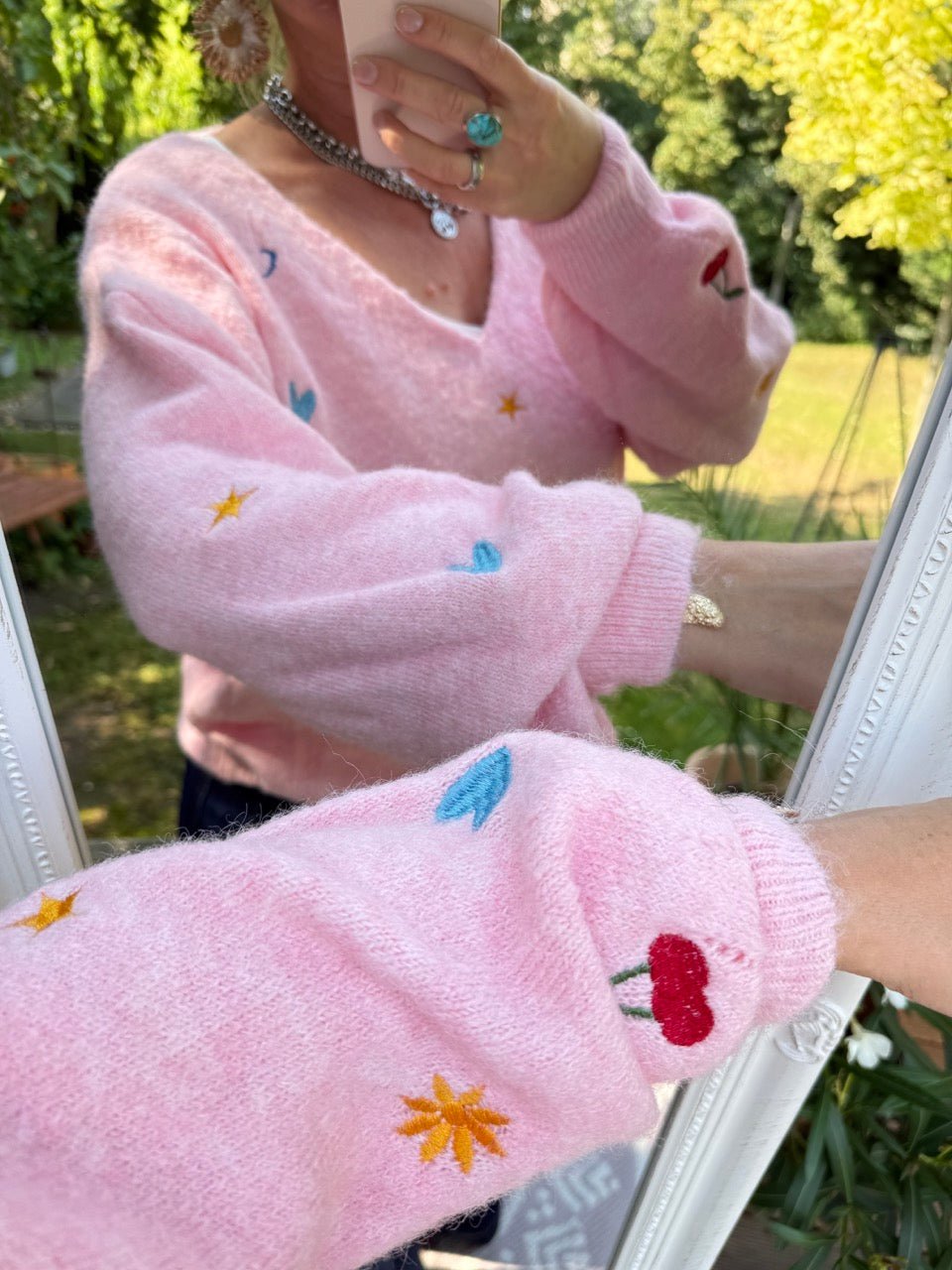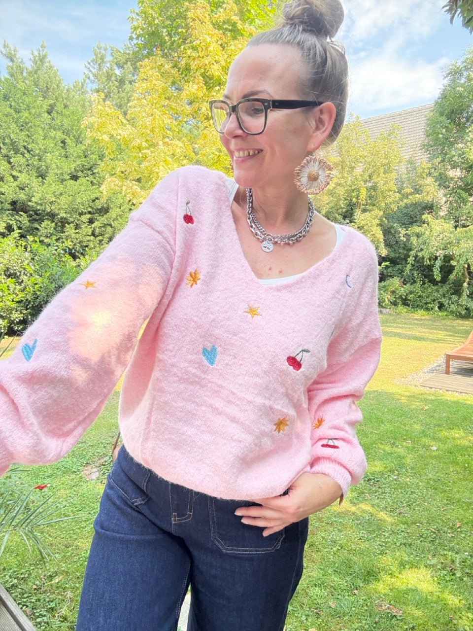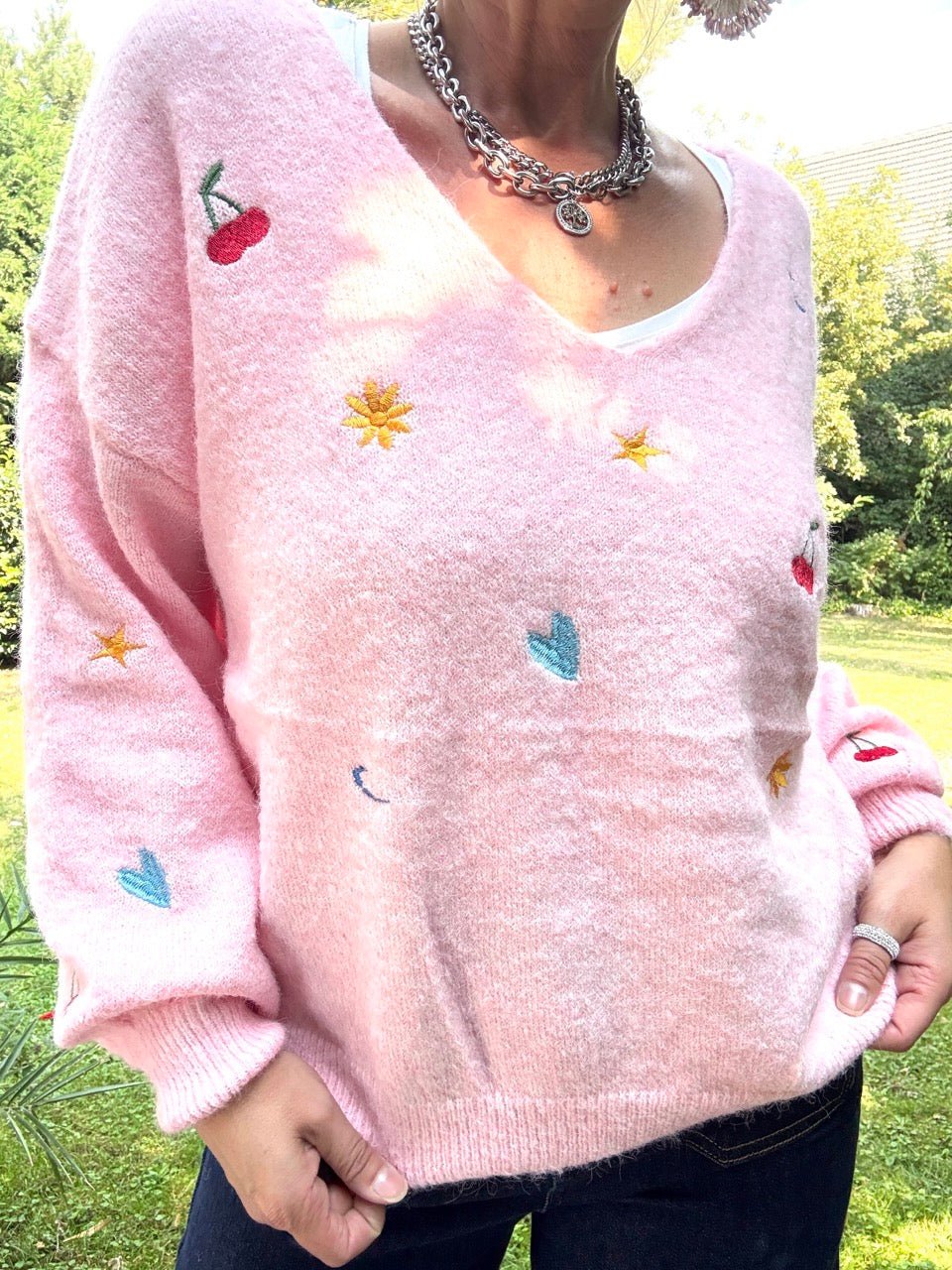 • Weicher Wohlfühlpulli mit kleinen Stickereien und Wollanteil, in Rose
