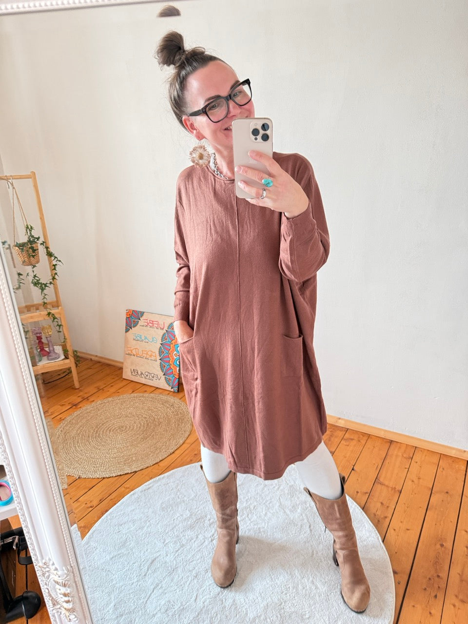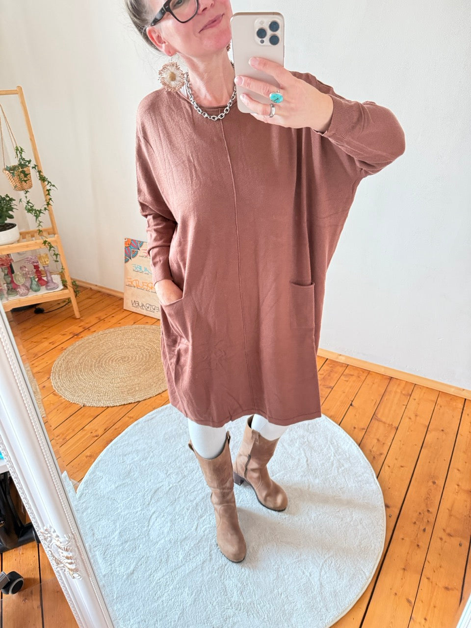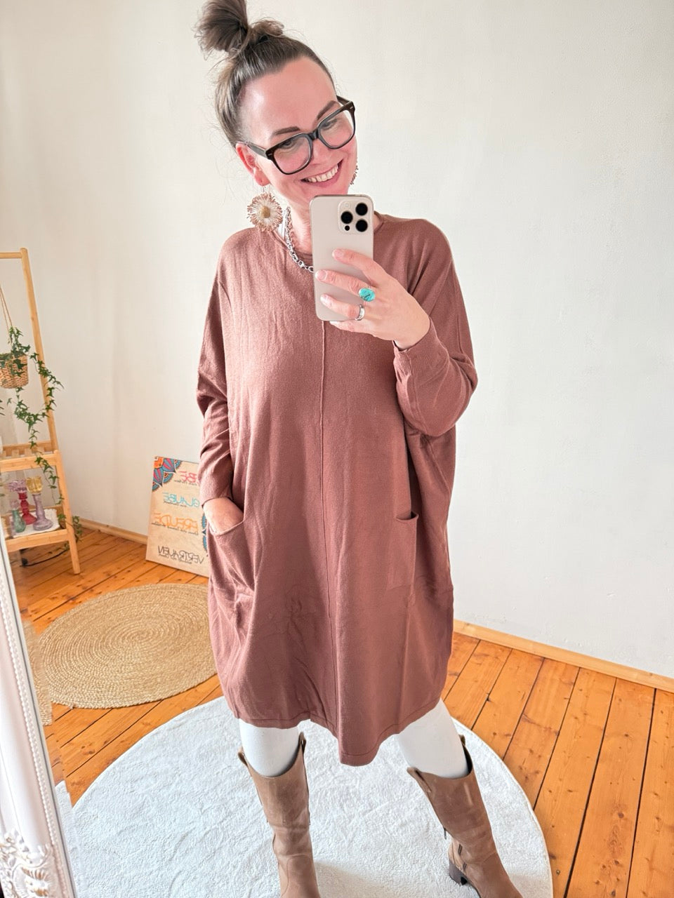 • Super lässiger, knielanger Oversize- Long-Pulli in Nougat, ein absolutes Wohlfühlstück
