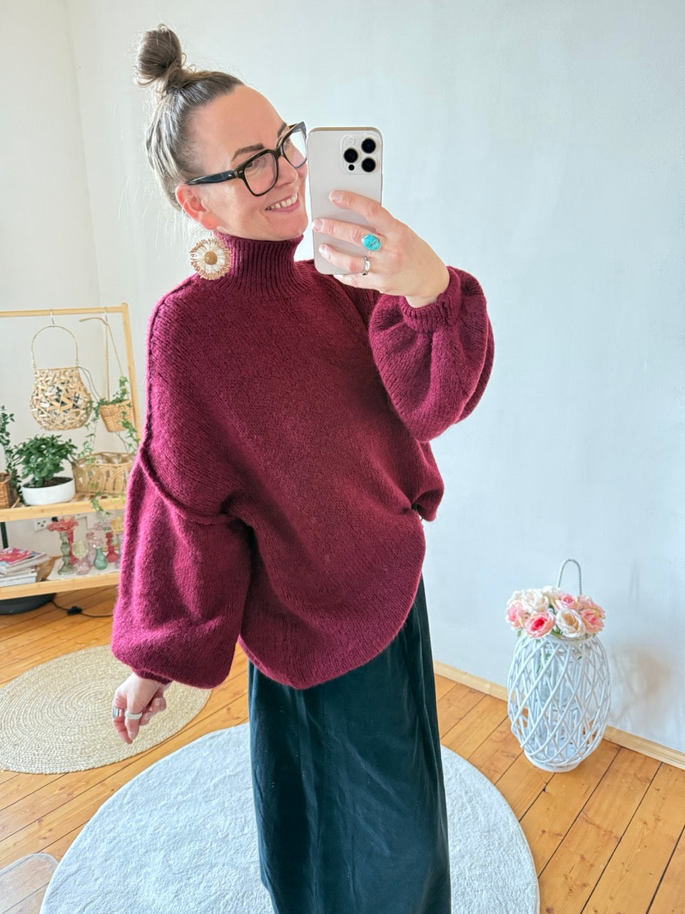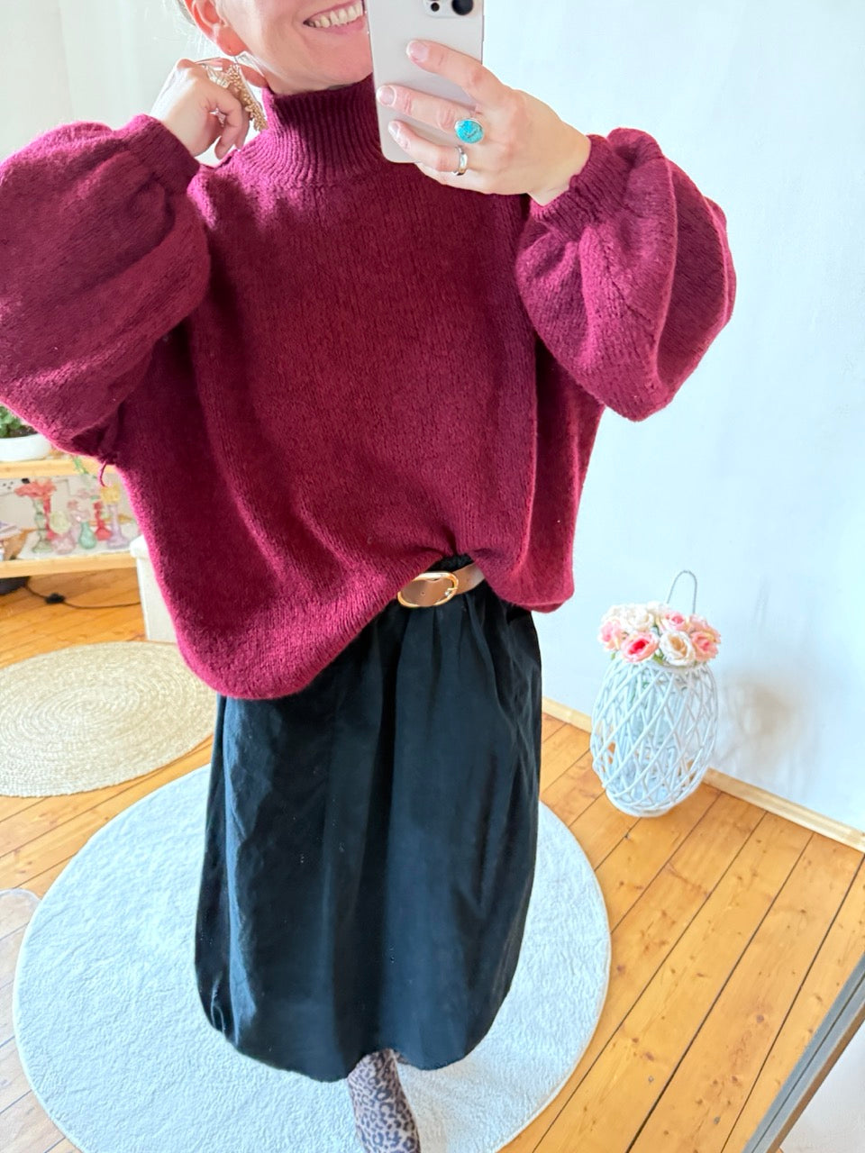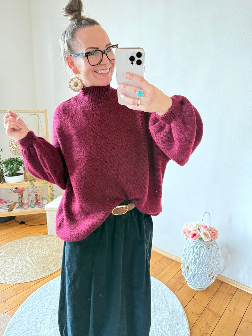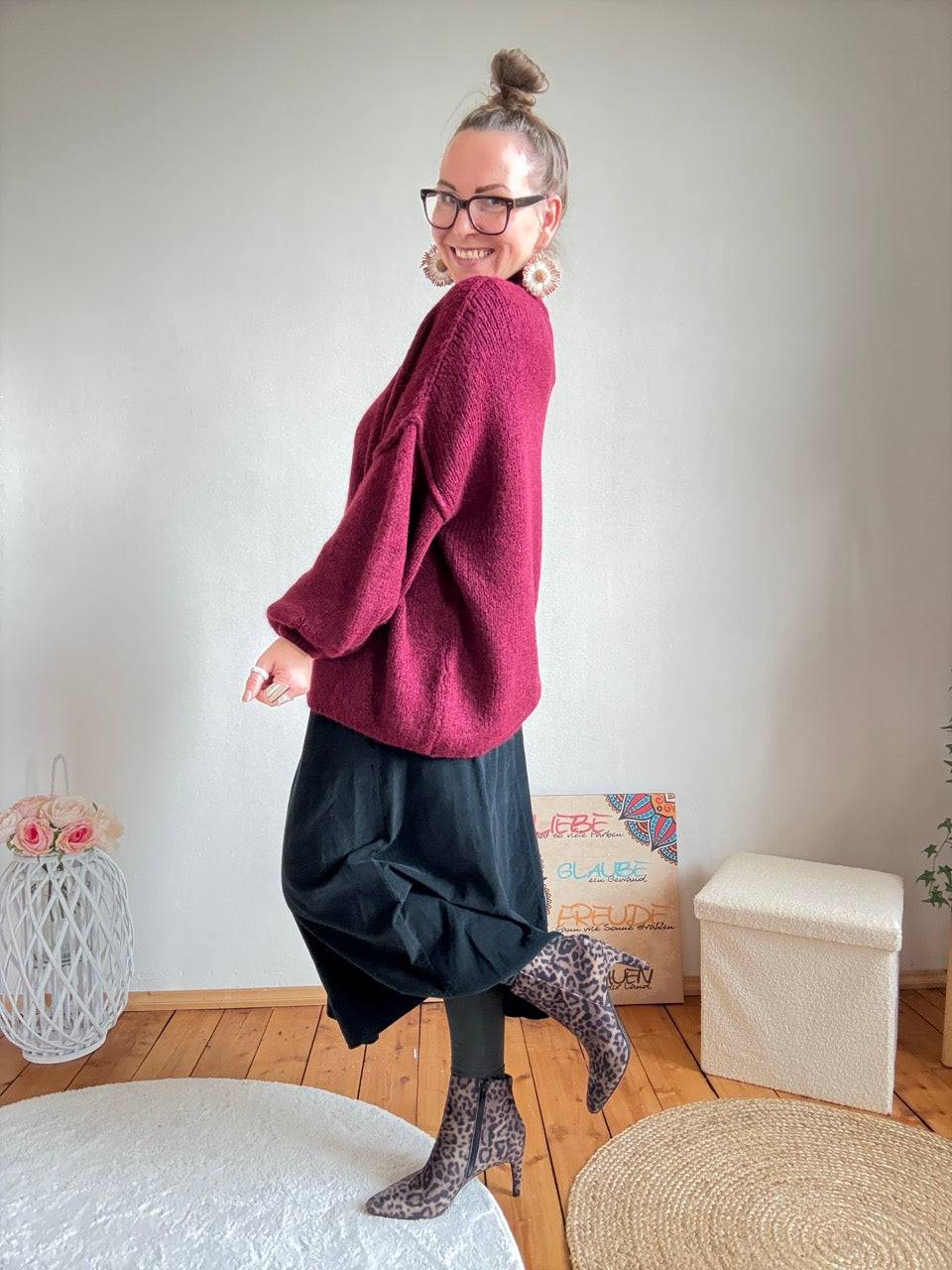 • Kuscheliger Oversize Pulli mit trendigen Aussennähten, kleinem Woll-Anteil, in Cherry