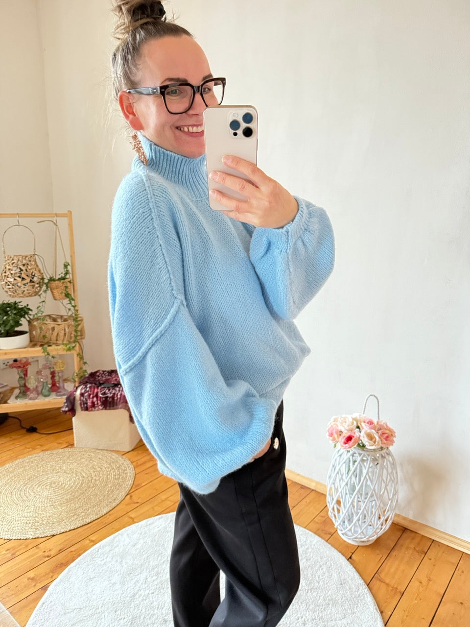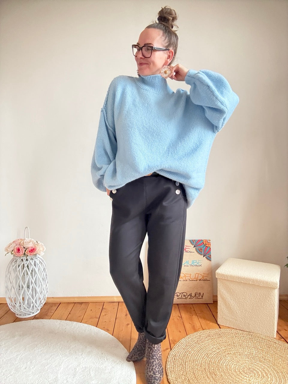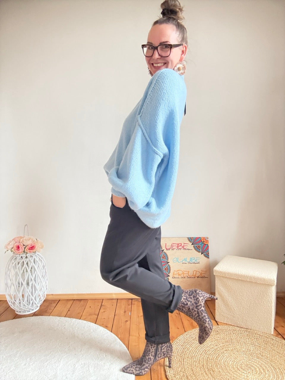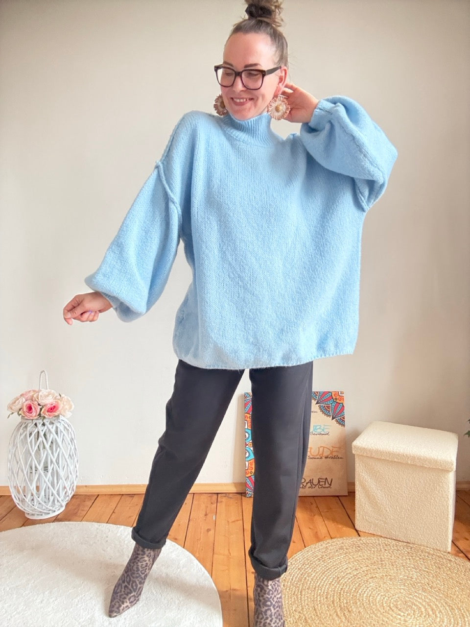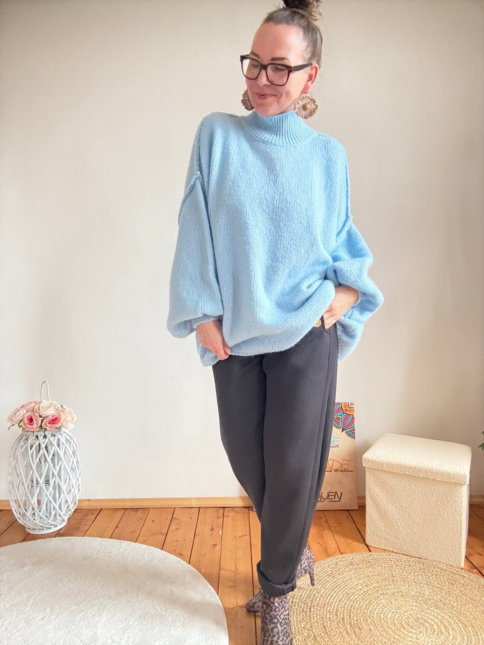 • Kuscheliger Oversize Pulli mit trendigen Aussennähten, kleinem Woll-Anteil, in Eisblau