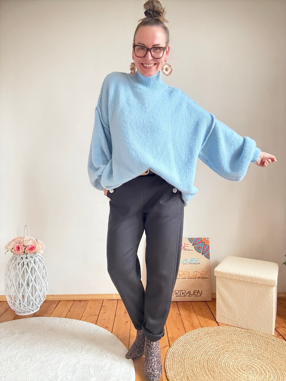 Bitte beachte: Der Pulli wird in maximal zwei Farbvarianten verschickt, damit keine Auswahlpakete entstehen und jedes Teil mit Liebe sein Zuhause findet.