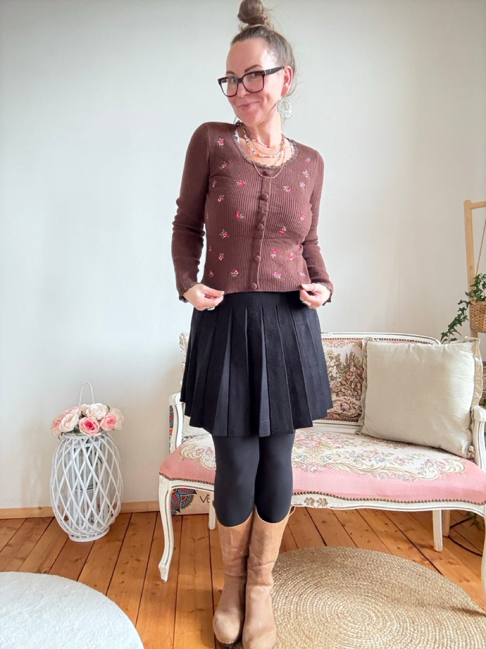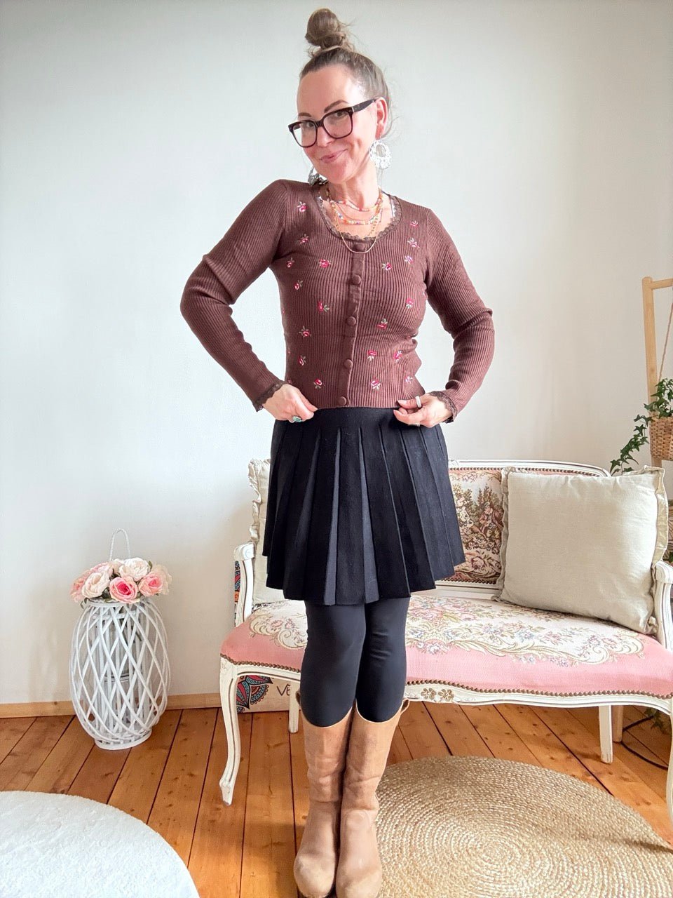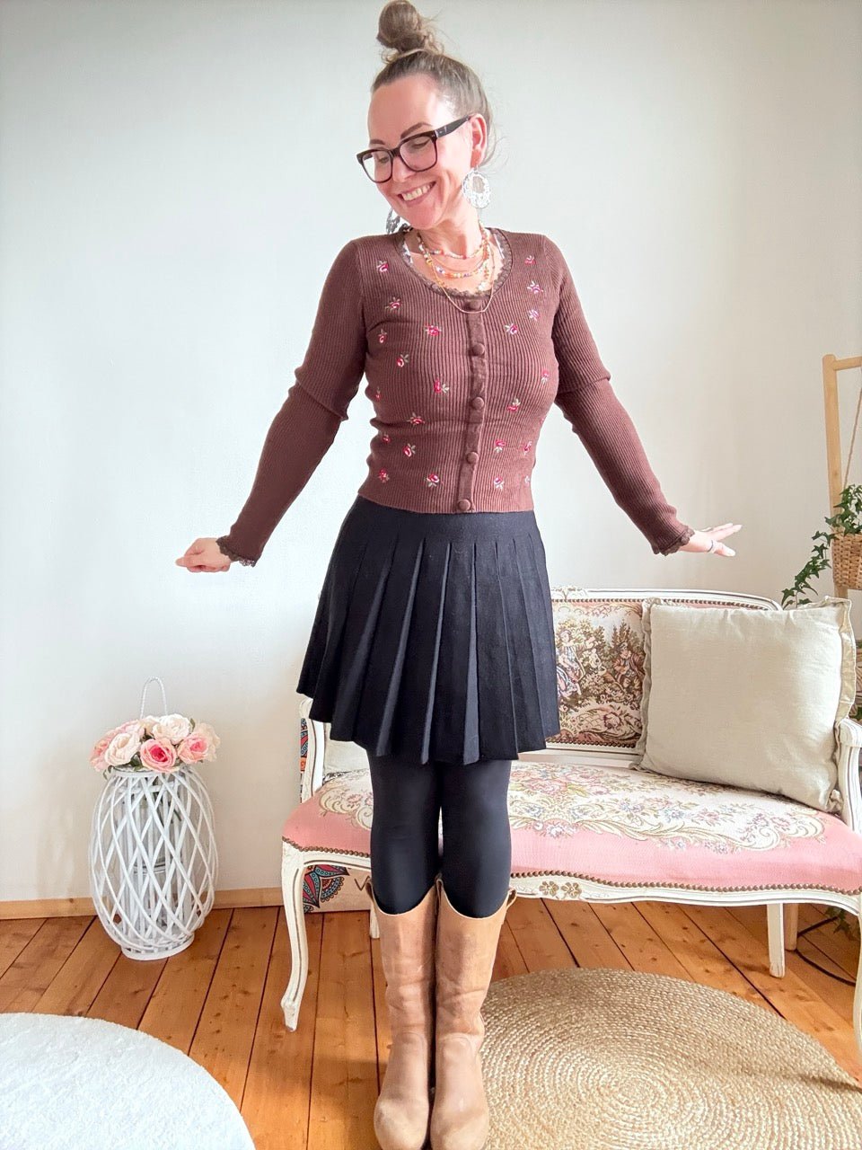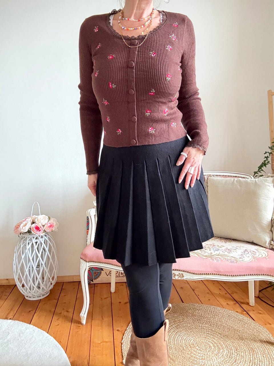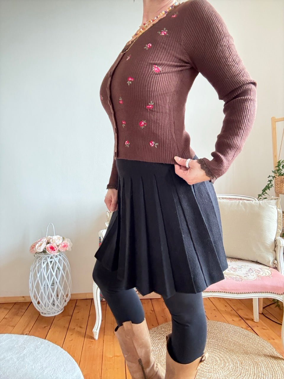 • Wunderschöner leichter Pulli in Schoko Braun mit aufgestickten Rosen
