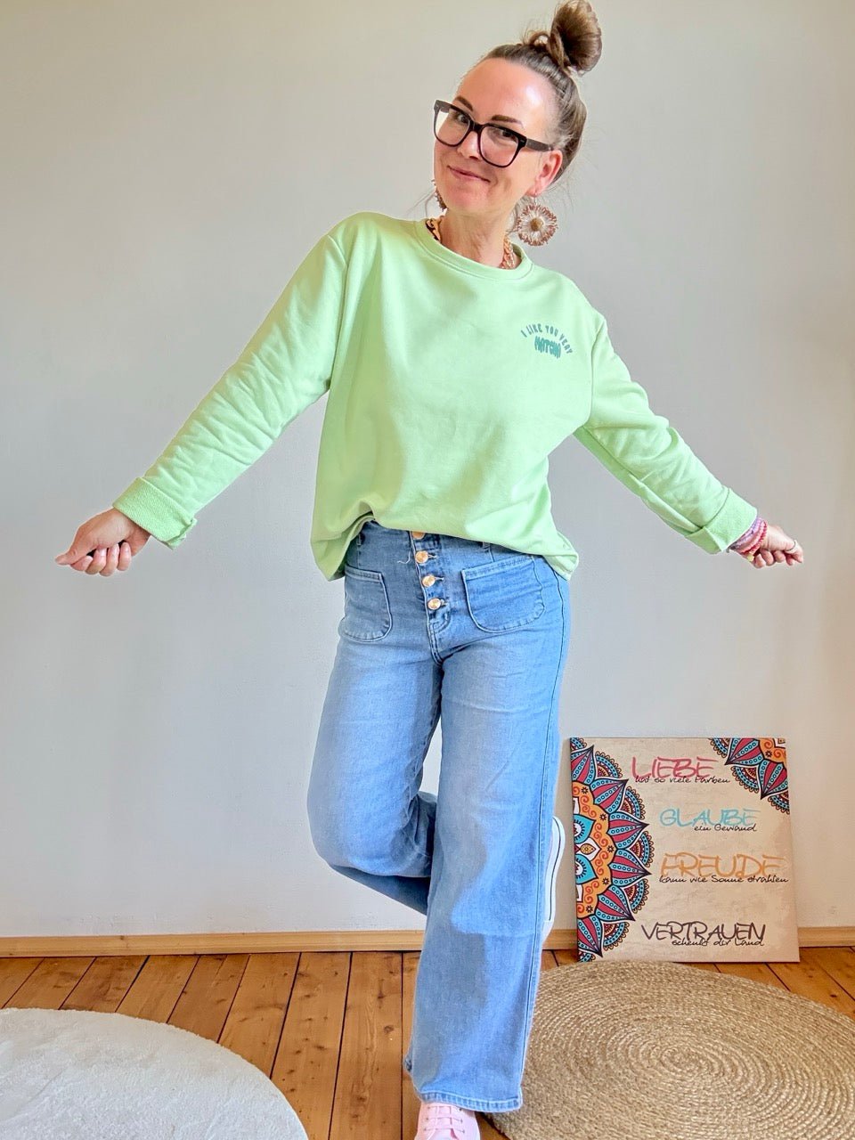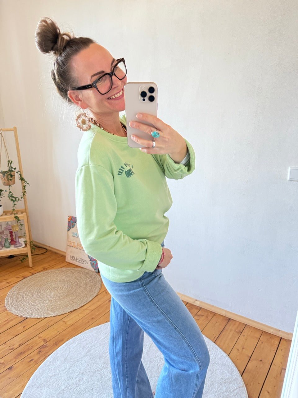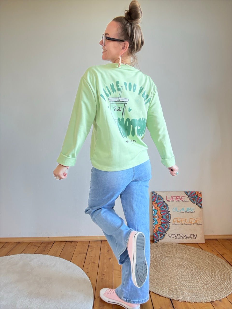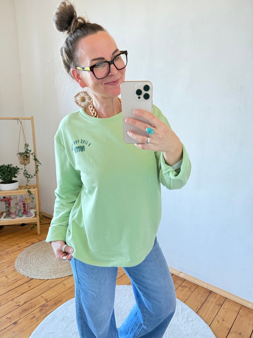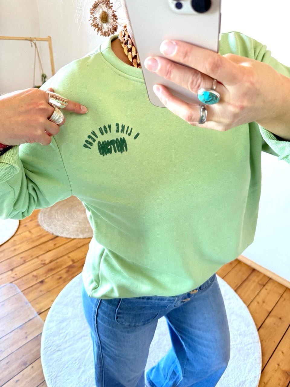 • Gemütlicher Sweater in Mint Grün, mit großem Rücken Print !