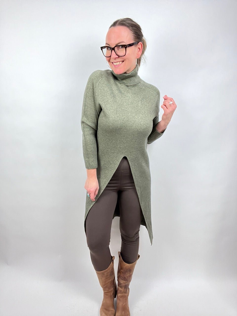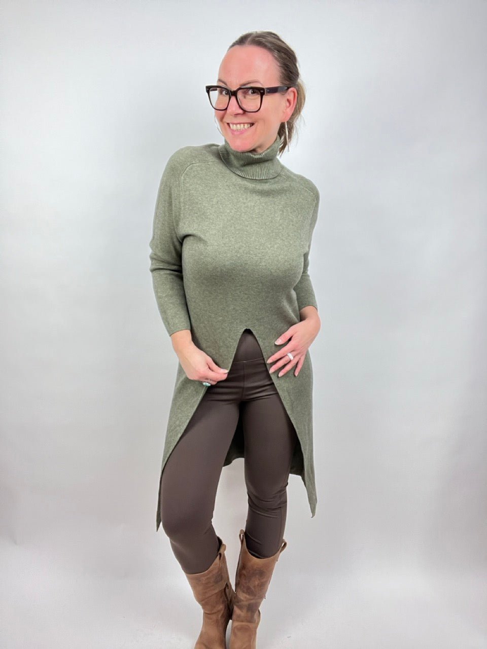 • Aussergewöhnlicher Maxi Rollkragen Pulli in Olive Grün, mit figurnahem Schnitt
