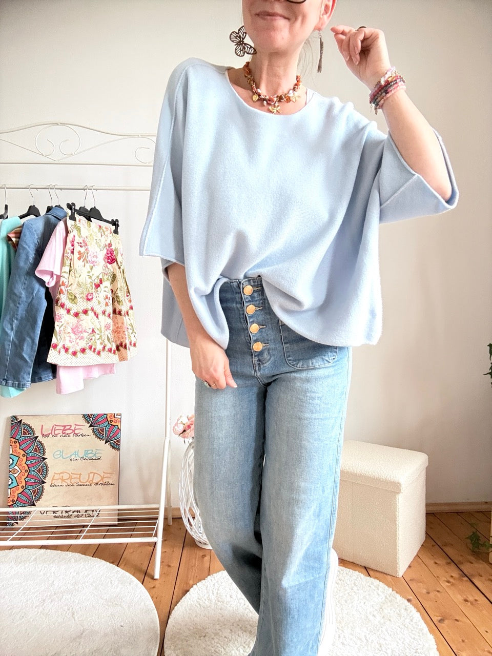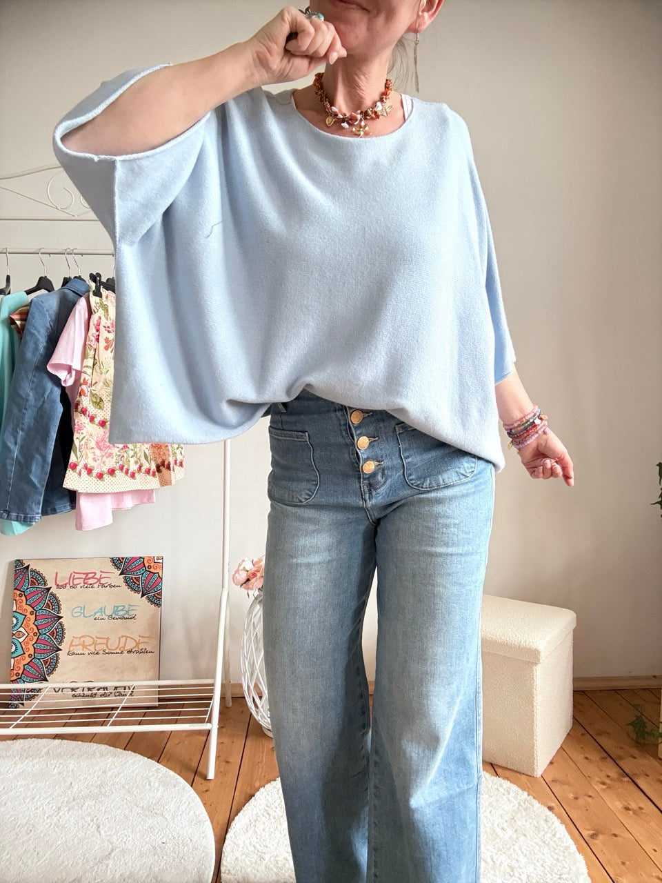 • Bestseller Strick Shirt / Kurzarm Pulli in Hellblau
