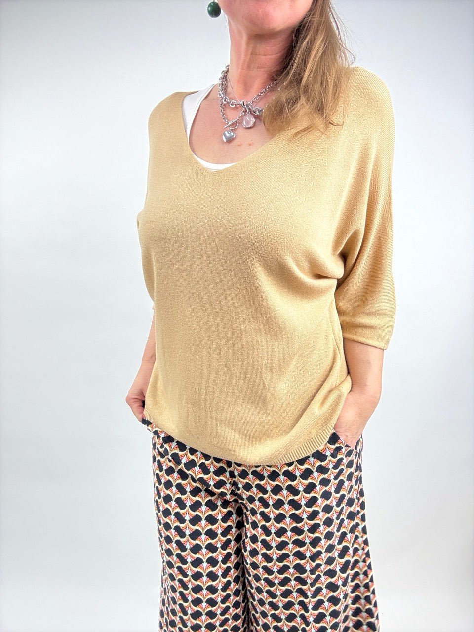 • mit seinem weiteren, entspannten Sitz, den halblangen Armen und dem dezenten V-Ausschnitt kannst du es zu vielen deiner Lieblingsteilen kombinieren