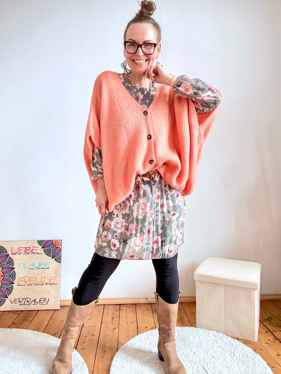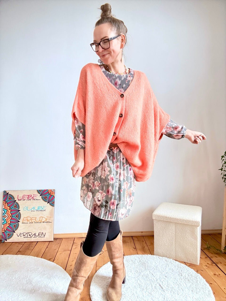 Bitte beachte: Die Strickjacke wird in maximal zwei Farbvarianten verschickt, damit keine Auswahlpakete entstehen und jedes Teil mit Liebe sein Zuhause findet.