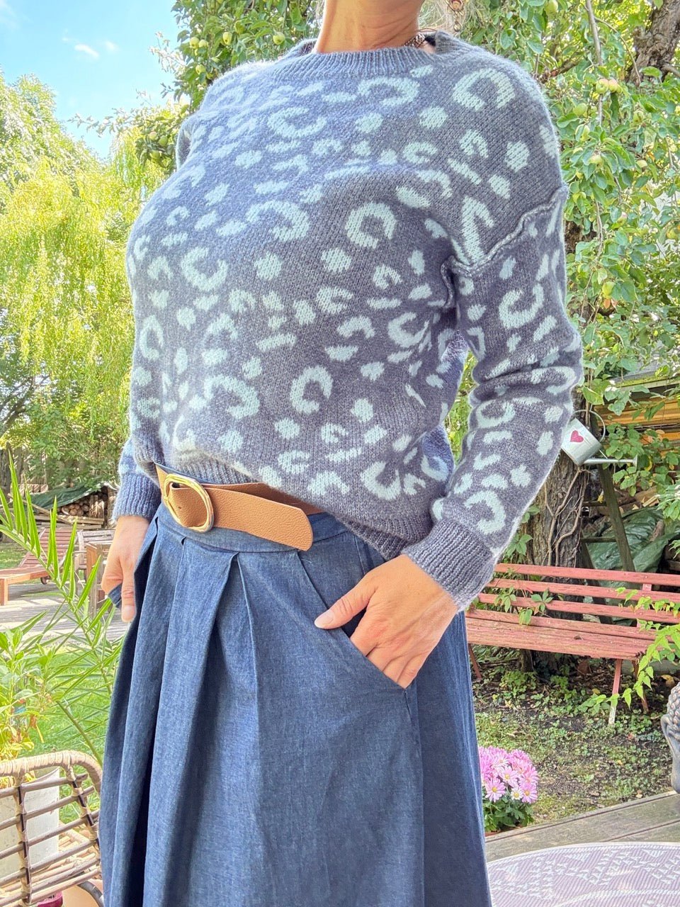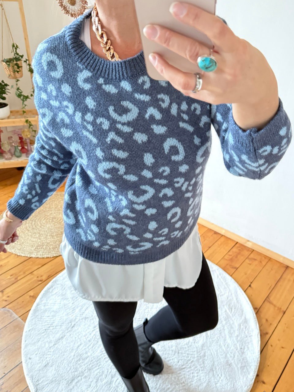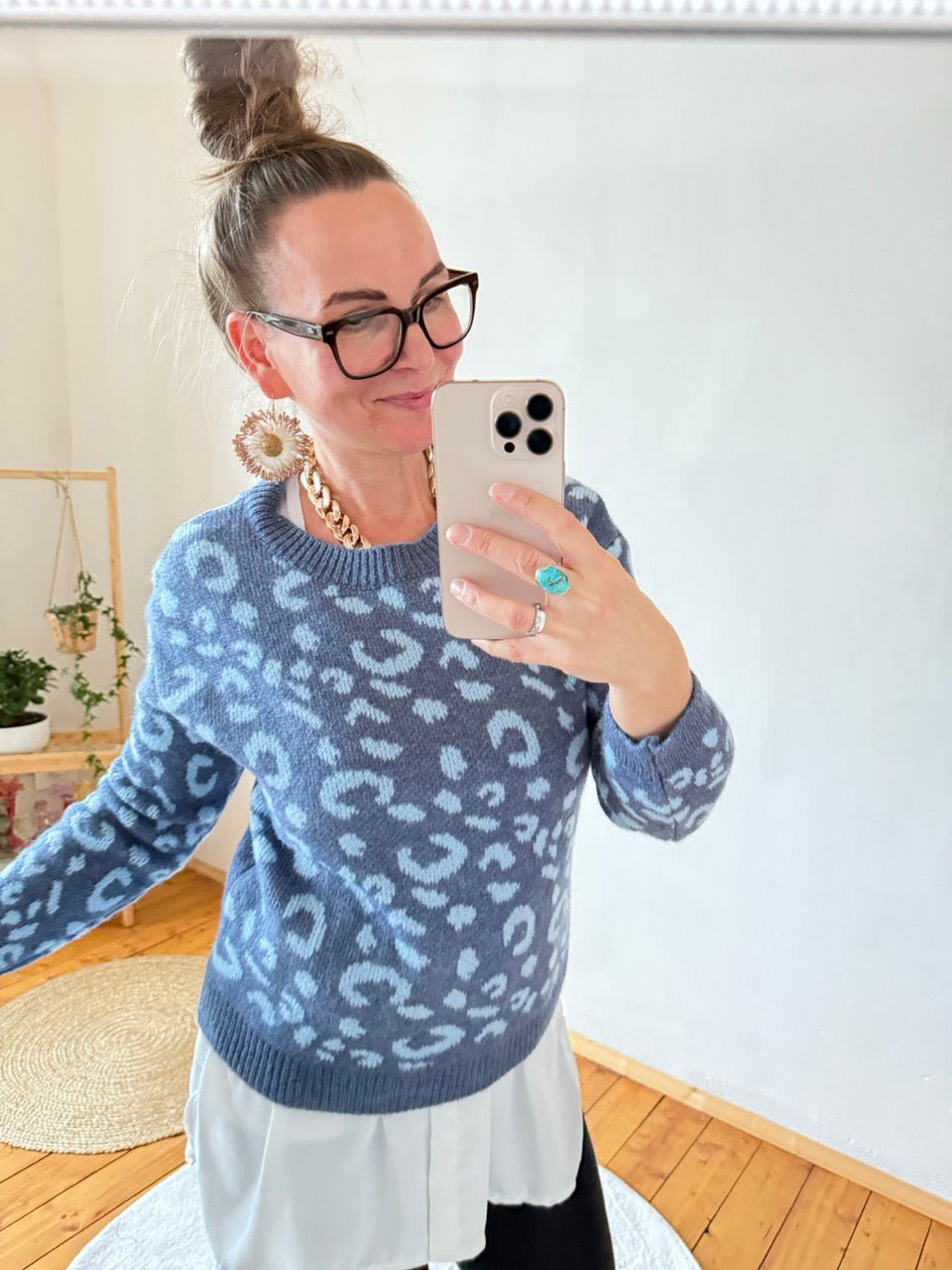 • Toller, weicher Pulli in Jeansblau mit Leomuster mit Wohlfühlgarantie