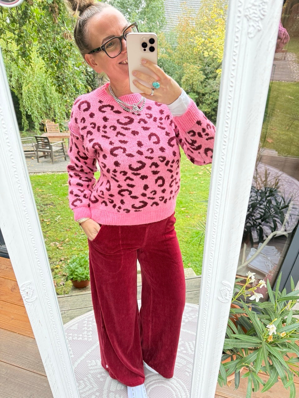 • Toller, weicher Pulli in Fuchsia / Pink, mit Leomuster mit Wohlfühlgarantie