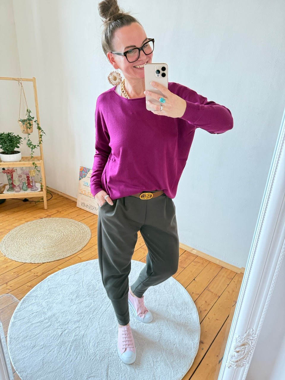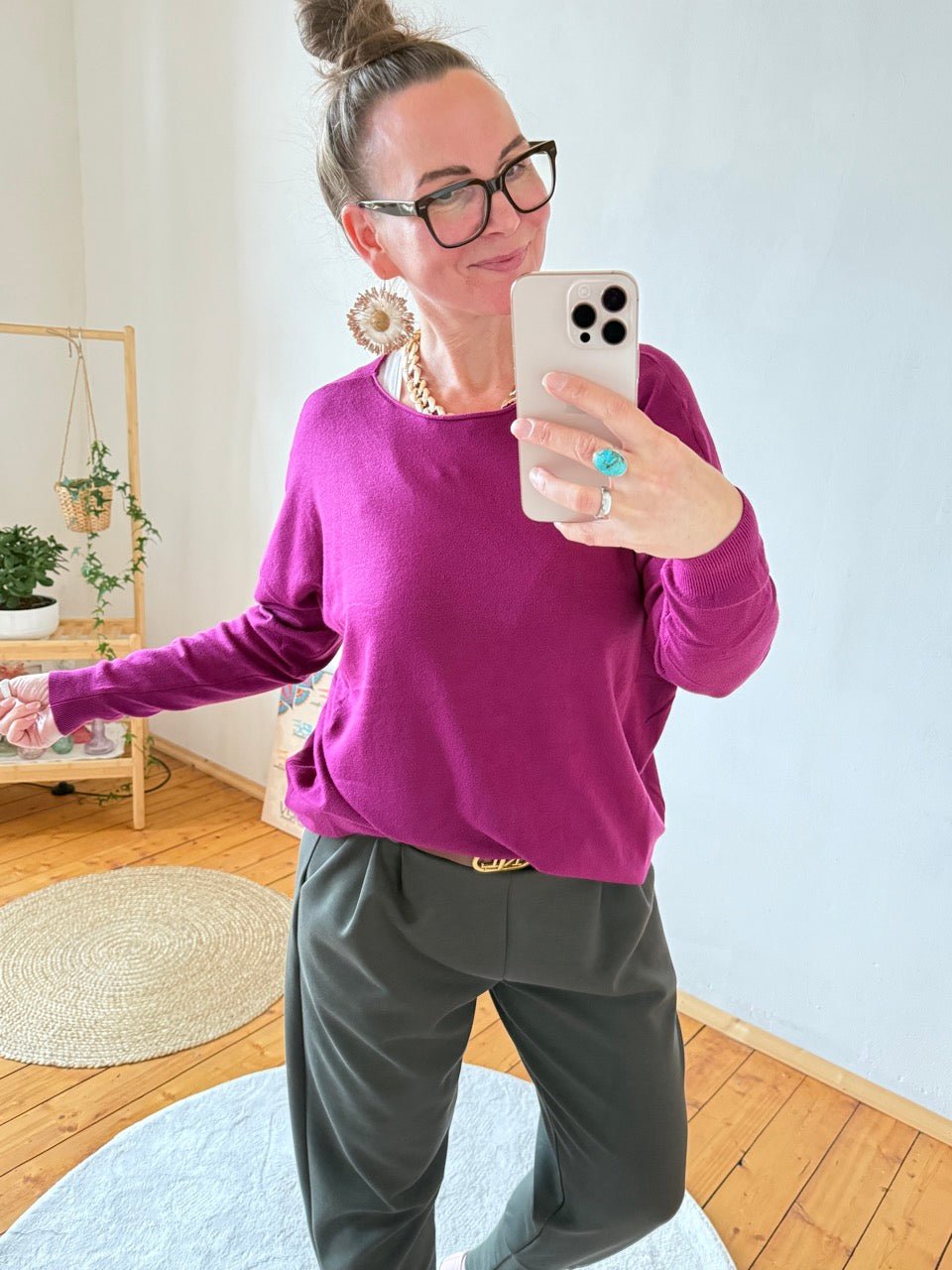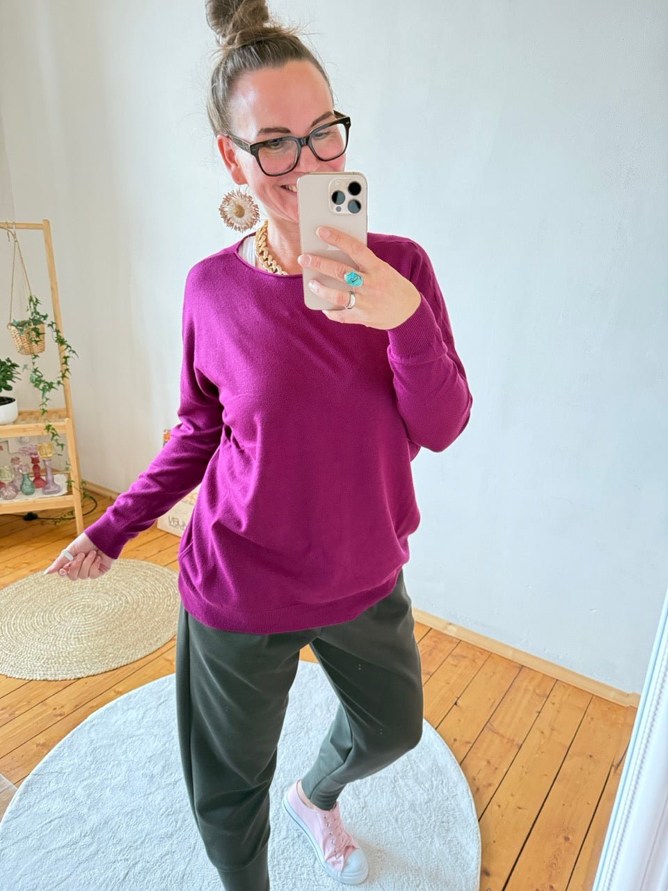 • Toller, entspannt geschnittener Bestseller Pulli in Magenta, ein Alltagsheld