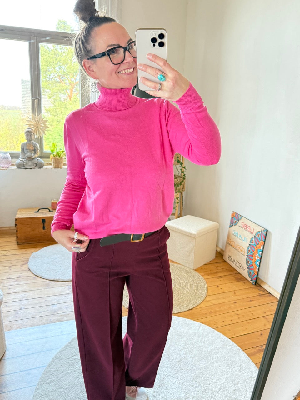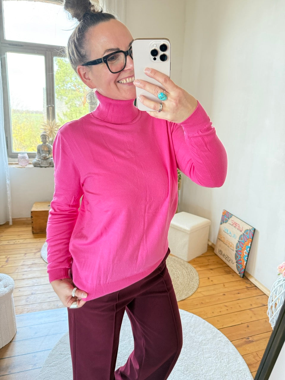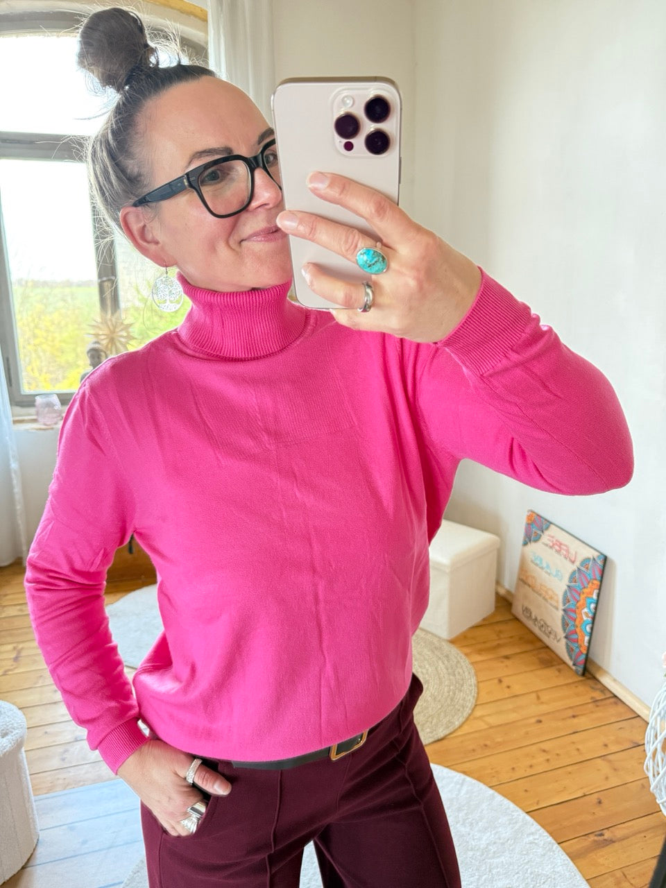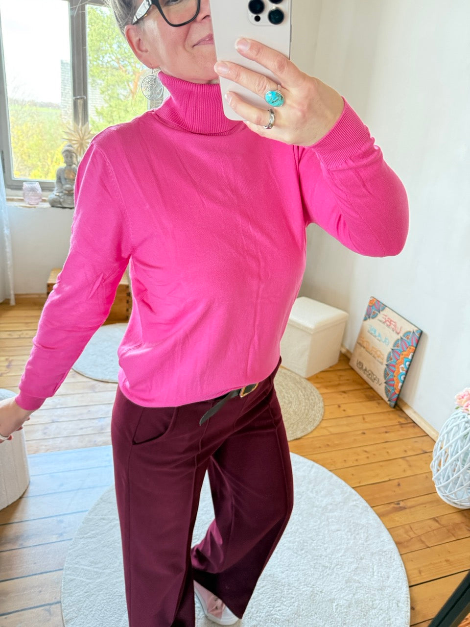 • Toller, leichter Feinstrick-Rollkragen Pulli in Fuchsia