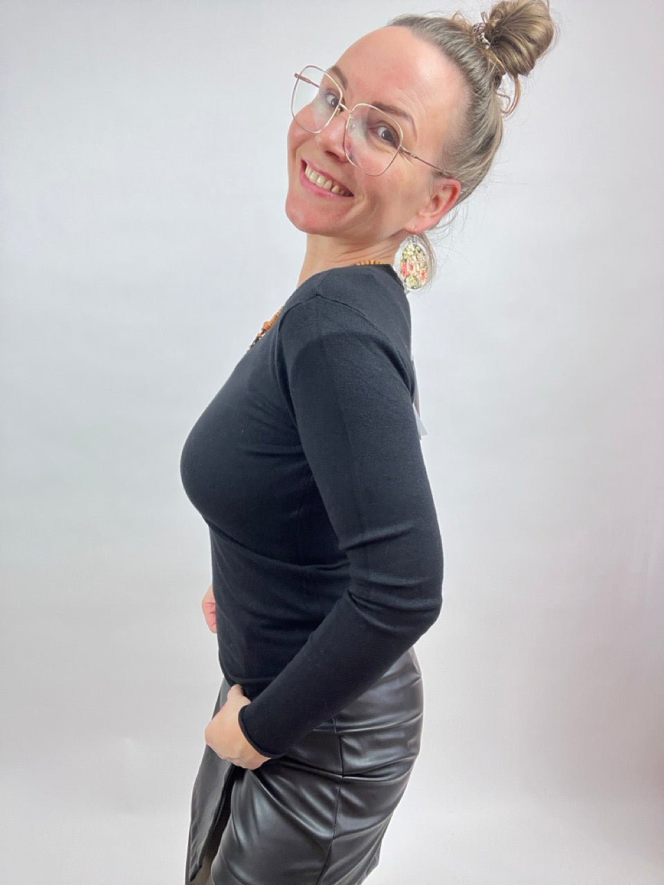 • Grenzenlos gemütlicher, figurnaher Strick-Pulli in Schwarz, ein Basic Held
