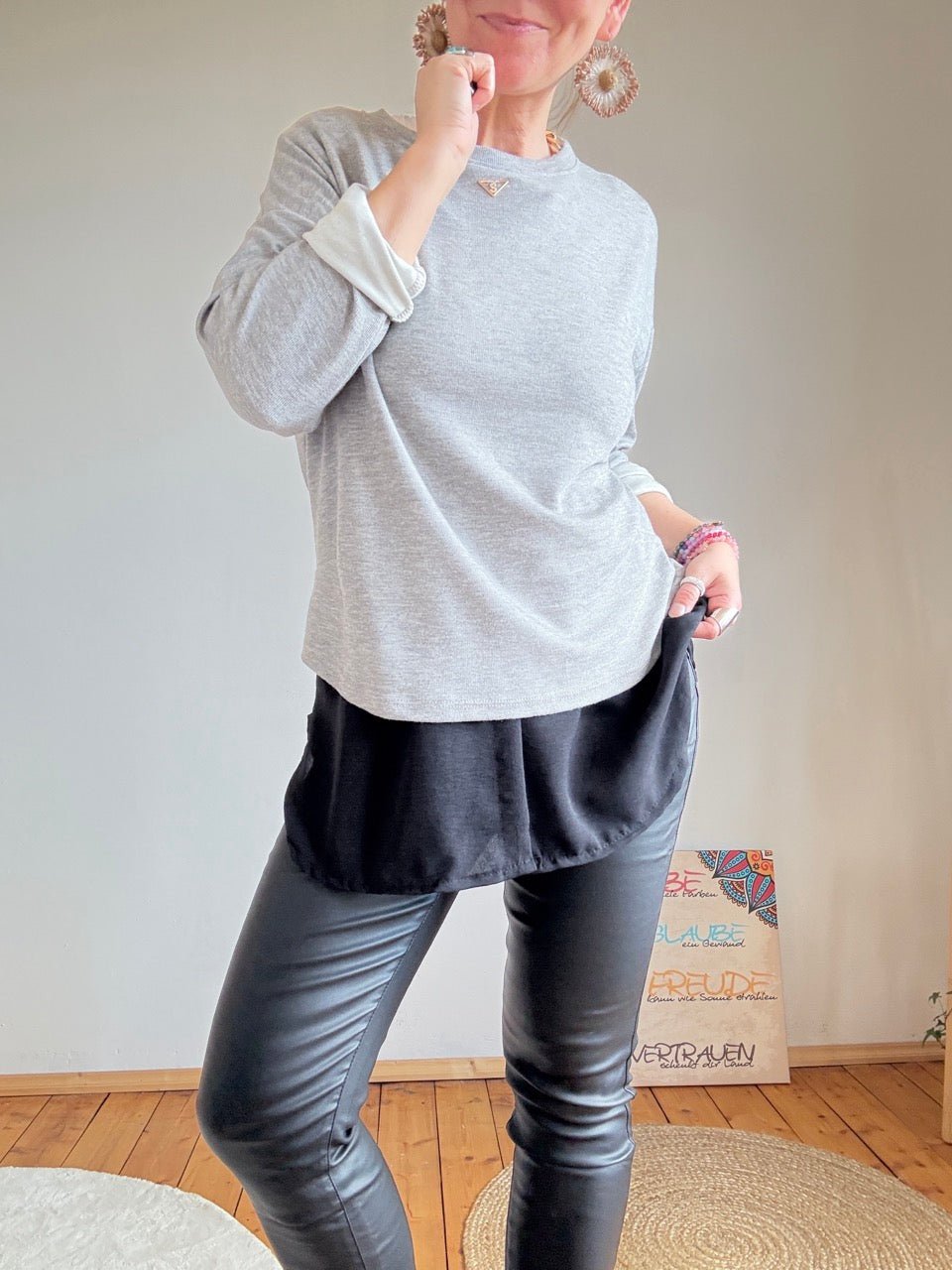 • Gemütliches Langarmshirt in Grau