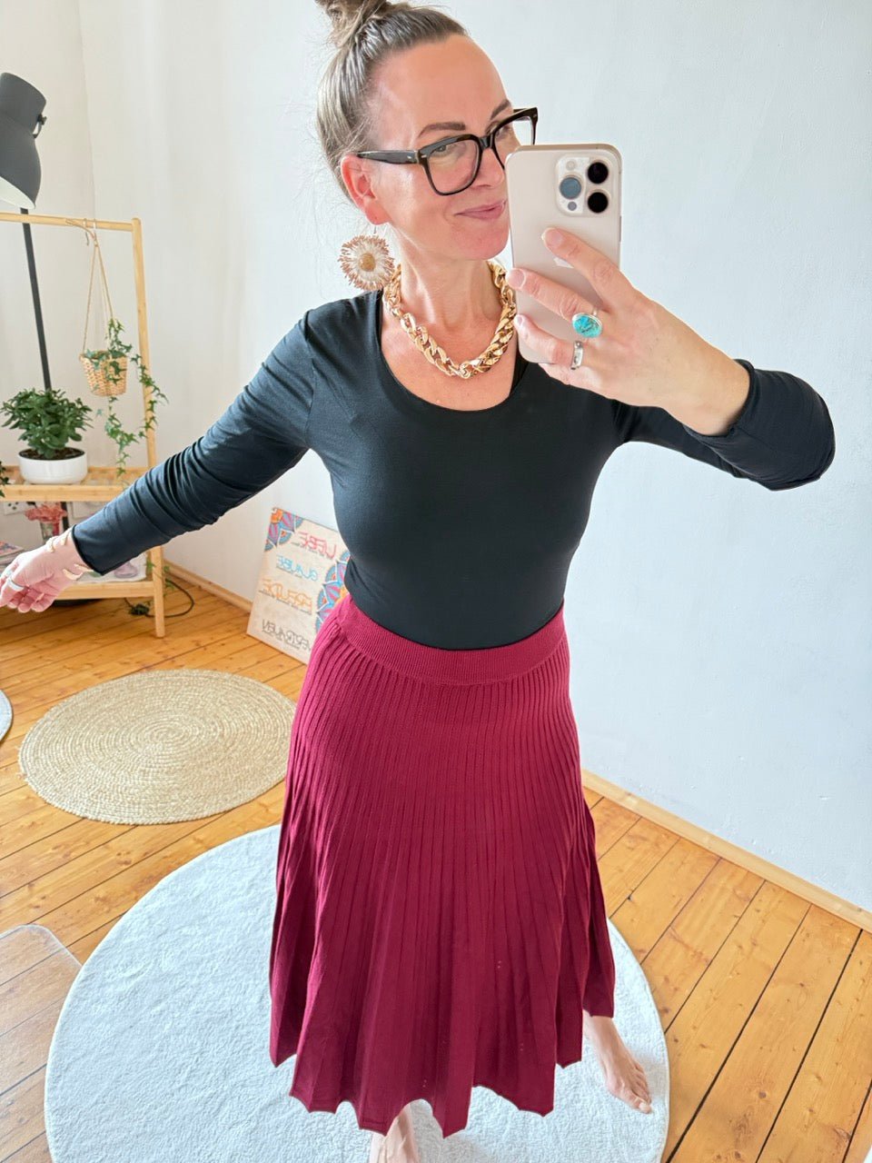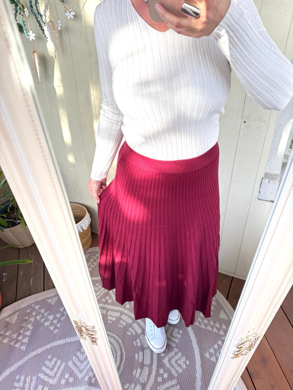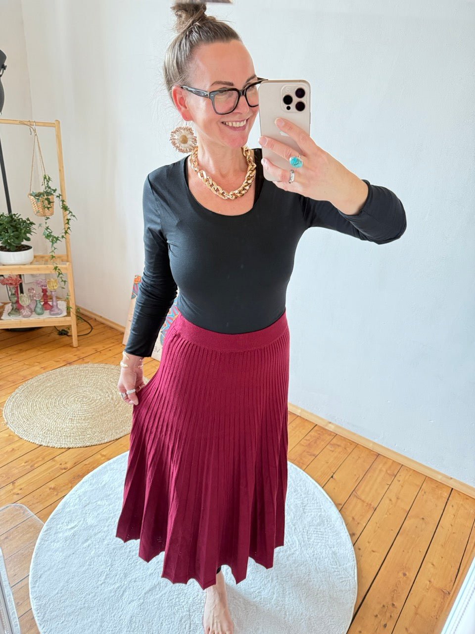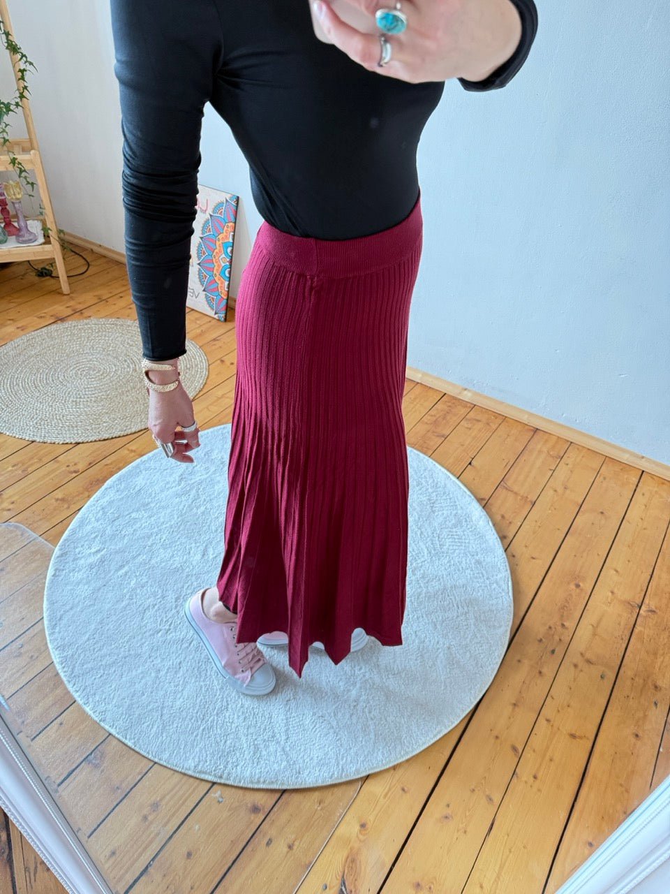 - Wunderschöner, wadenlanger Strick Plissee Rock in Cherry