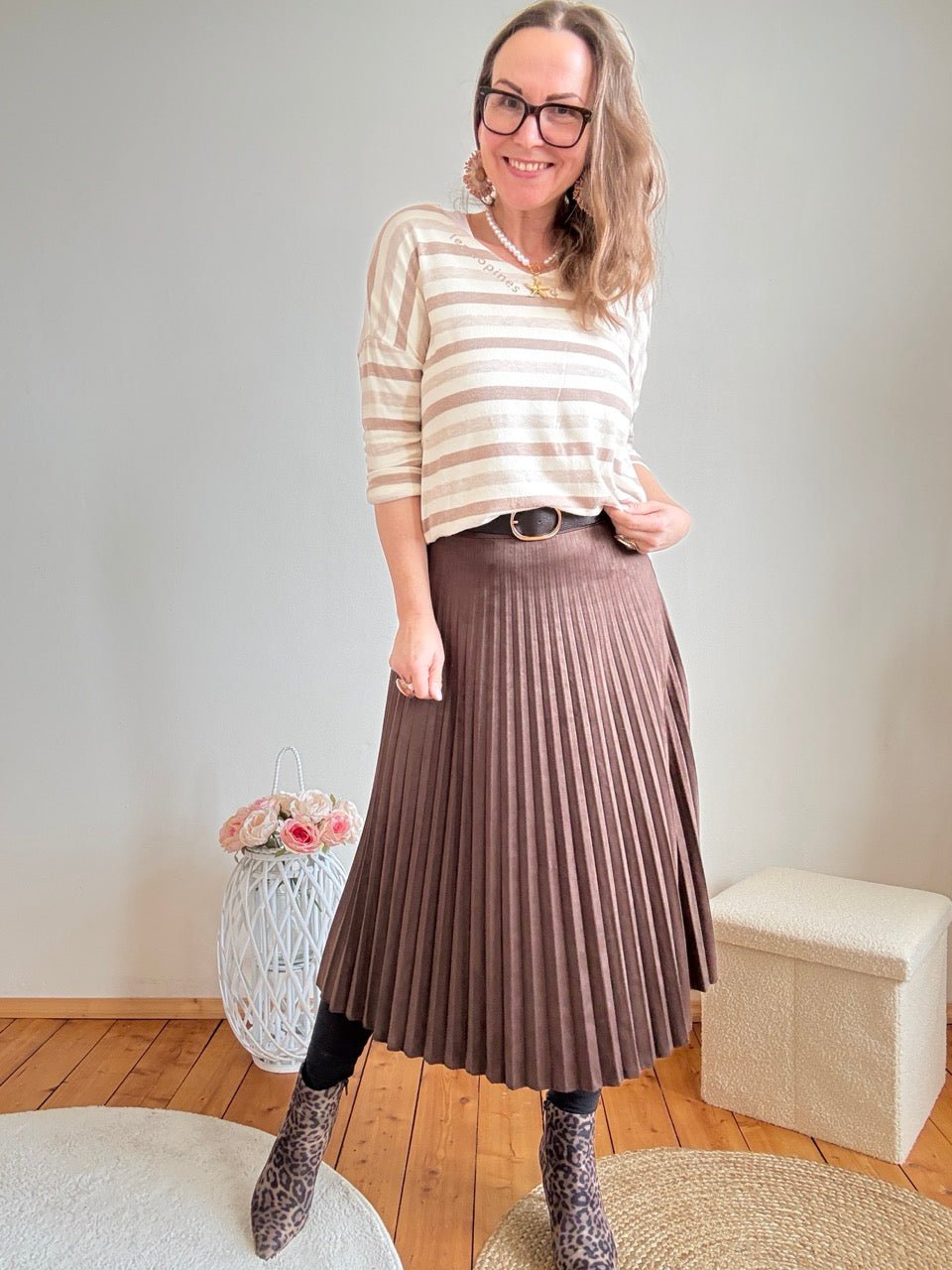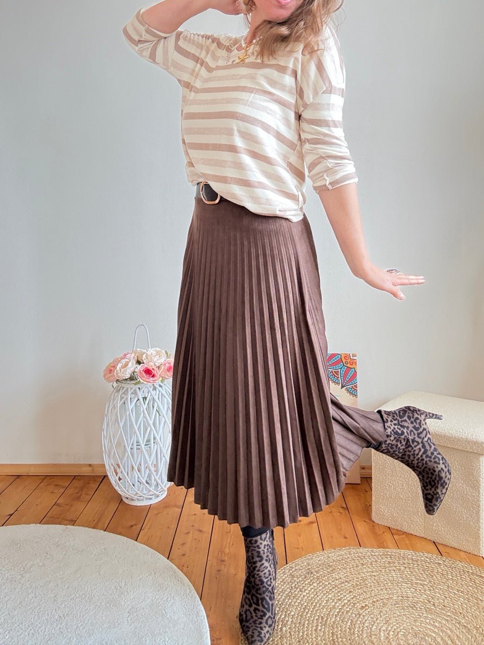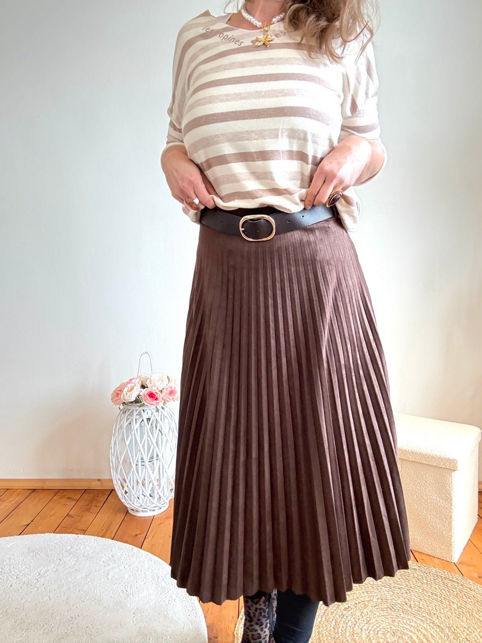 - Wunderschöner, wadenlanger, brauner Plissee Rock in Wildlederoptik, mit Gürtel
