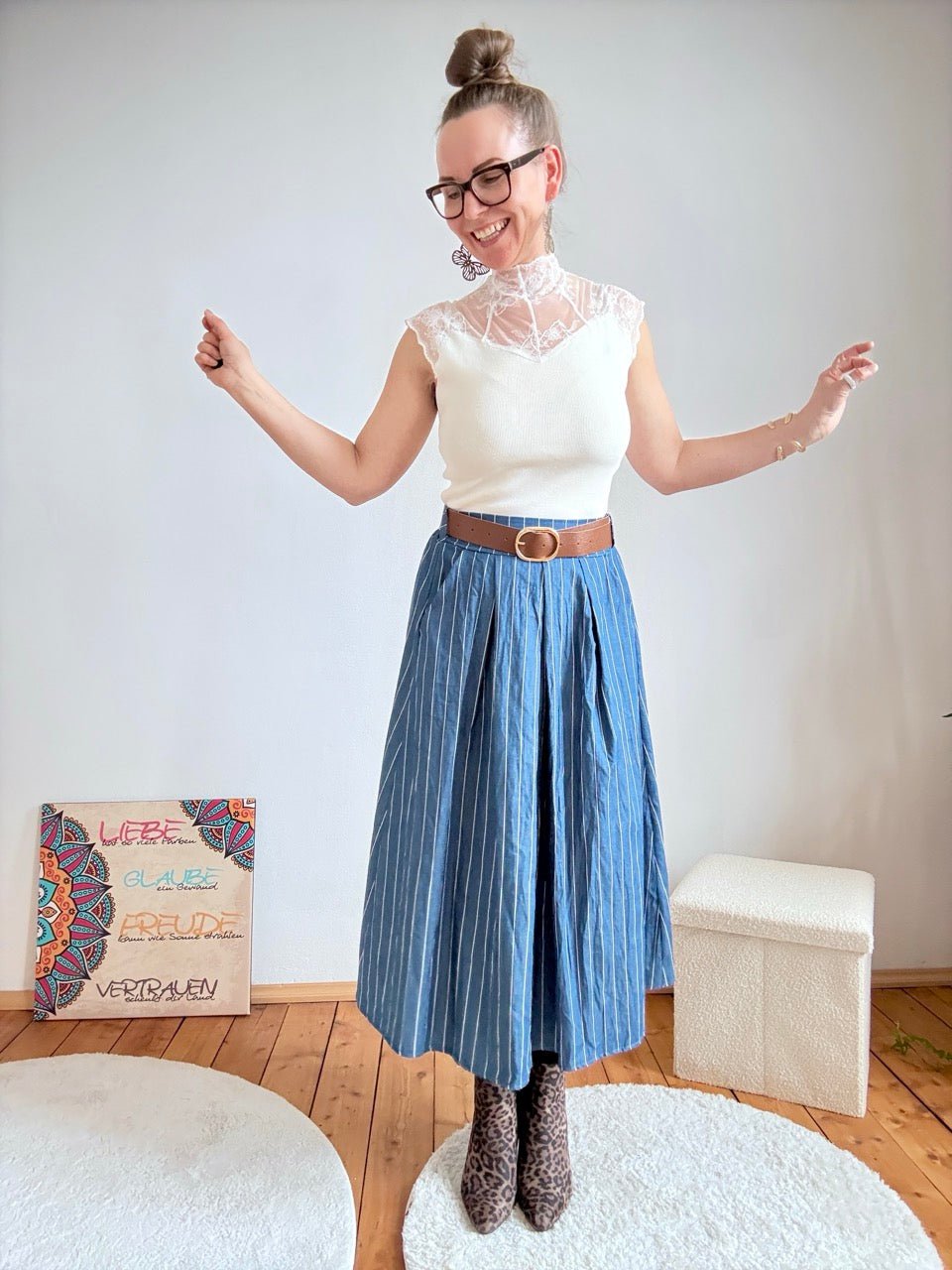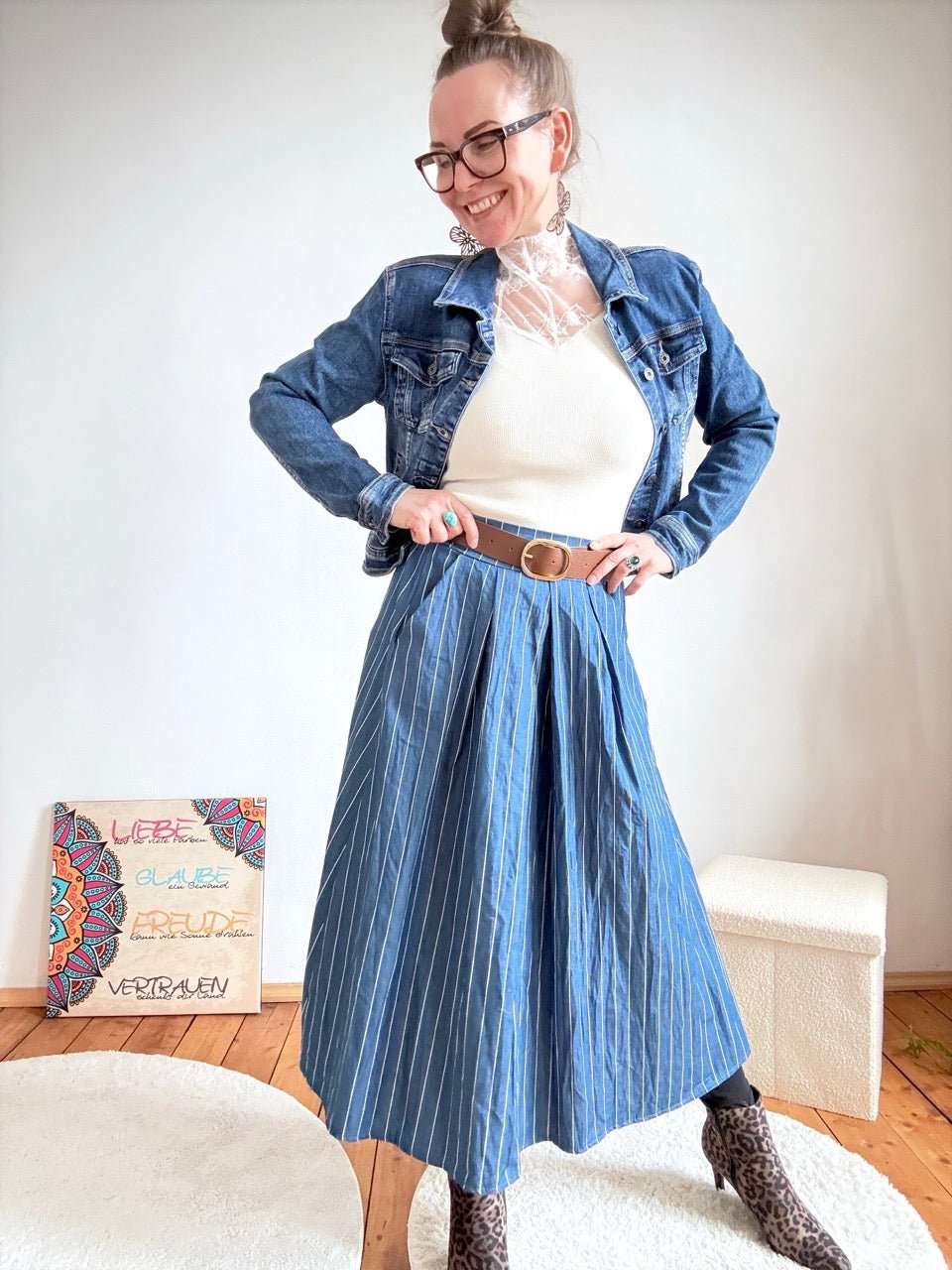 • Toller BESTSELLER Maxi Rock mit Gürtel in Denim Optik, jetzt mit Streifen!