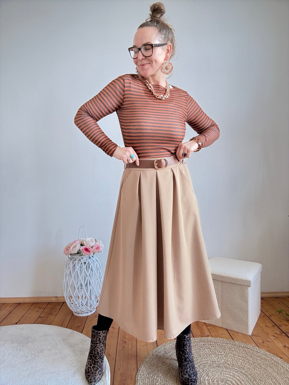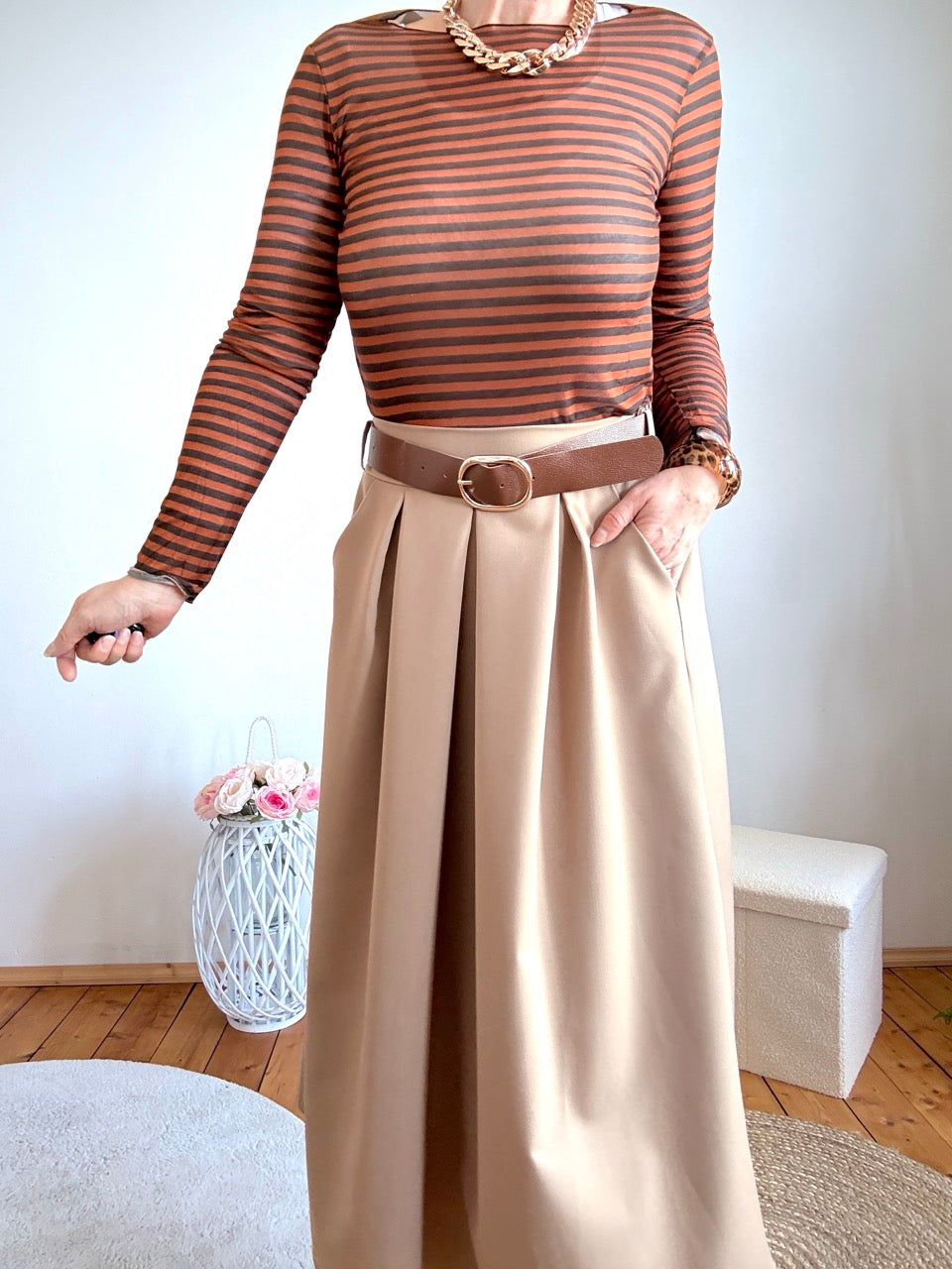 • Toller Maxi Rock mit Gürtel in Milchkaffee, in einem neuen Materialmix!