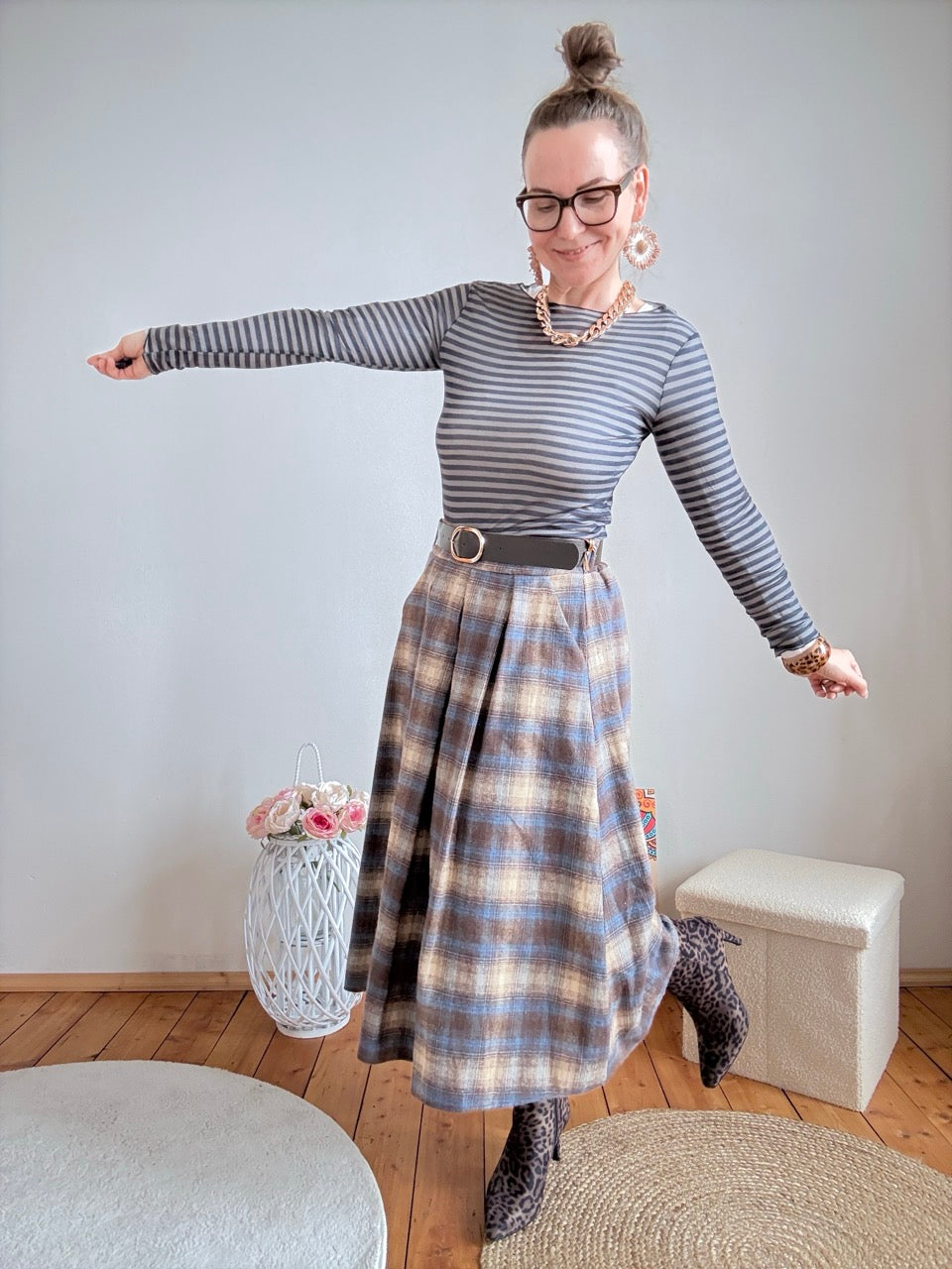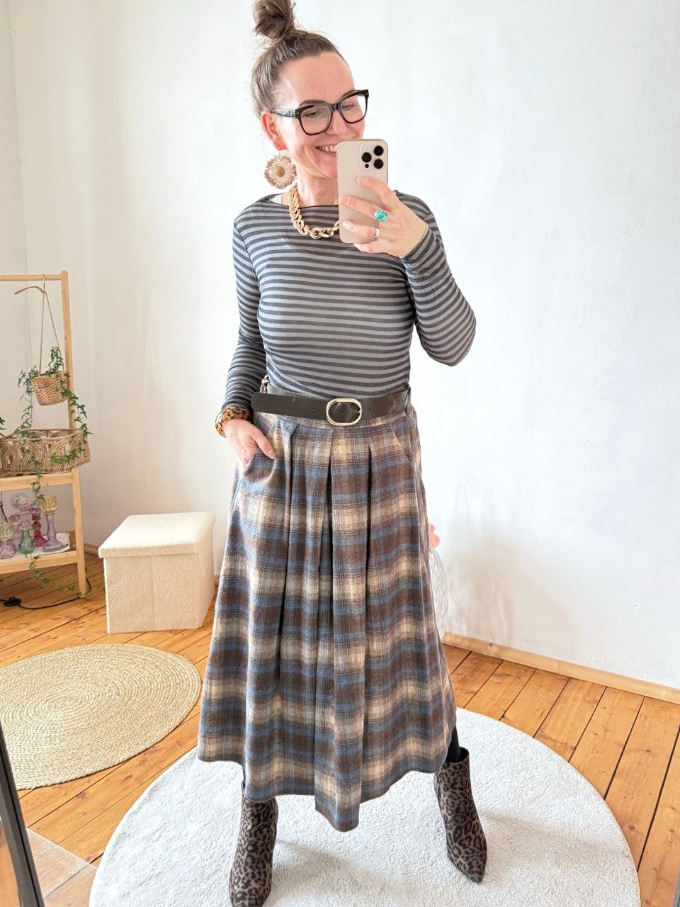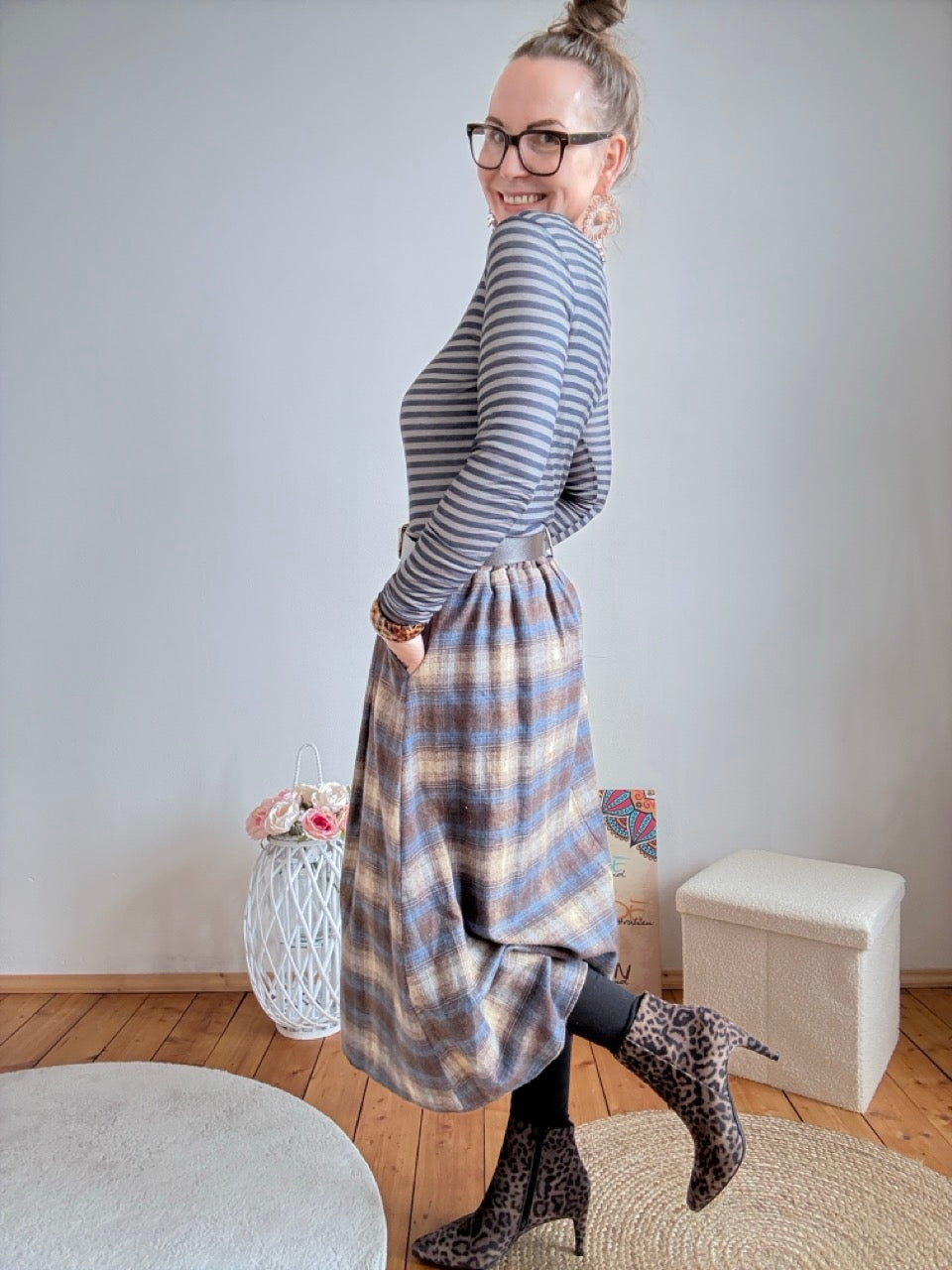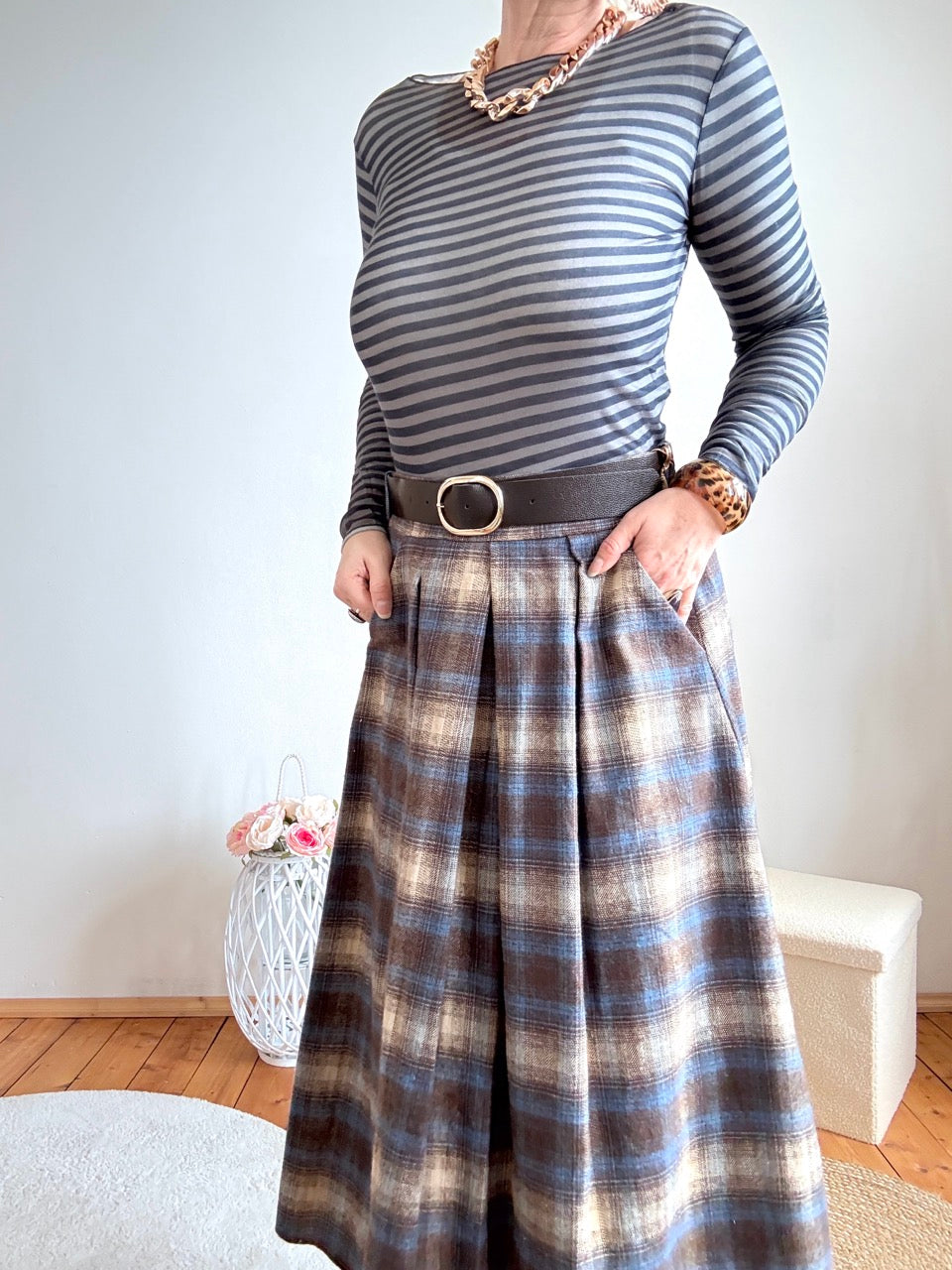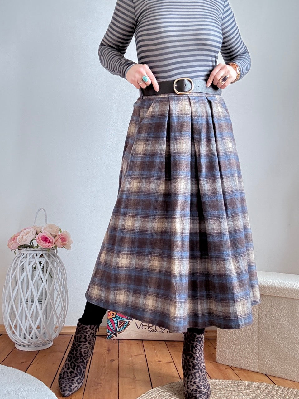 • Unser BESTSELLER Maxi Rock mit Gürtel jetzt in Karo Optik, in Blau Braun