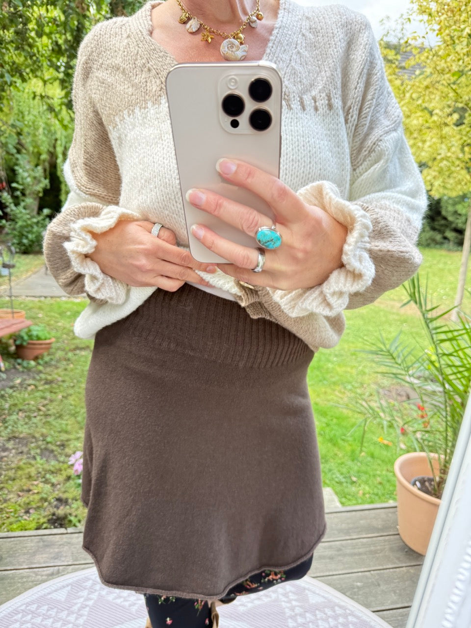 • Toller, femininer Strick-Rock mit leicht schwingender A-Form, in Braun