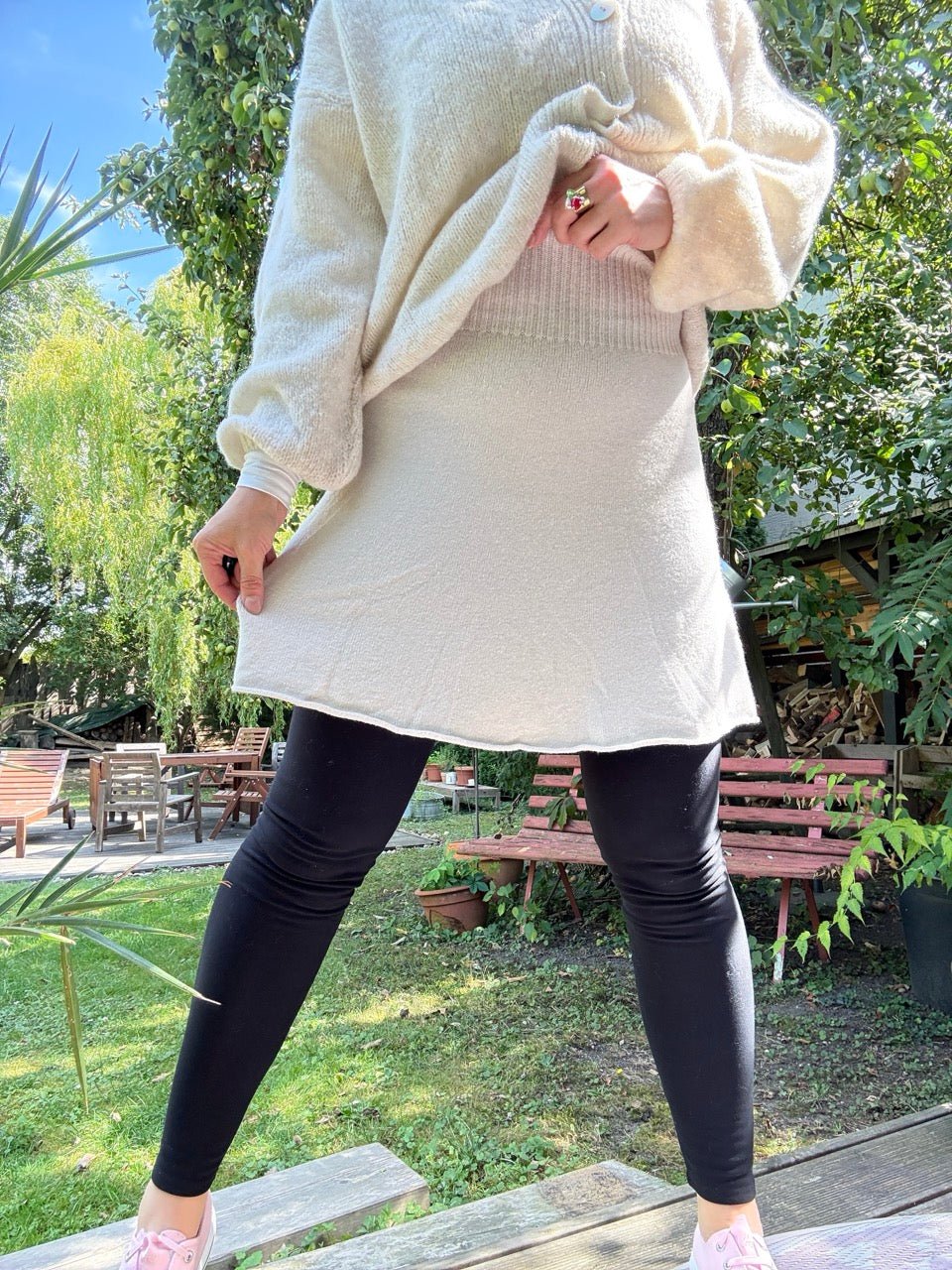 • Oberschenkel/ Knielang - Uni-Farben und daher super kombinierbar..