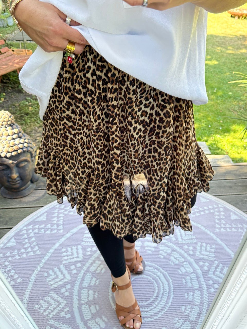 • Toller, leichter Rock mit Leo Muster, mit Volant Rand