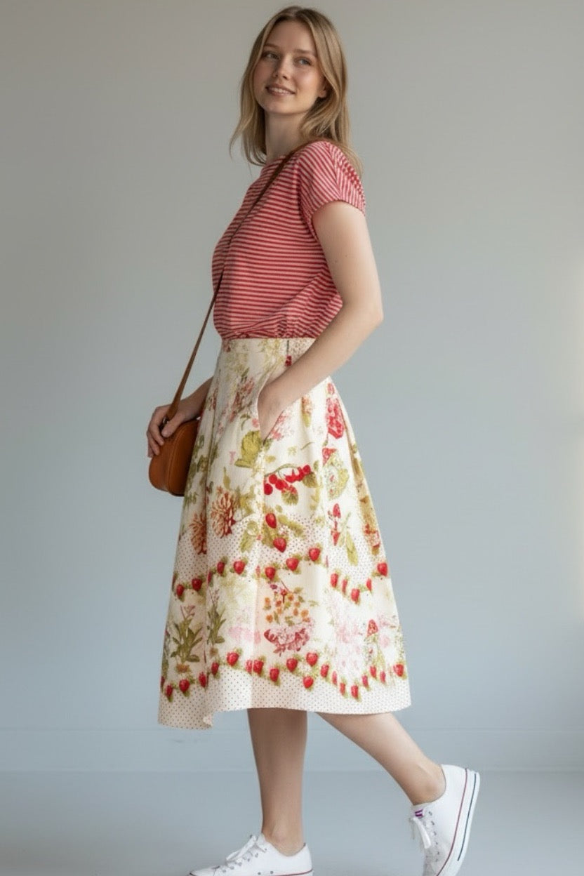 • Toller, grifffester Rock, mit breitem, elastischen Taillenbund und durchgehender Knopfleiste vorn
