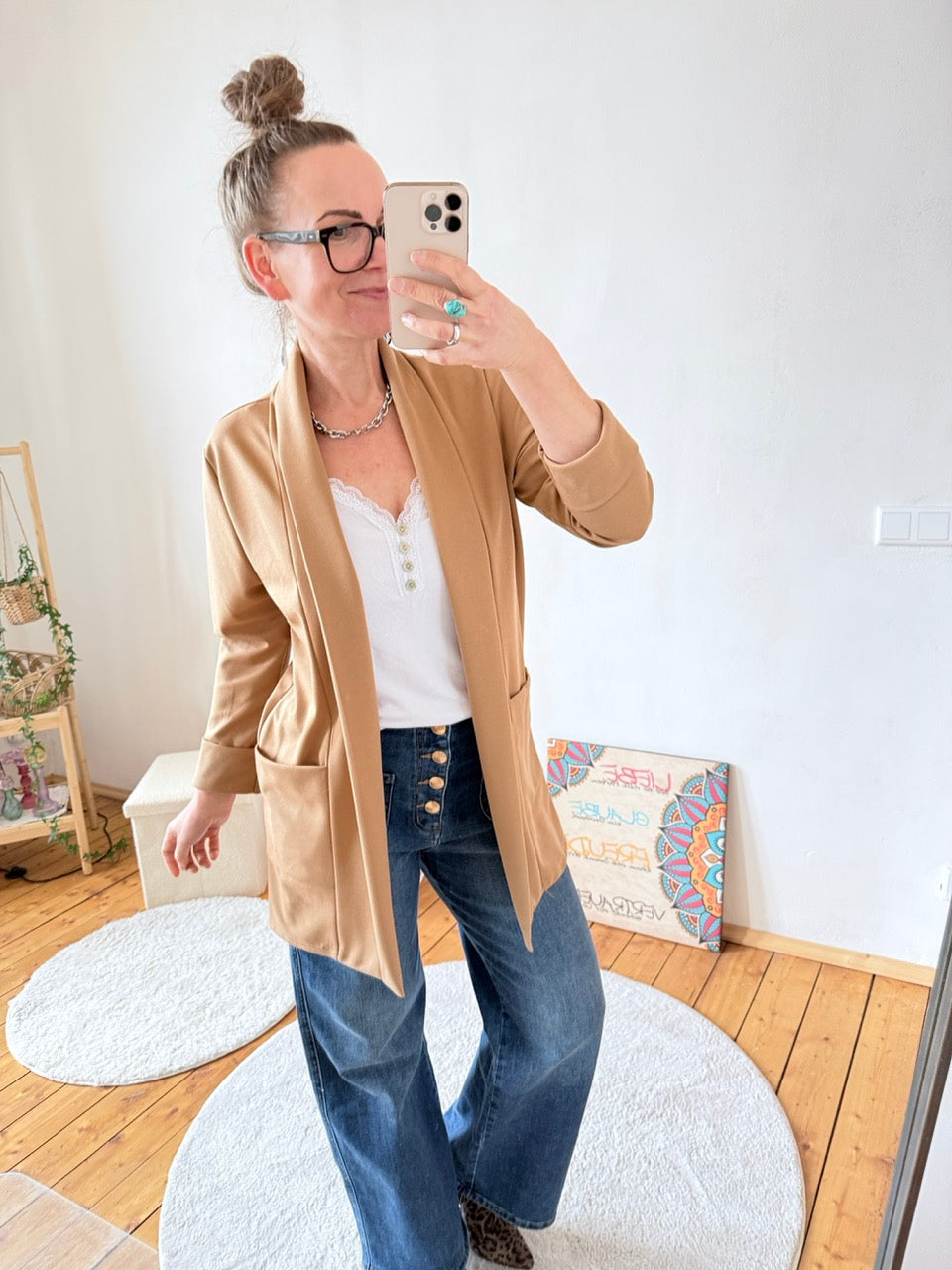 • Dieser locker geschnittene Blazer in Toffee, ist dein neuer Styling-Allrounder.
