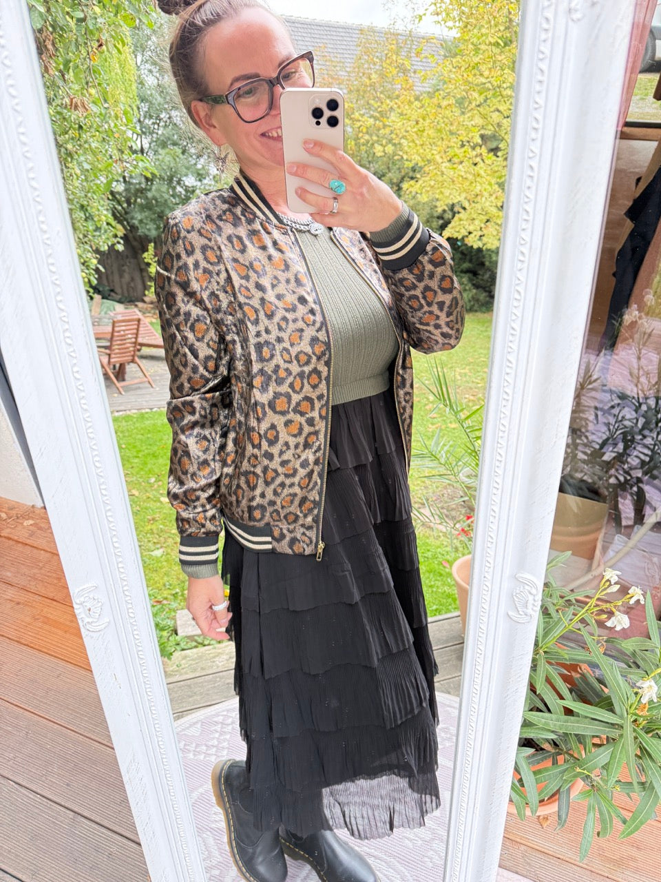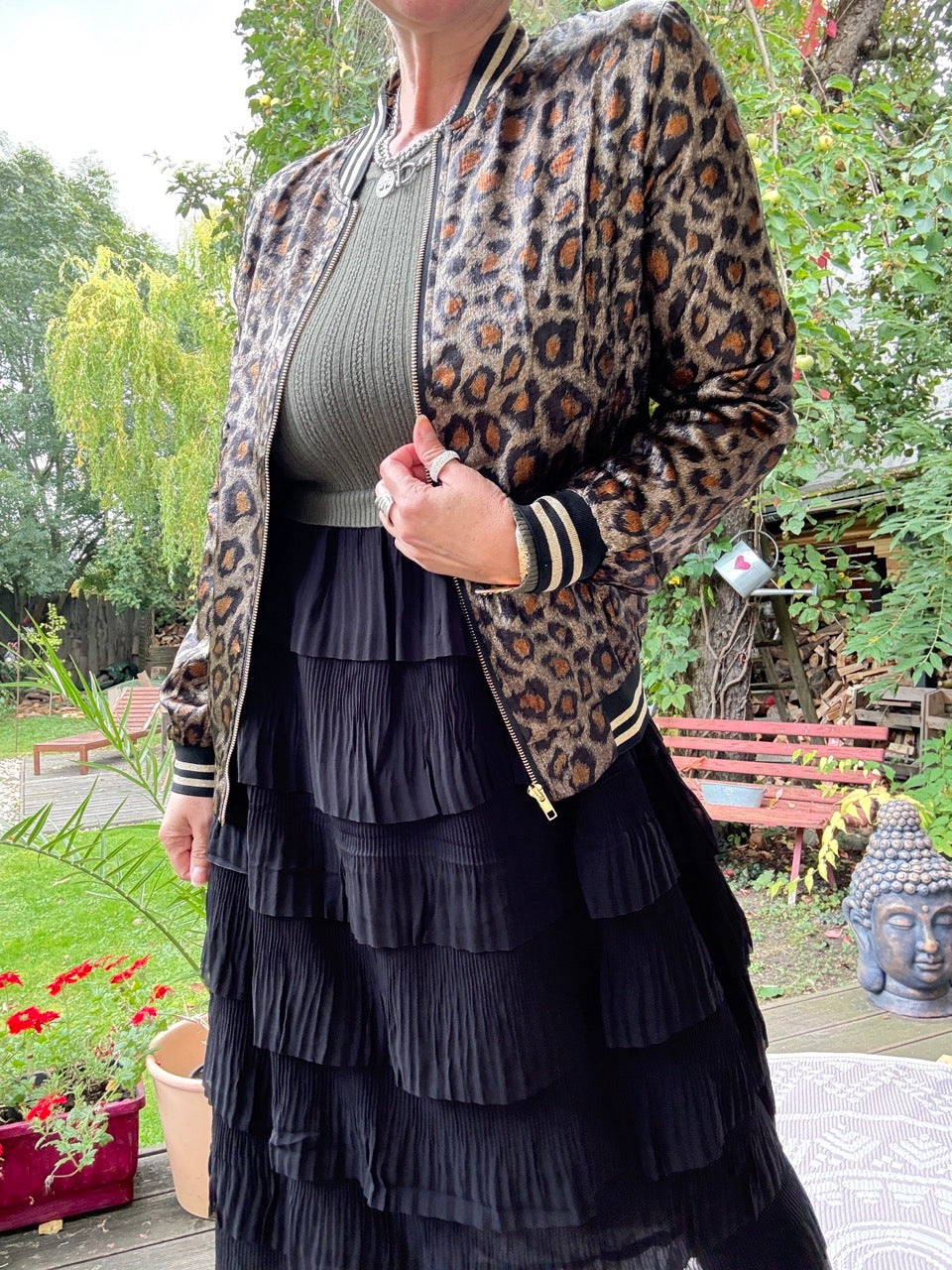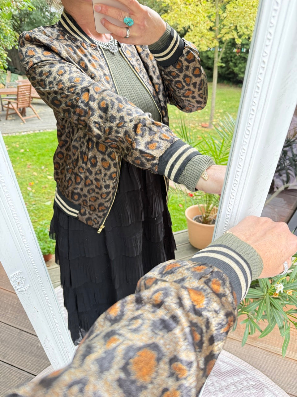 • Tolle, leichte Blouson Jacke in Leo Optik Schwarz, leicht schimmernd