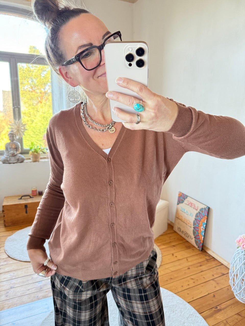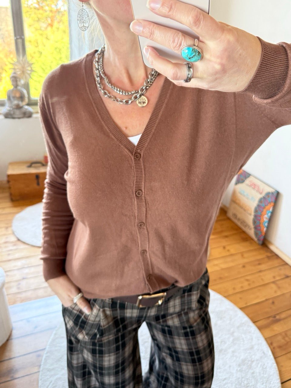 • Super weiche Basic Strickjacke in Nougat, für deinen Alltag