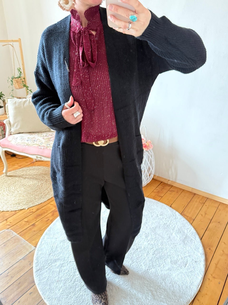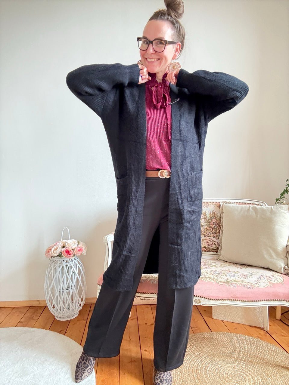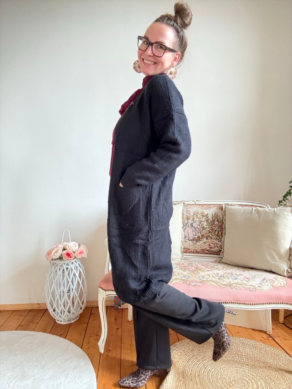 Regulärer Preis 39,99 €• Lange, grob gestrickte Oversize Strickjacke mit Wohlfühlfaktor, in Schwarz