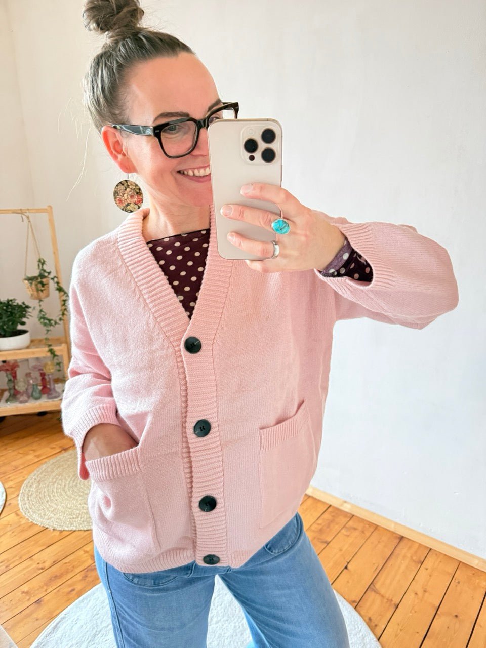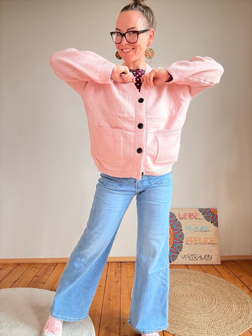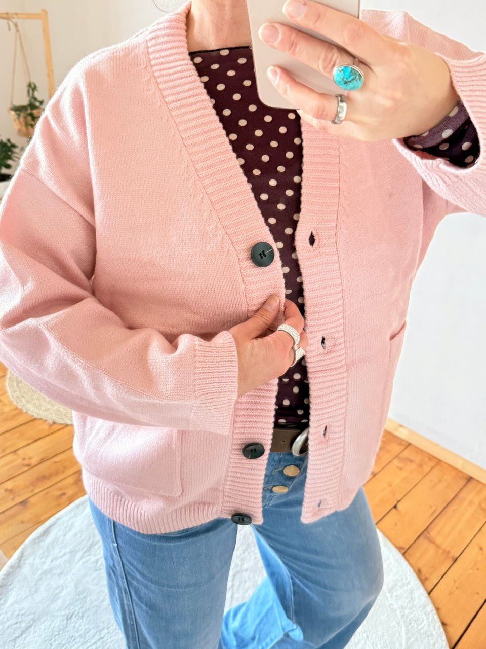 • Coole Strickjacke mit lässigem Oversize Schnitt, in Rose