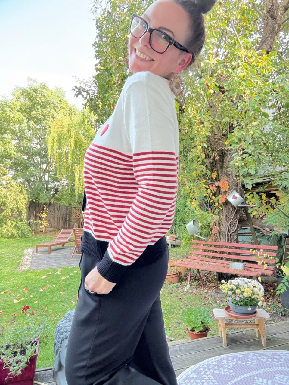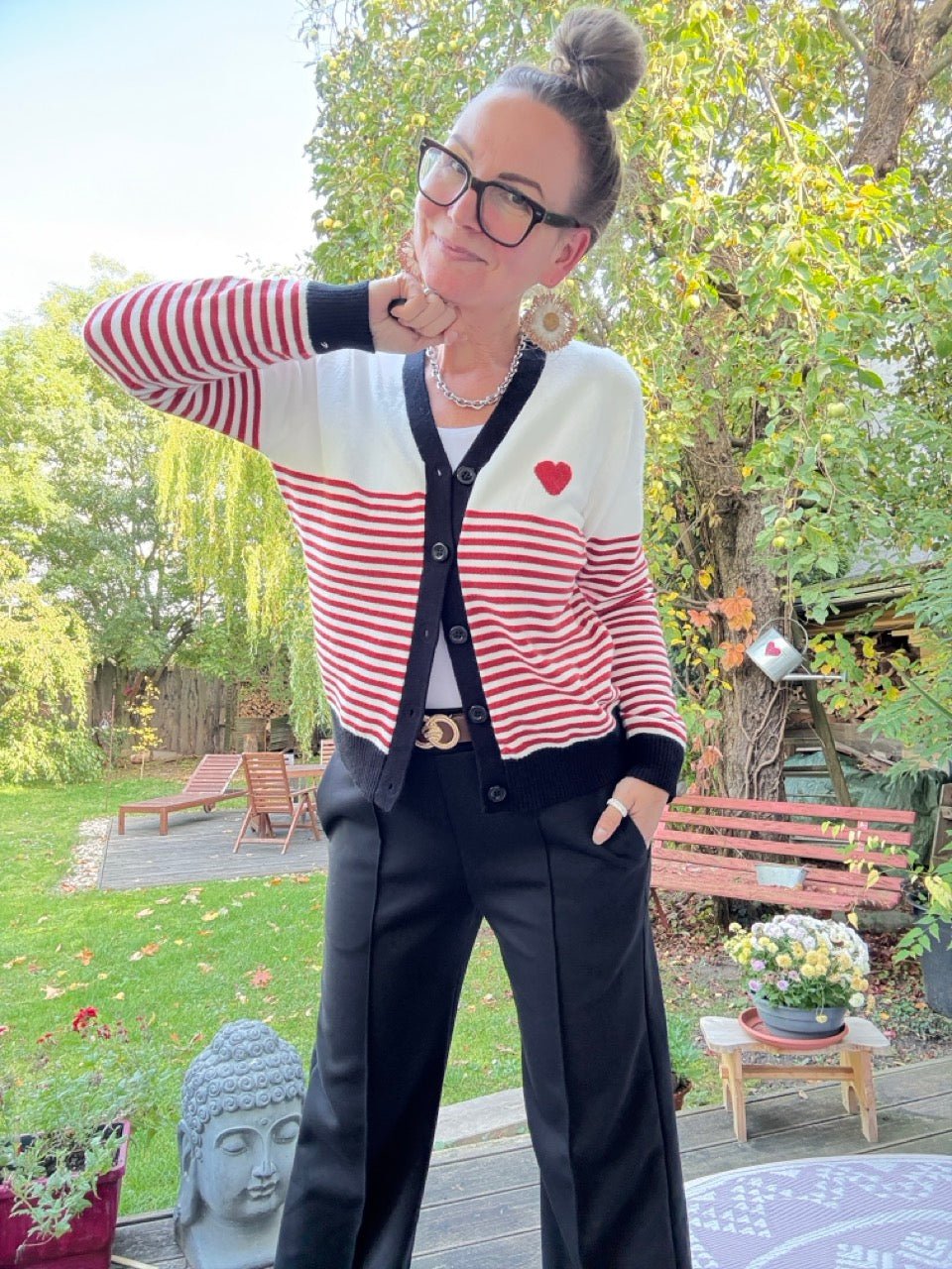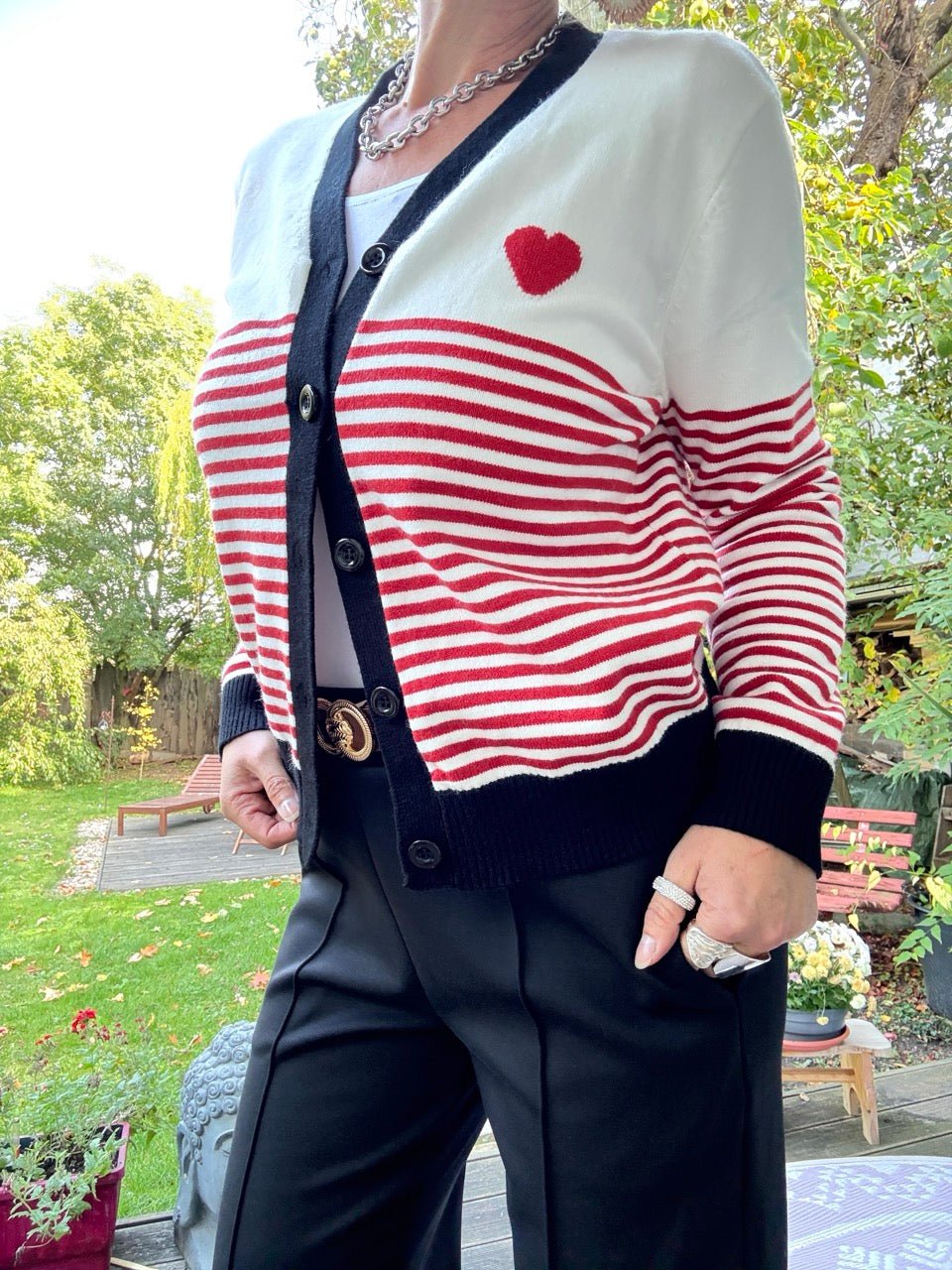 • Tolle Strickjacke in Weiß mit Streifen und Herz