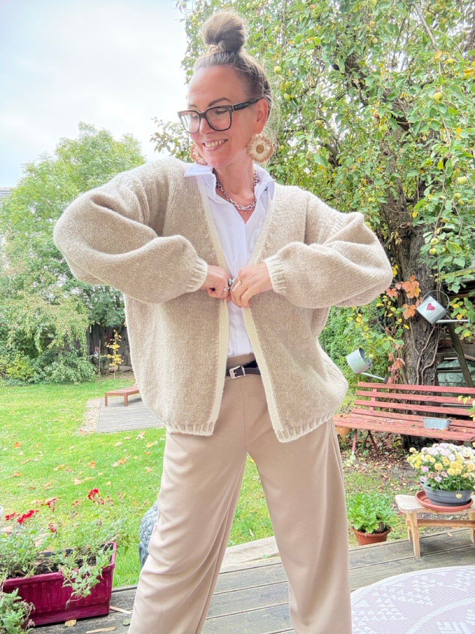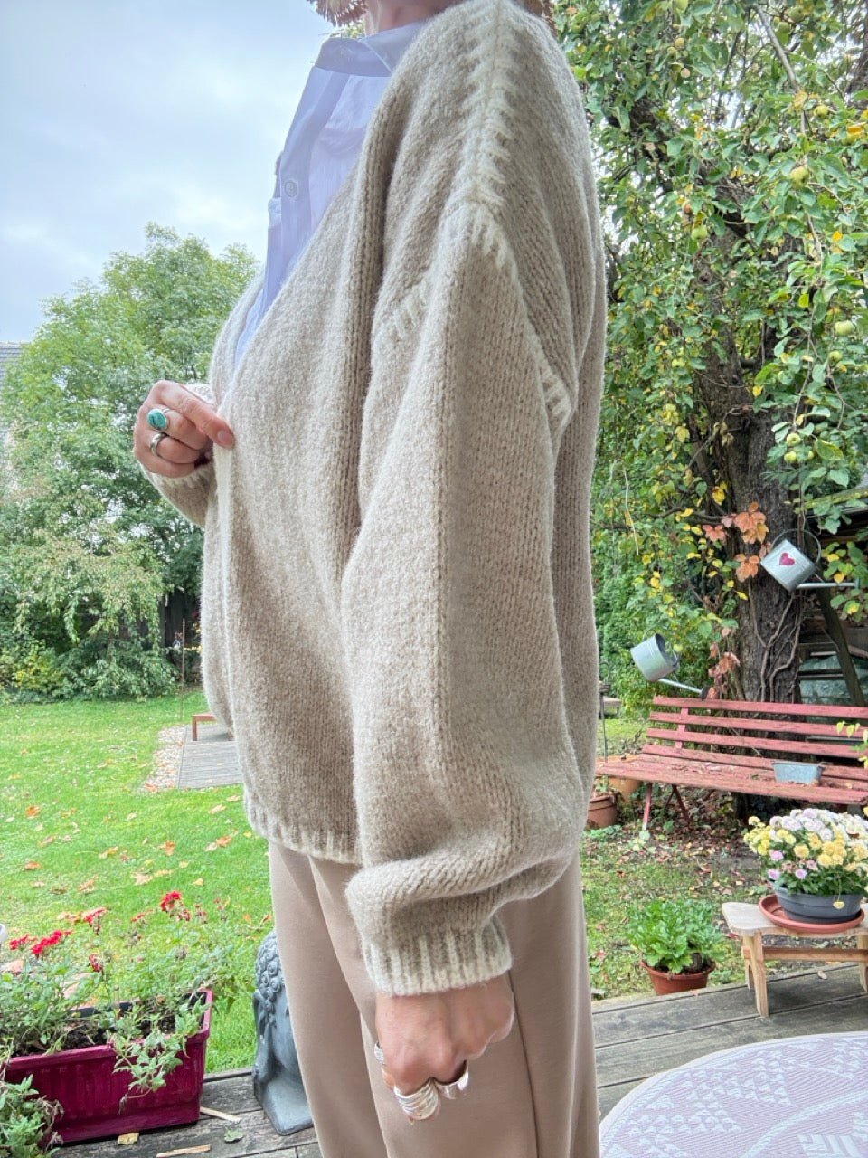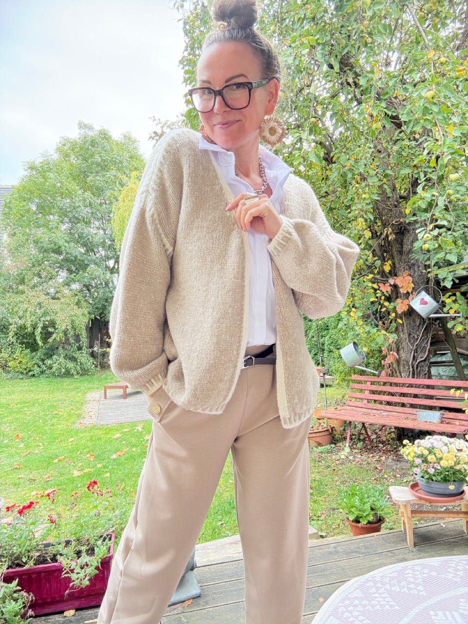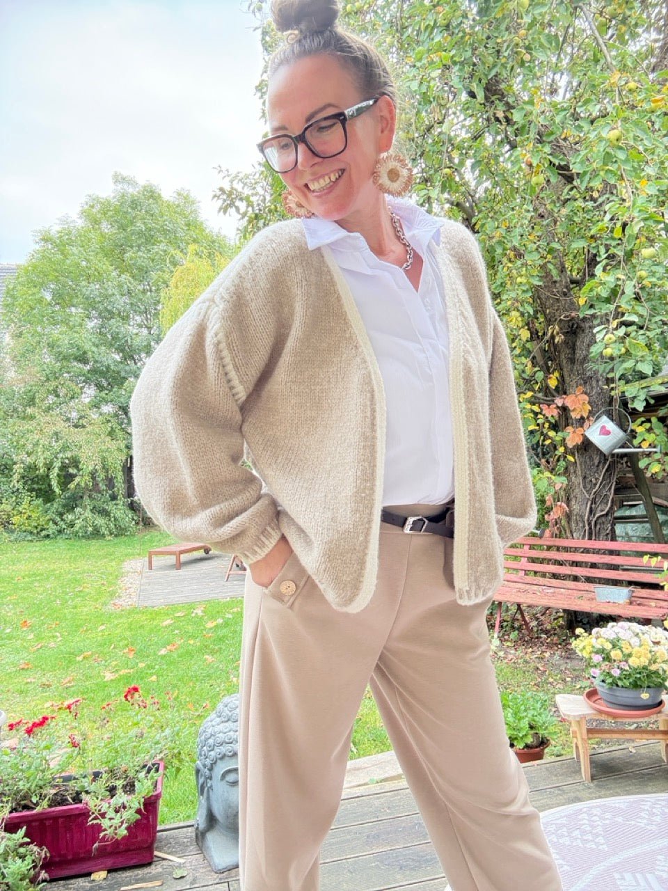 • Super gemütliche, locker geschnittene Strickjacke in Cream, mit farblich abgesetzten Nähten und kleinem Wollanteil