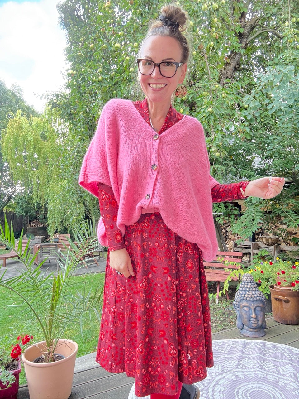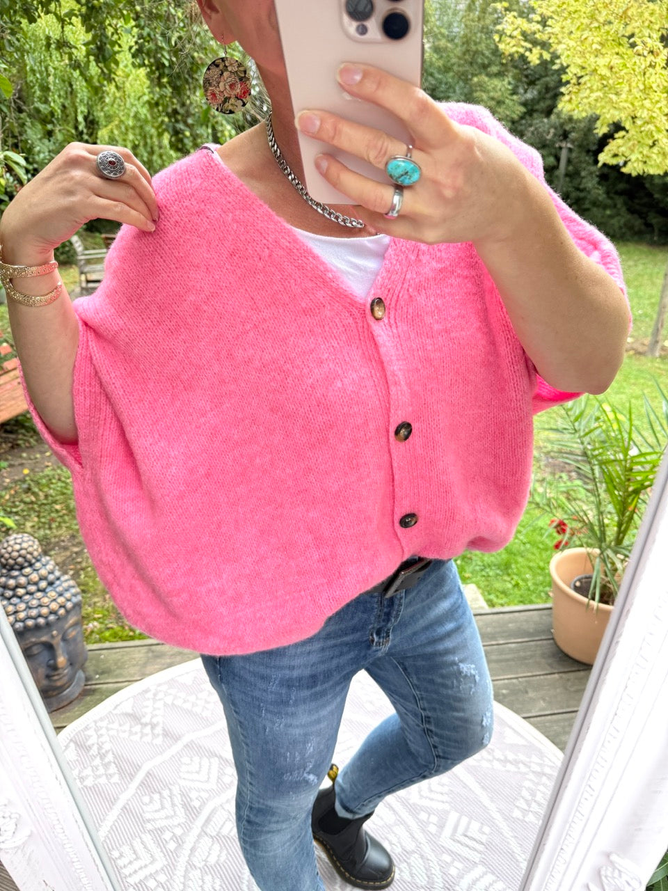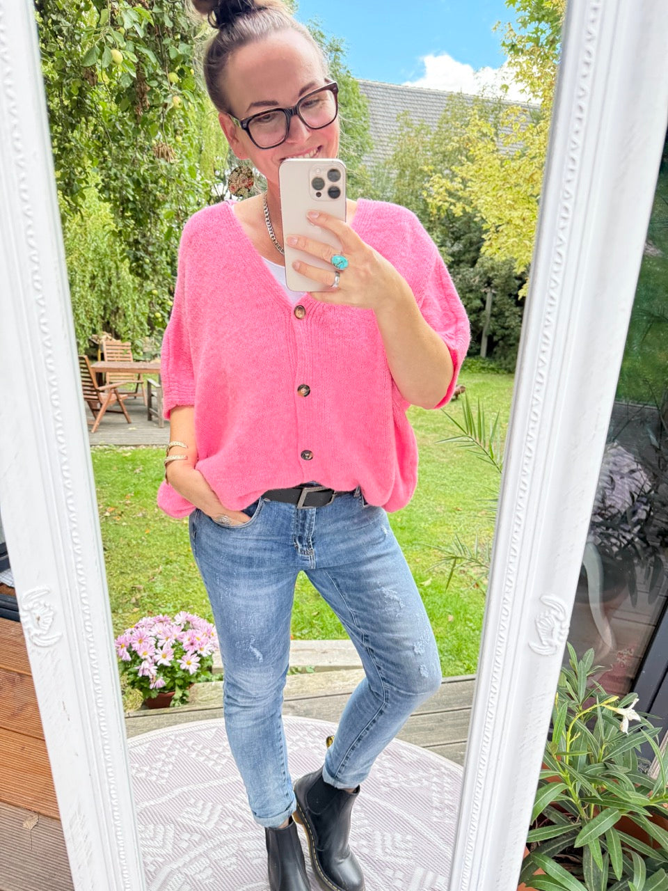 • Super gemütliche, weit geschnittene Strickjacke mit kurzen Armen in strahlendem Rose und kleinem Wollanteil