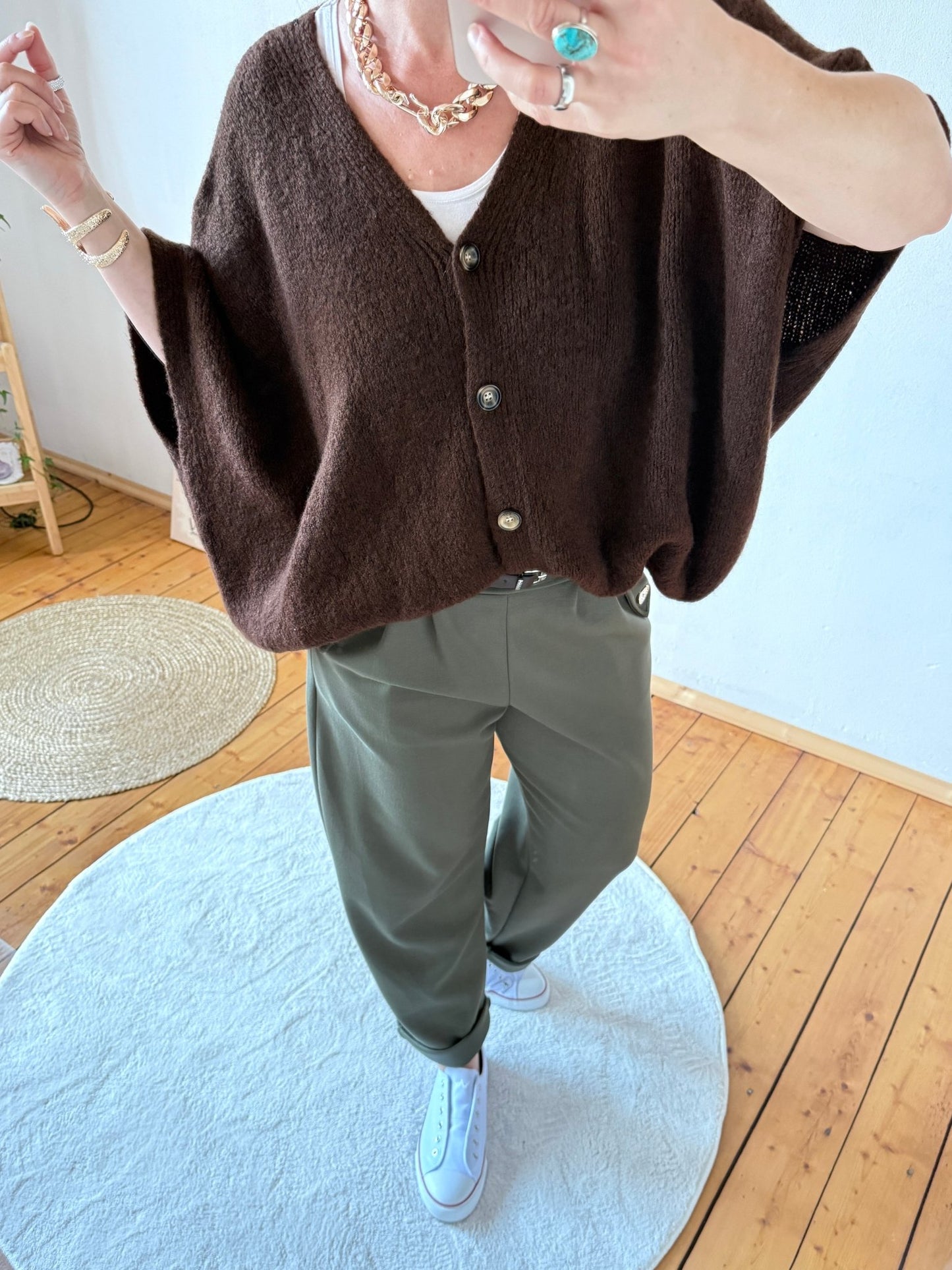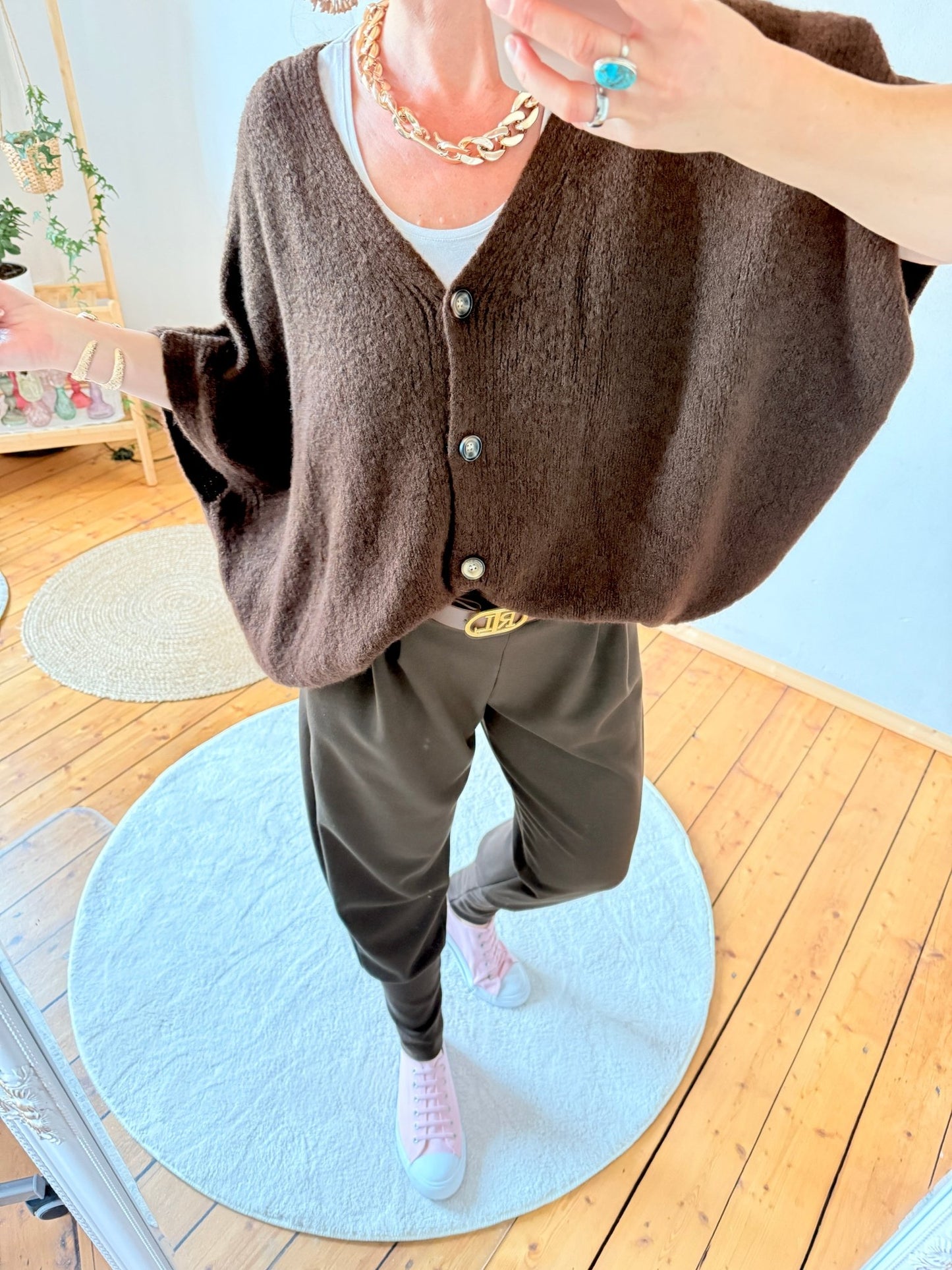 • Super gemütliche, weit geschnittene Strickjacke mit kurzen Armen in Schoko Braun und kleinem Wollanteil