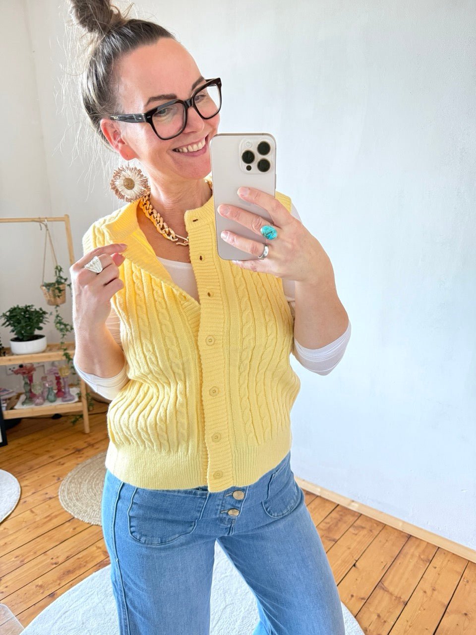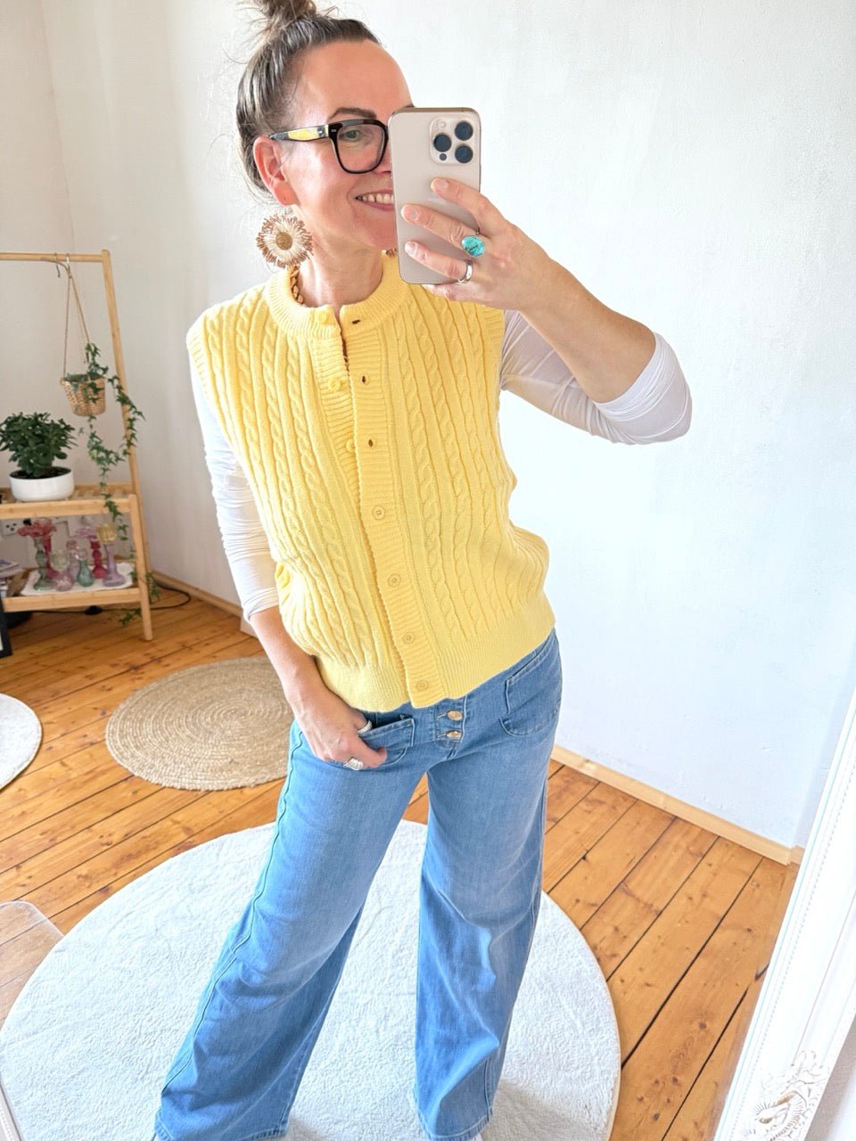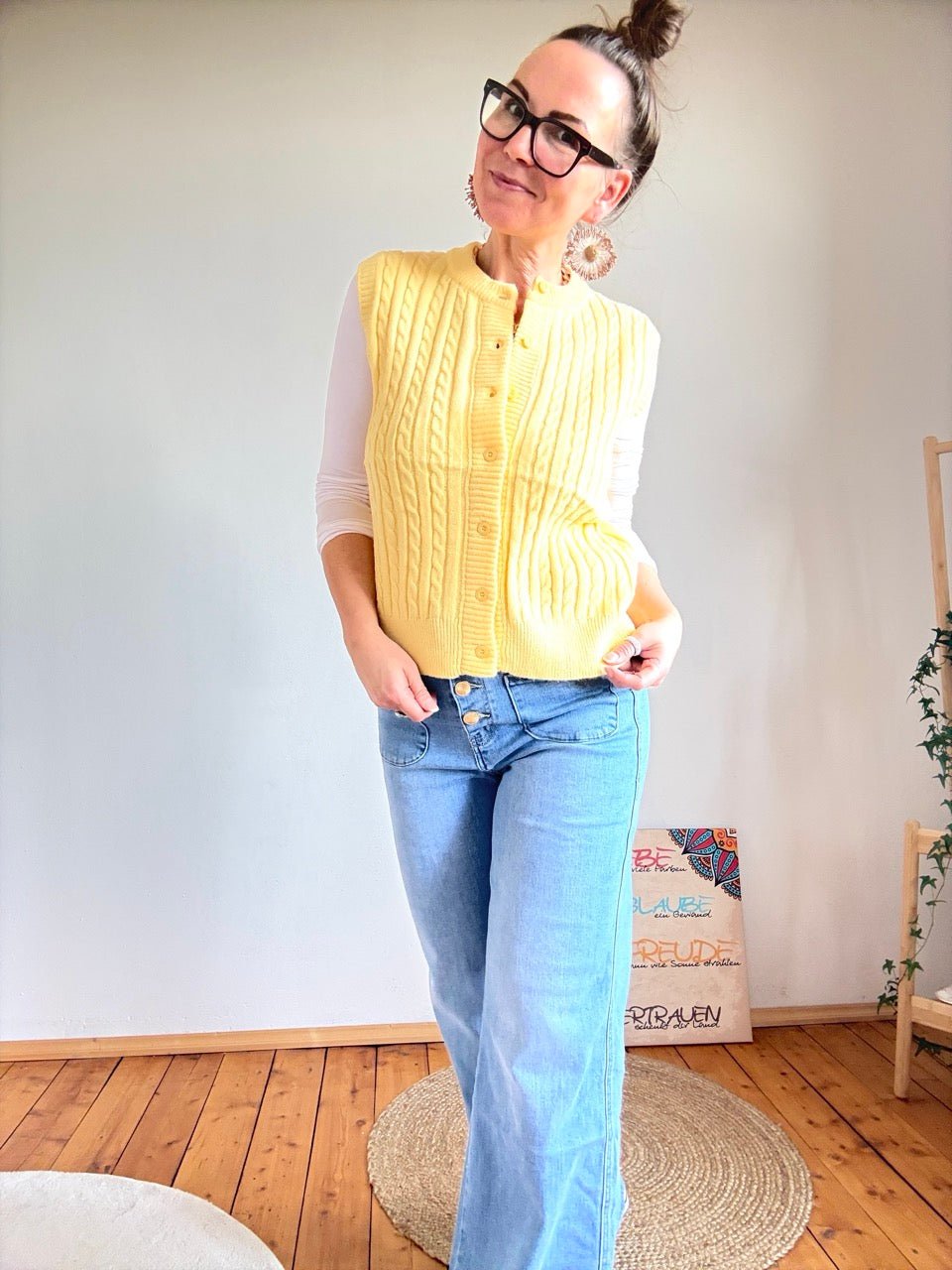 • Super coole, weiche Strick Weste in Citrus Gelb, mit Zopfmuster
