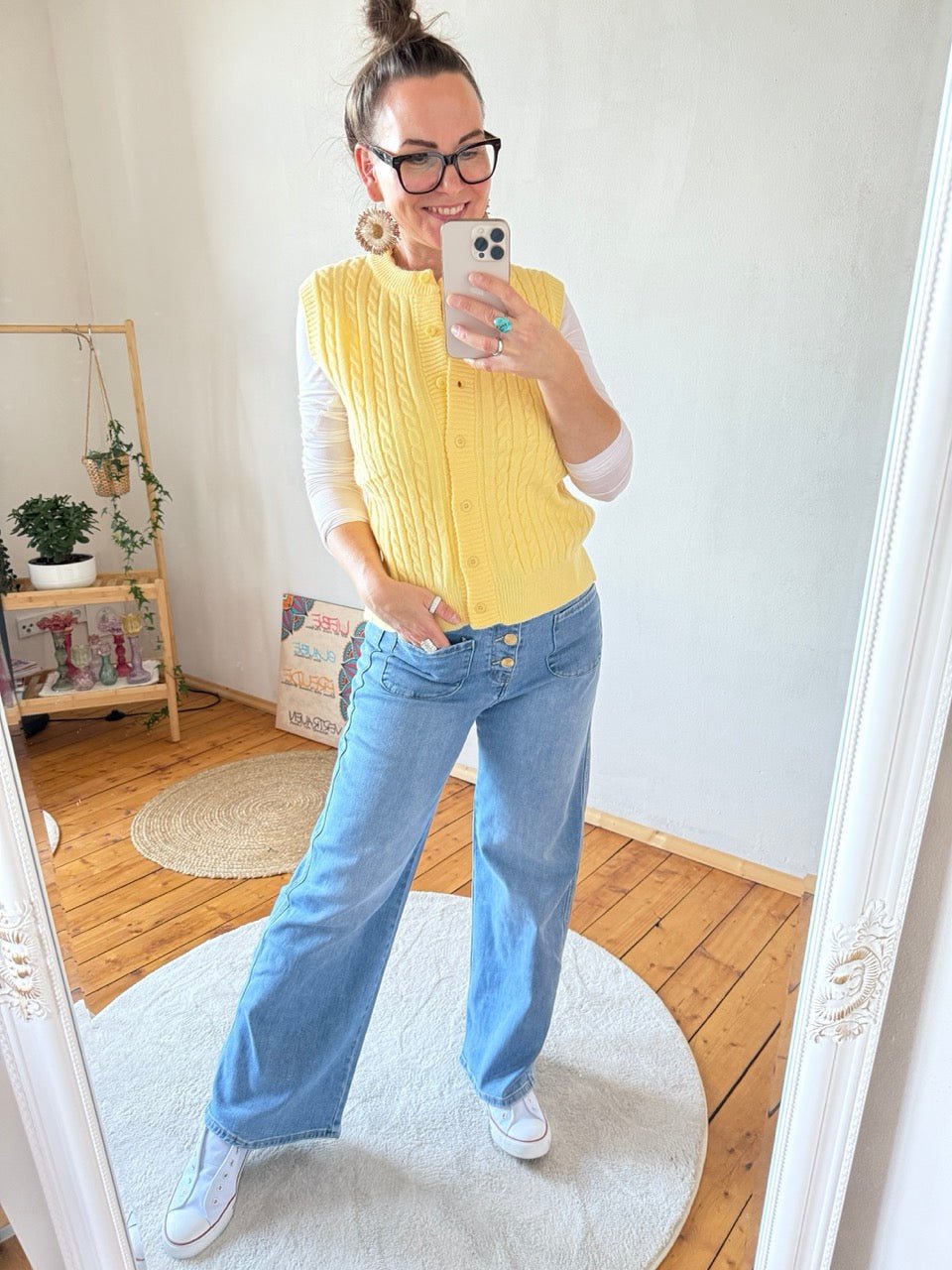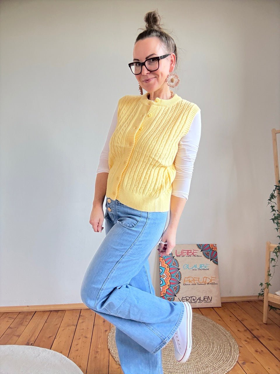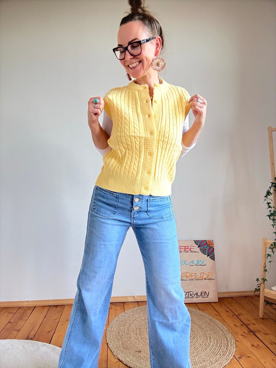 • Super coole, weiche Strick Weste in Citrus Gelb, mit Zopfmuster