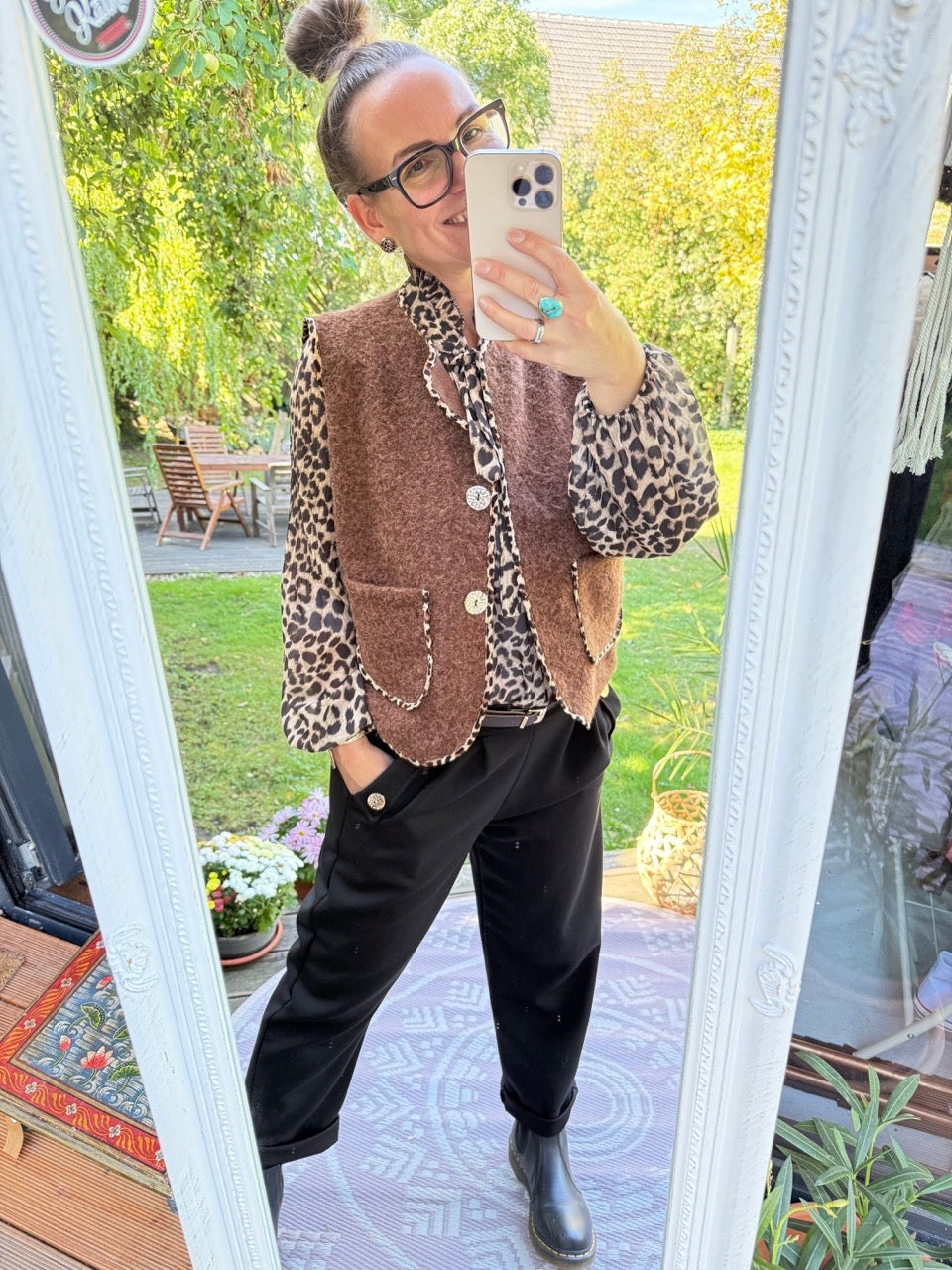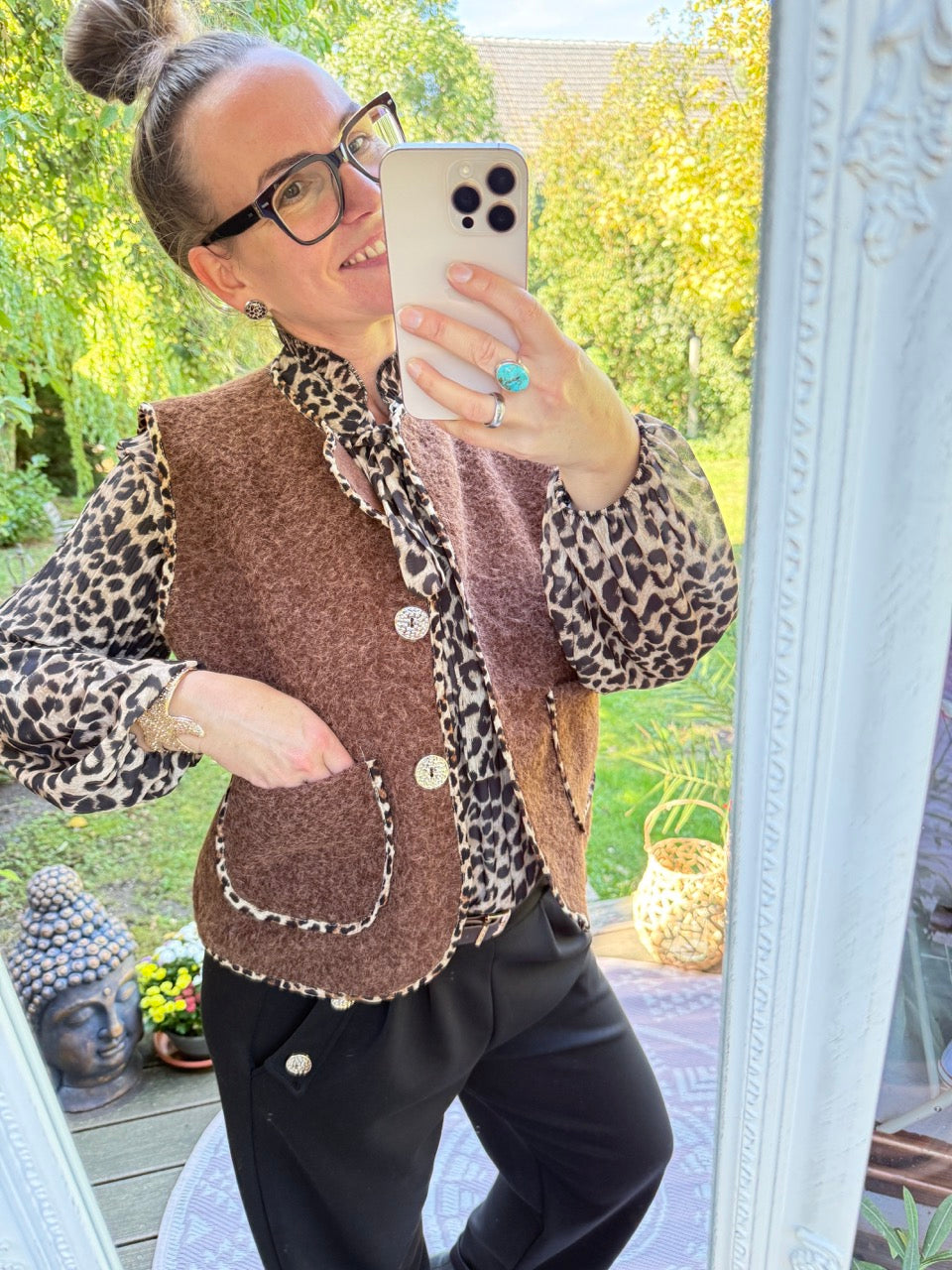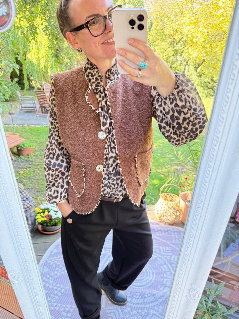 • Flauschige Strickweste in warmem dunklen Kastanienbraun