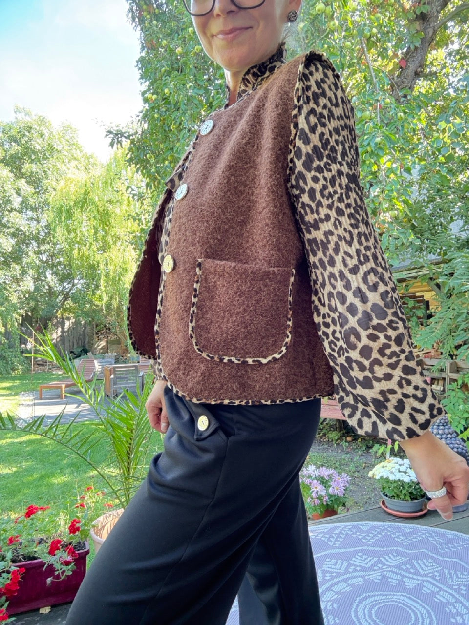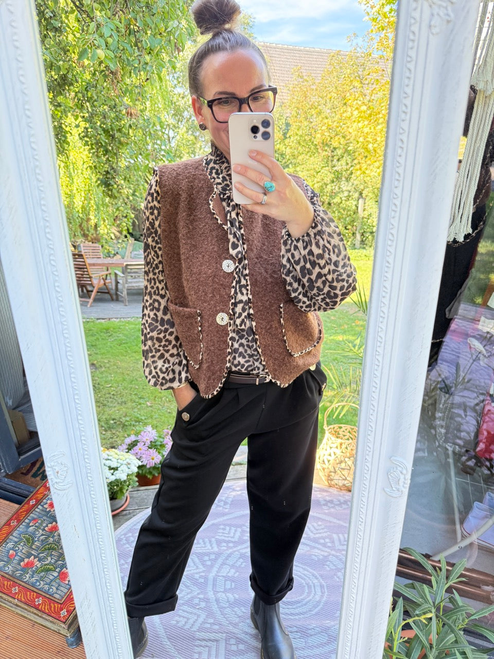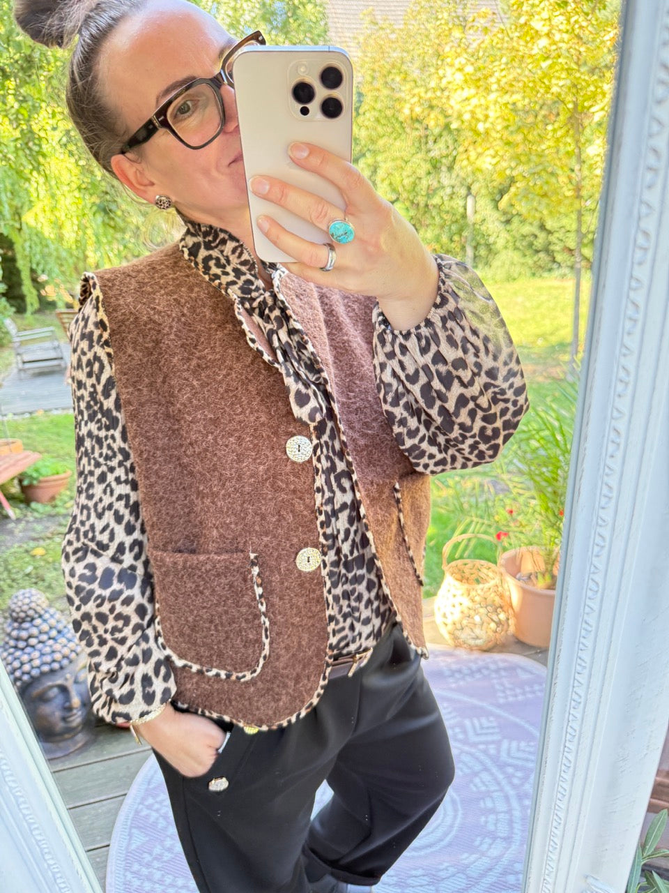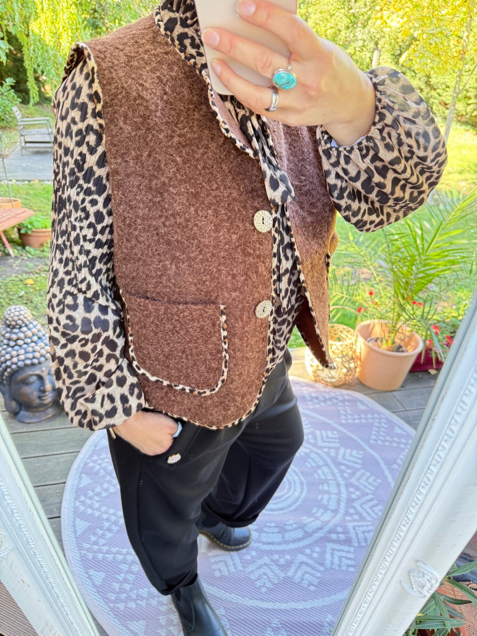 • Flauschige Strickweste in warmem dunklen Kastanienbraun
